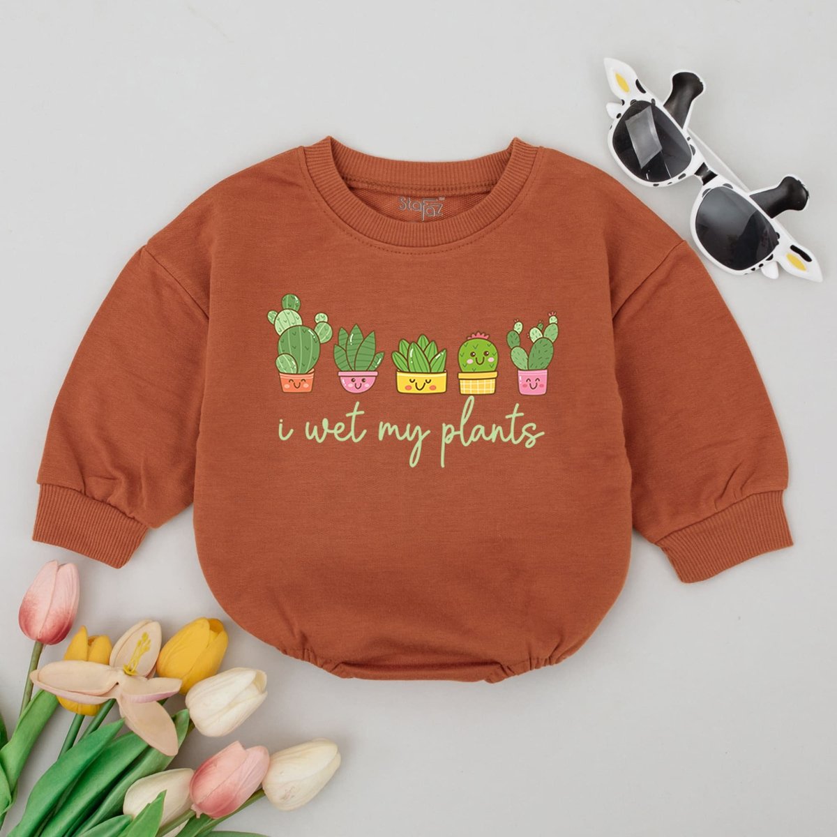 I Wet My Plants Retro Baby Romper Funny Plant Toddler sweater Catus Kids Clothes Farming Baby Bodysu 173