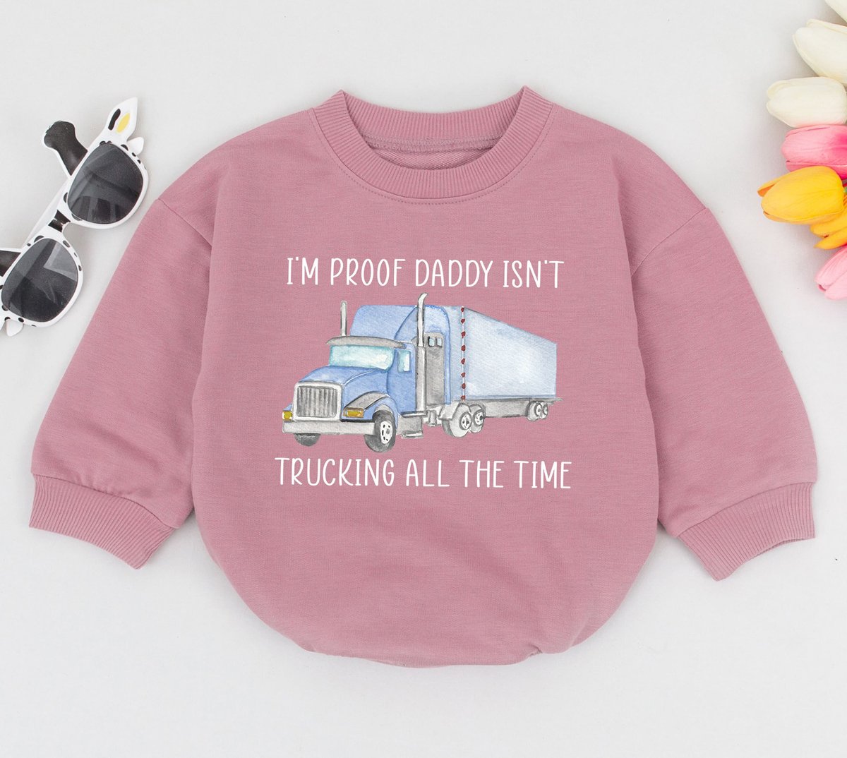 I’m Proof Daddy Isn’t Trucking All The Time Baby Romper Trucker Baby Gift Semi Baby Clothes Trucke 170