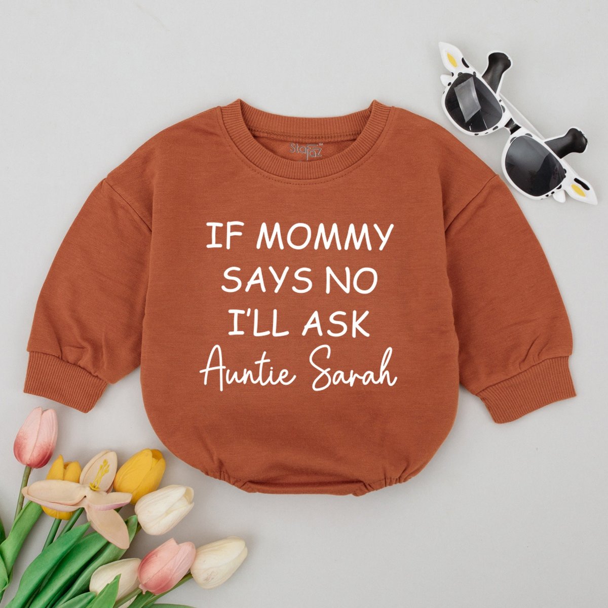 If Mommy Says No I’ll Ask Auntie Baby Romper Personalized Auntie Baby Outfit Pregnancy Reveal Bod 174