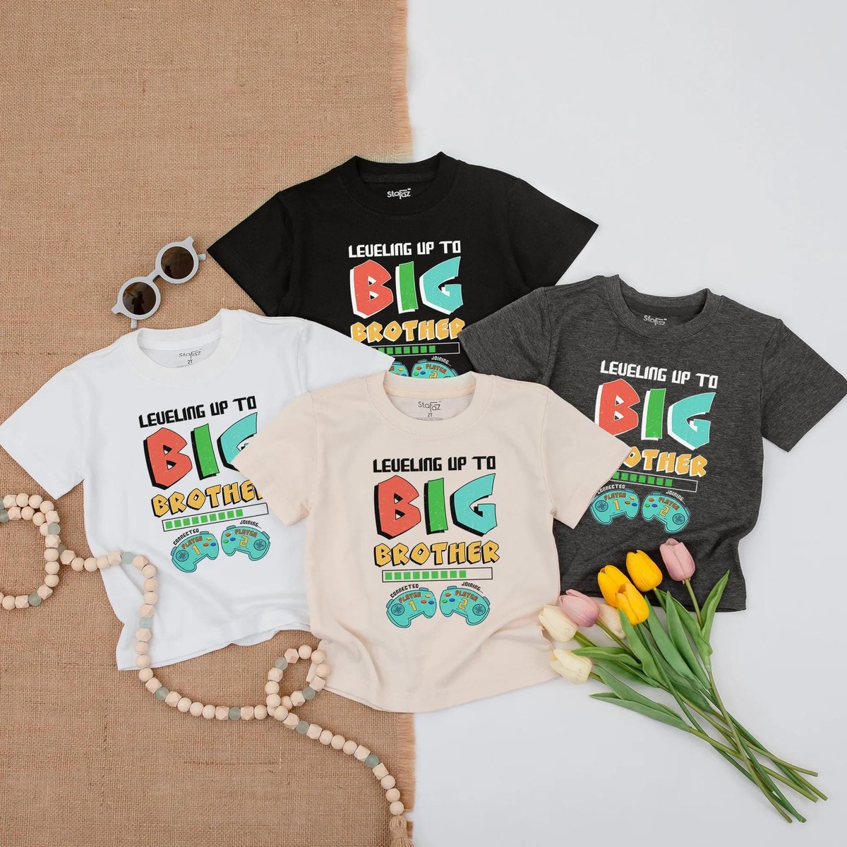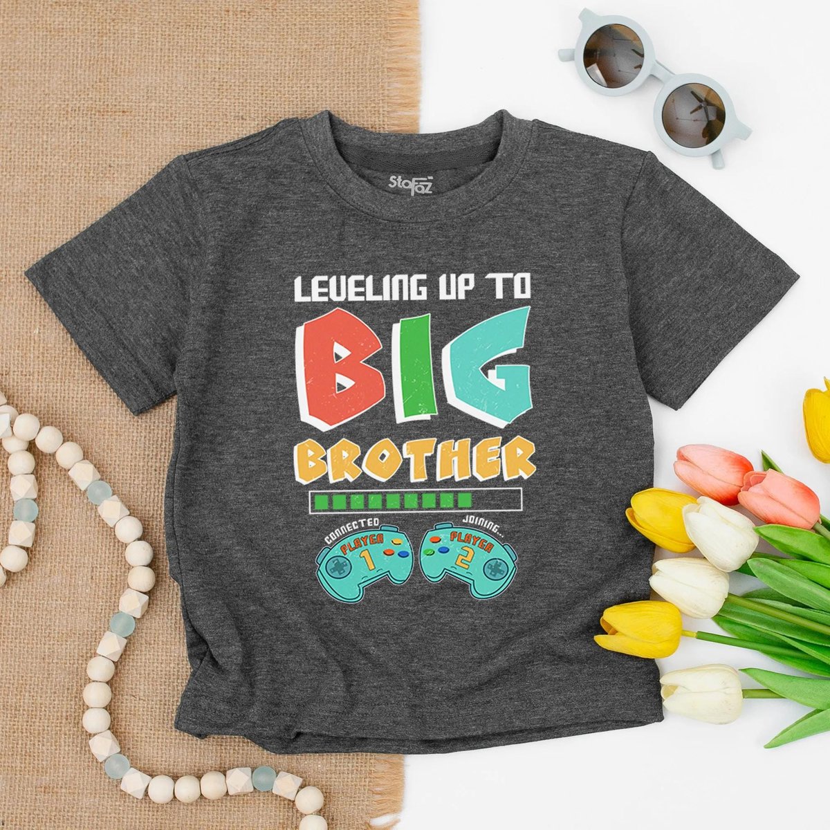 Leveling Up To Big Brother Toddler Tee Big Brother T Shirt Funny Sibling Reveal Outfit Cute Toddler 433