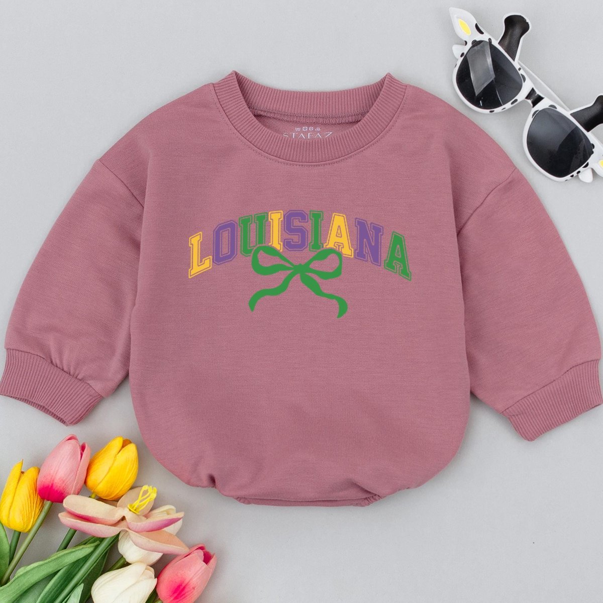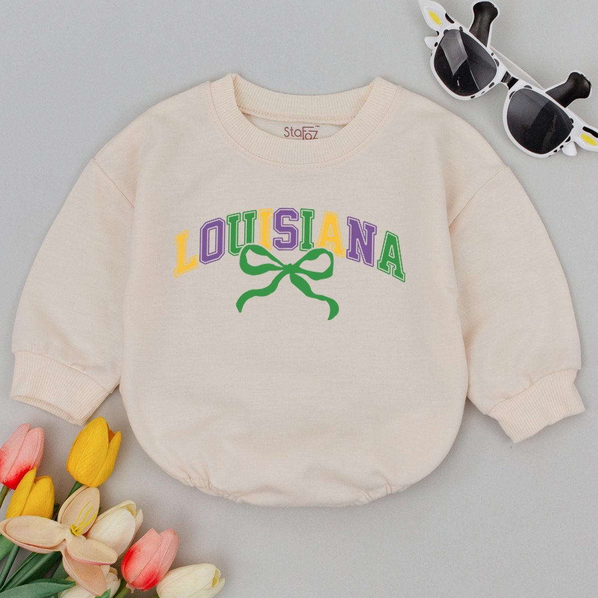 Louisiana Retro Mardi Gras Baby Romper Baby Announcement Clothes Baby Carnival Outfit 1st Mardi Gras 184