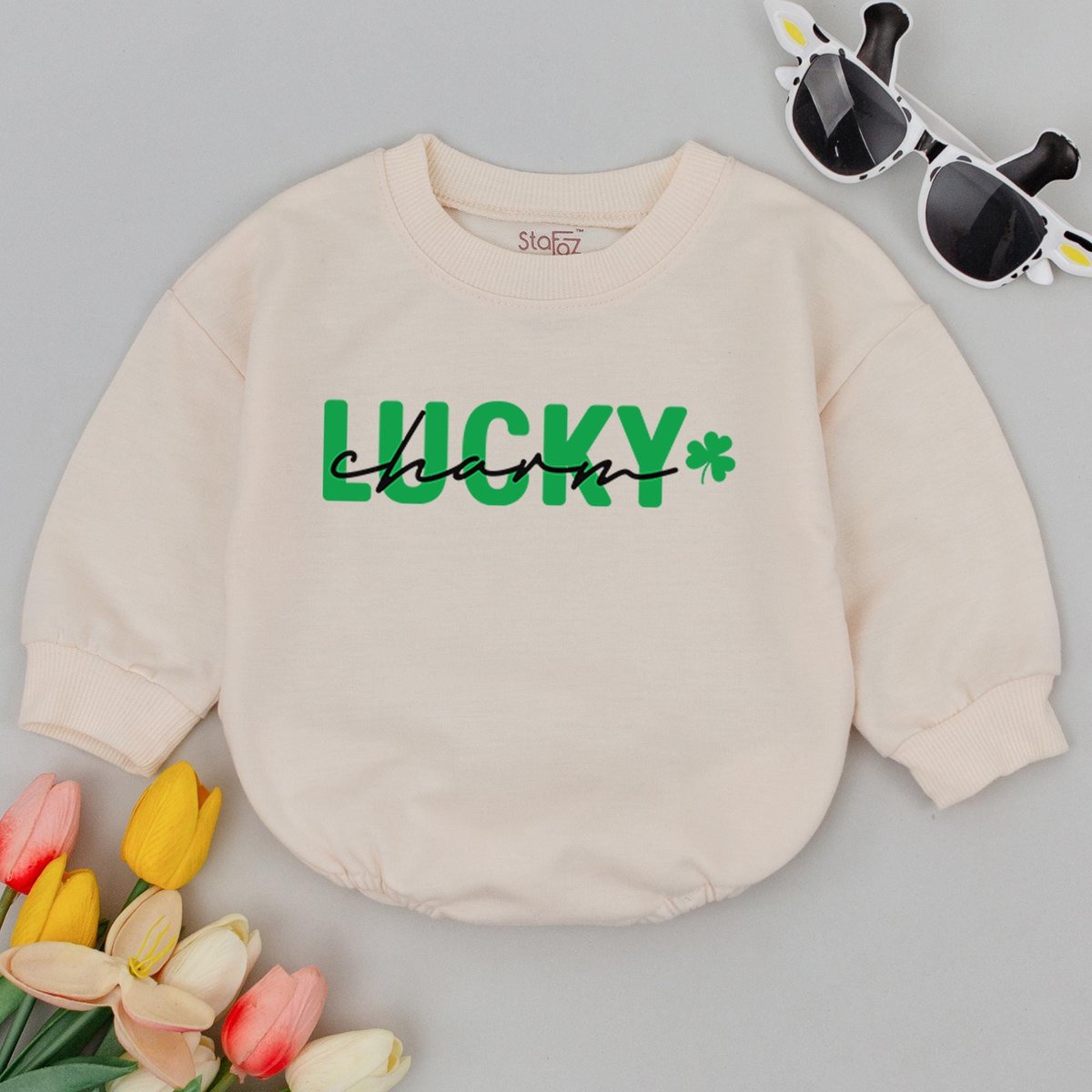 Lucky Charm Baby Romper Shamrock Baby Bodysuit Baby Shamrock Outfit St Patricks Baby Clothes St Padd 184