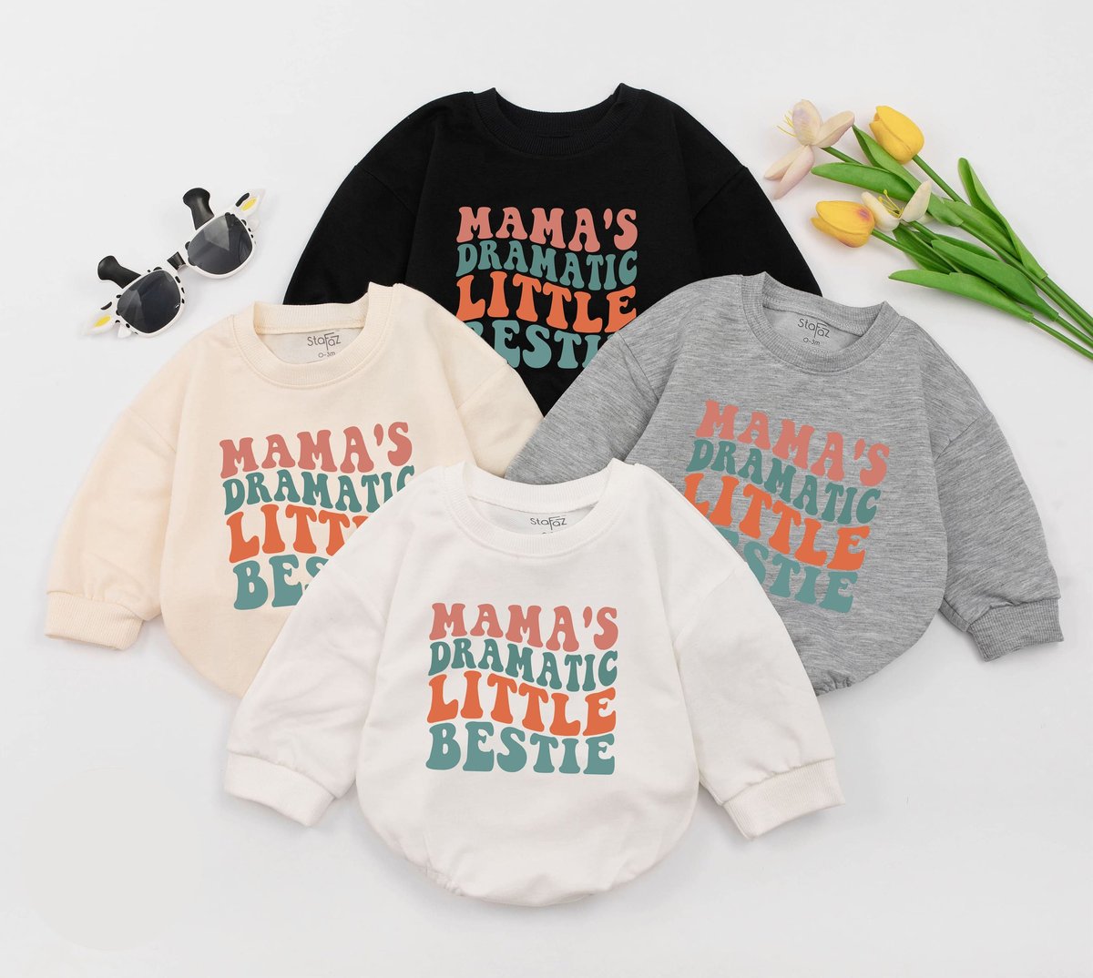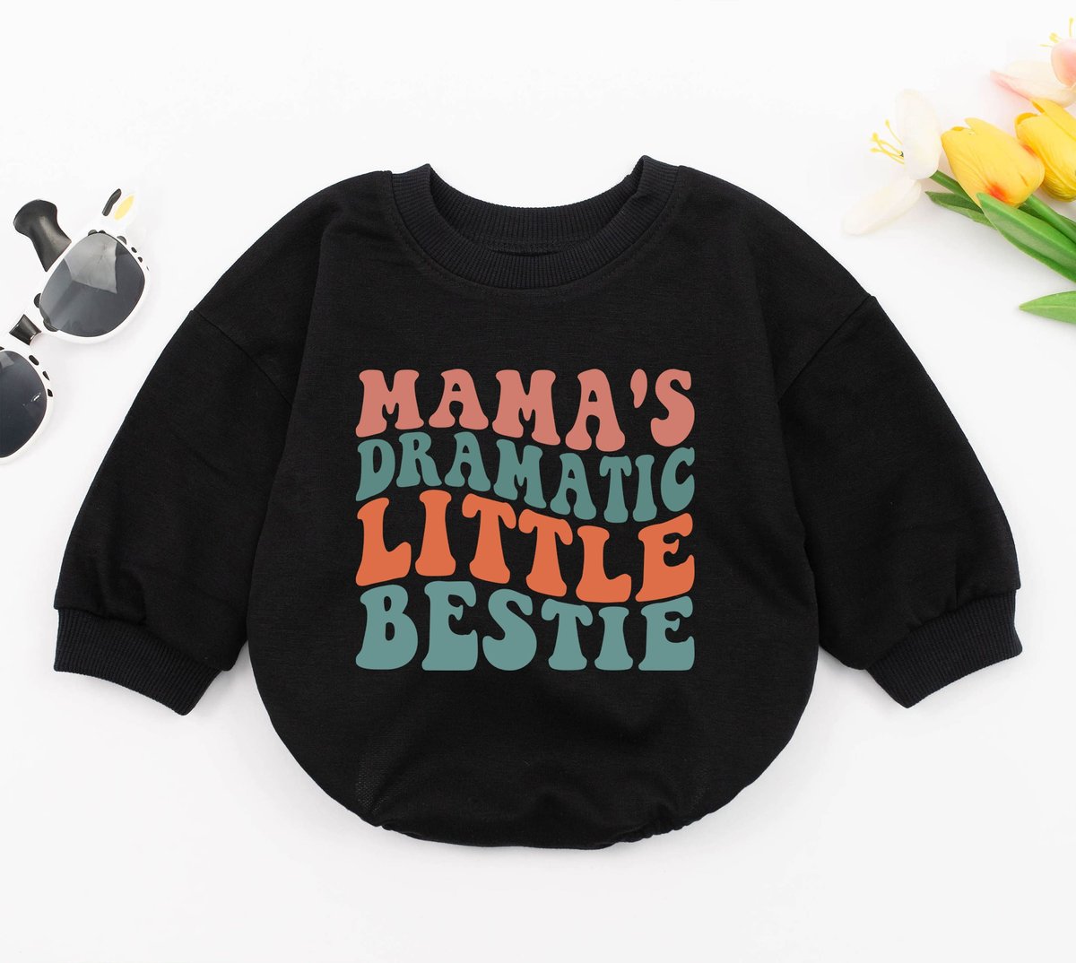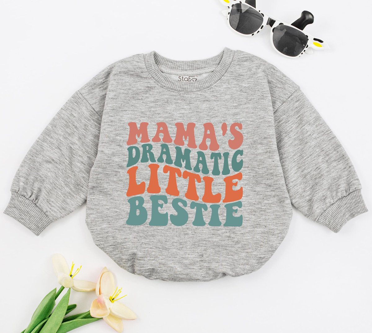 Mama’s Dramatic Little Bestie Oversized Baby Romper Baby Bodysuit Mothers Day Gift Baby Shower New 168
