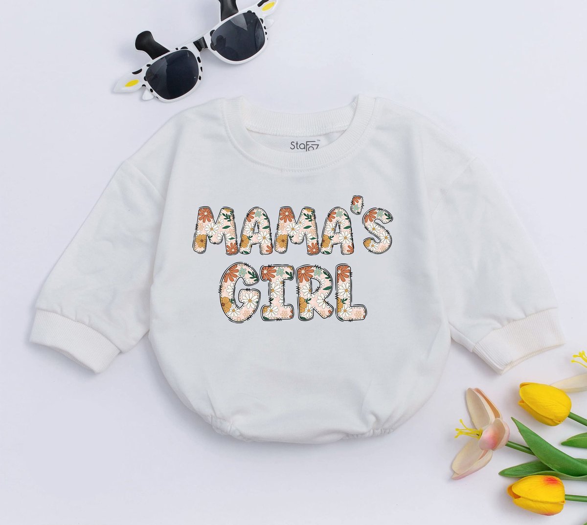 MAMA’S GIRL Oversized Baby Romper Retro Groovy Baby Bodysuit Mothers Day Gift Baby Shower New Baby 169