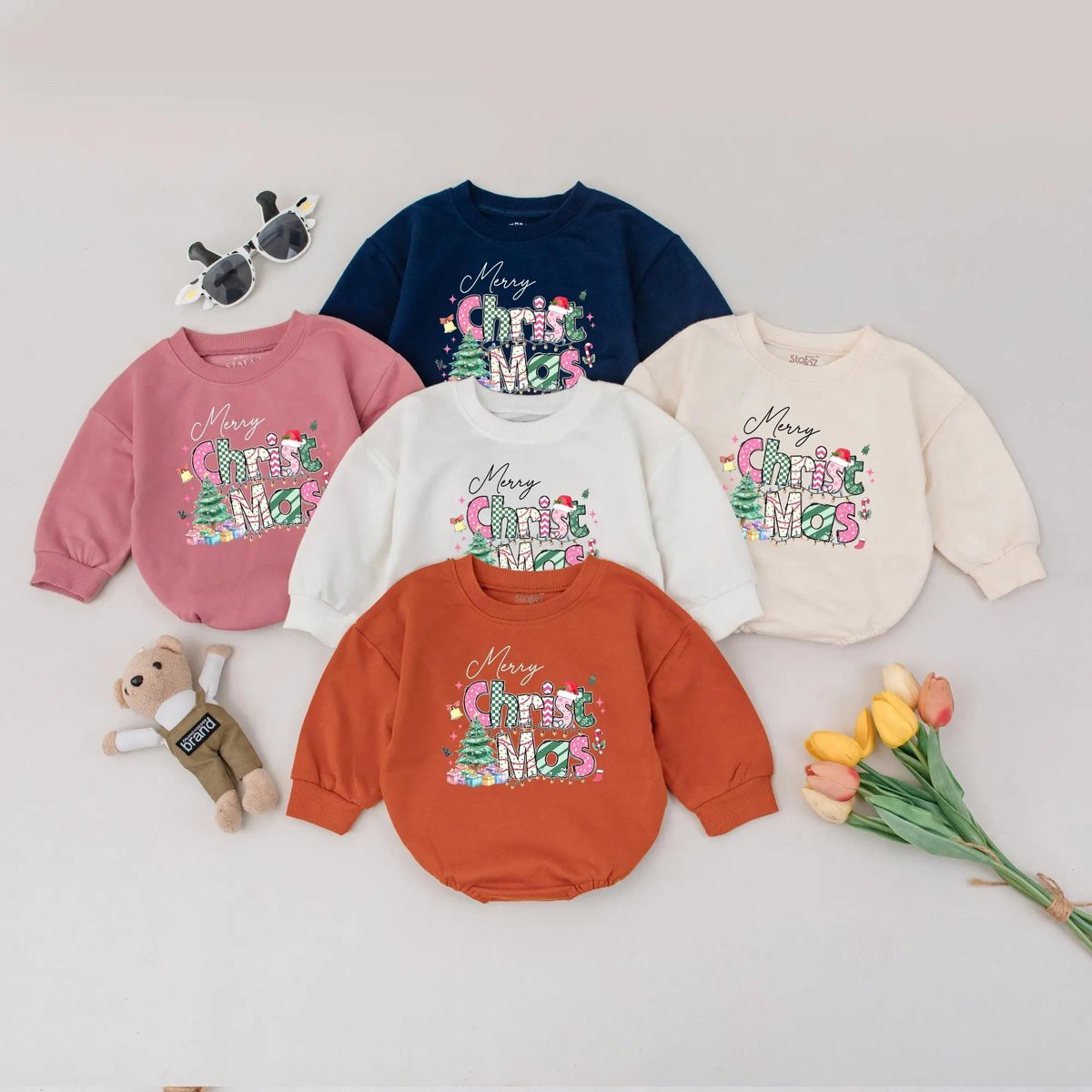 Merry Christmas Bubble Romper Winter Baby Outfit Christmas Tree Bodysuit Cute Xmas Gift for Baby Gir 436