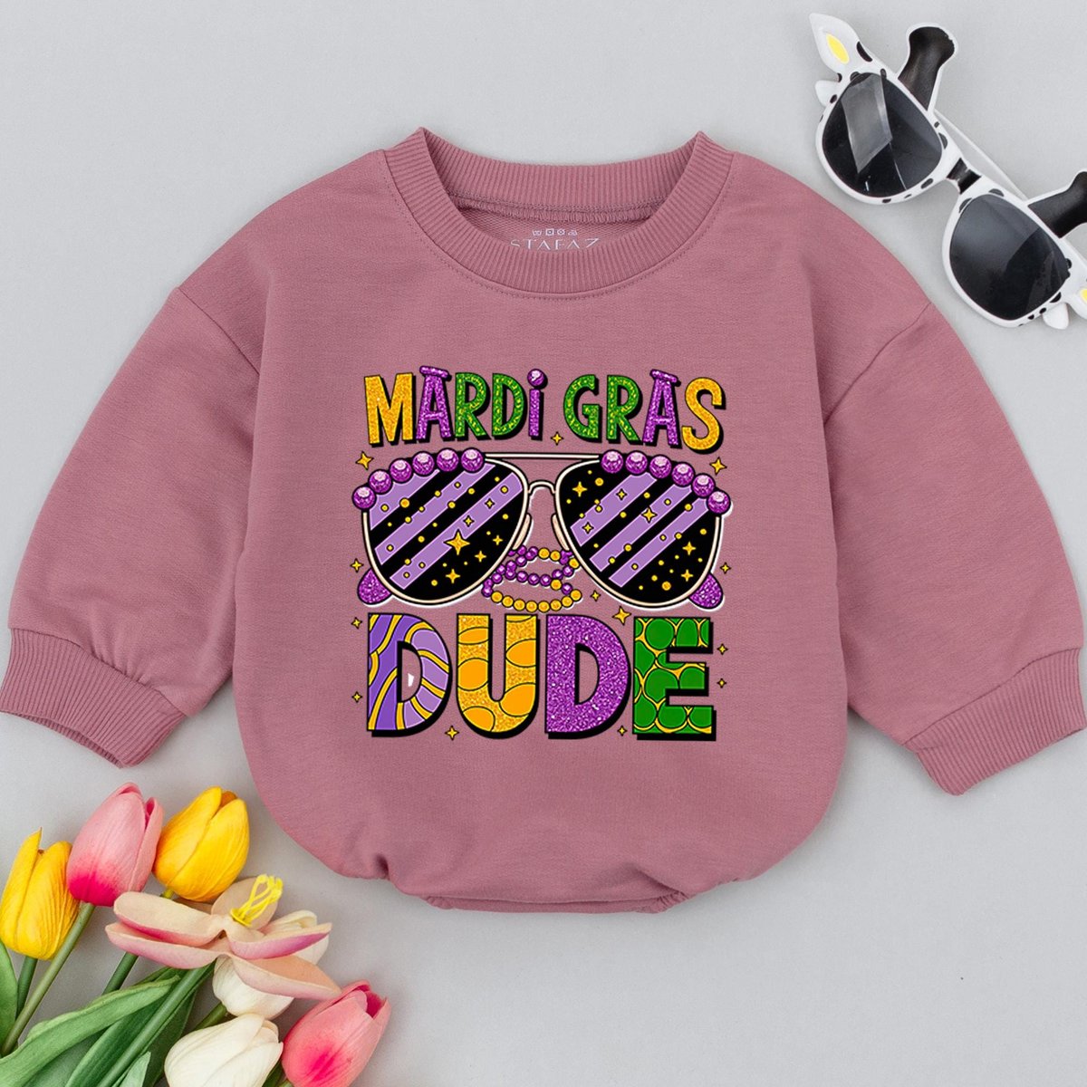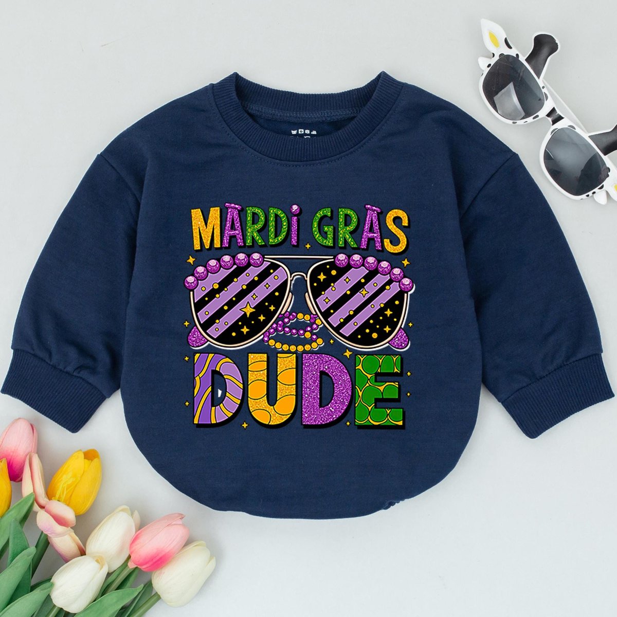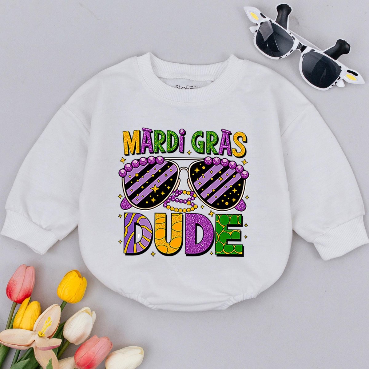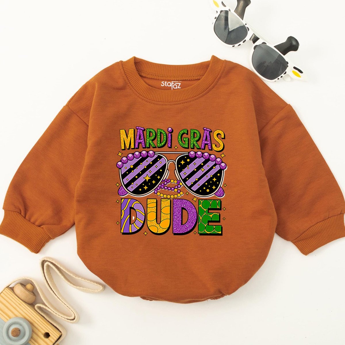 Mardi Gras Dude Baby Romper Baby Announcement Clothes Baby Carnival Outfit 1st Mardi Gras Festival B 184