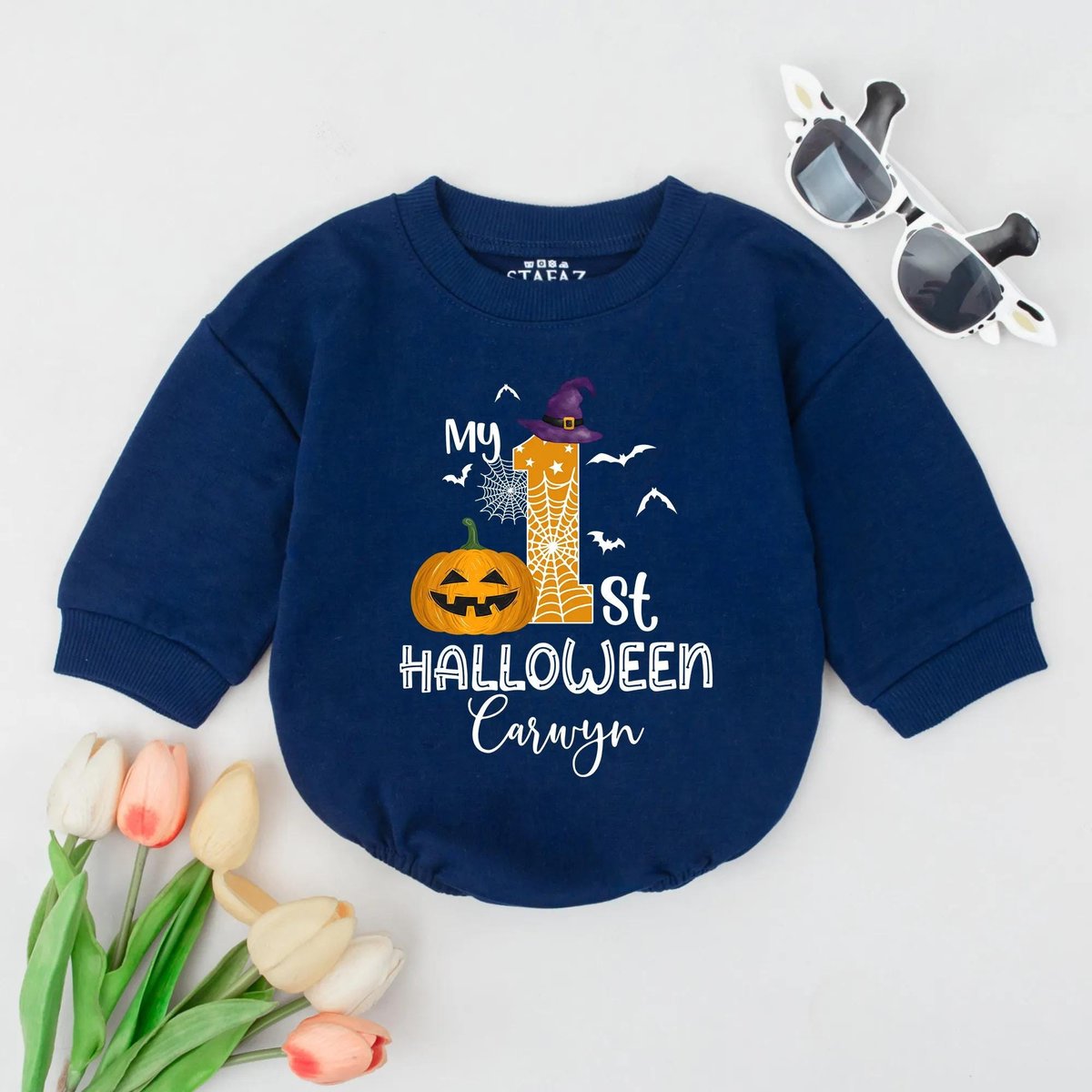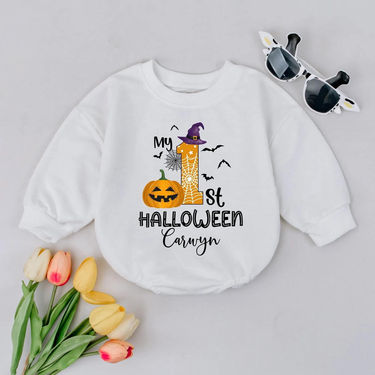My First Halloween Baby Bubble Romper Custom Name Halloween Outfit Personalized Fall Baby Romper Pum 433
