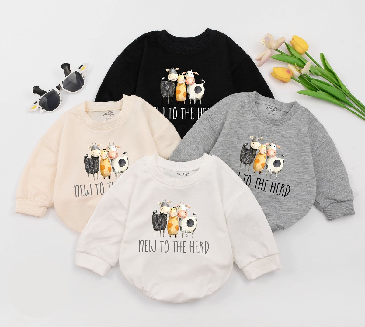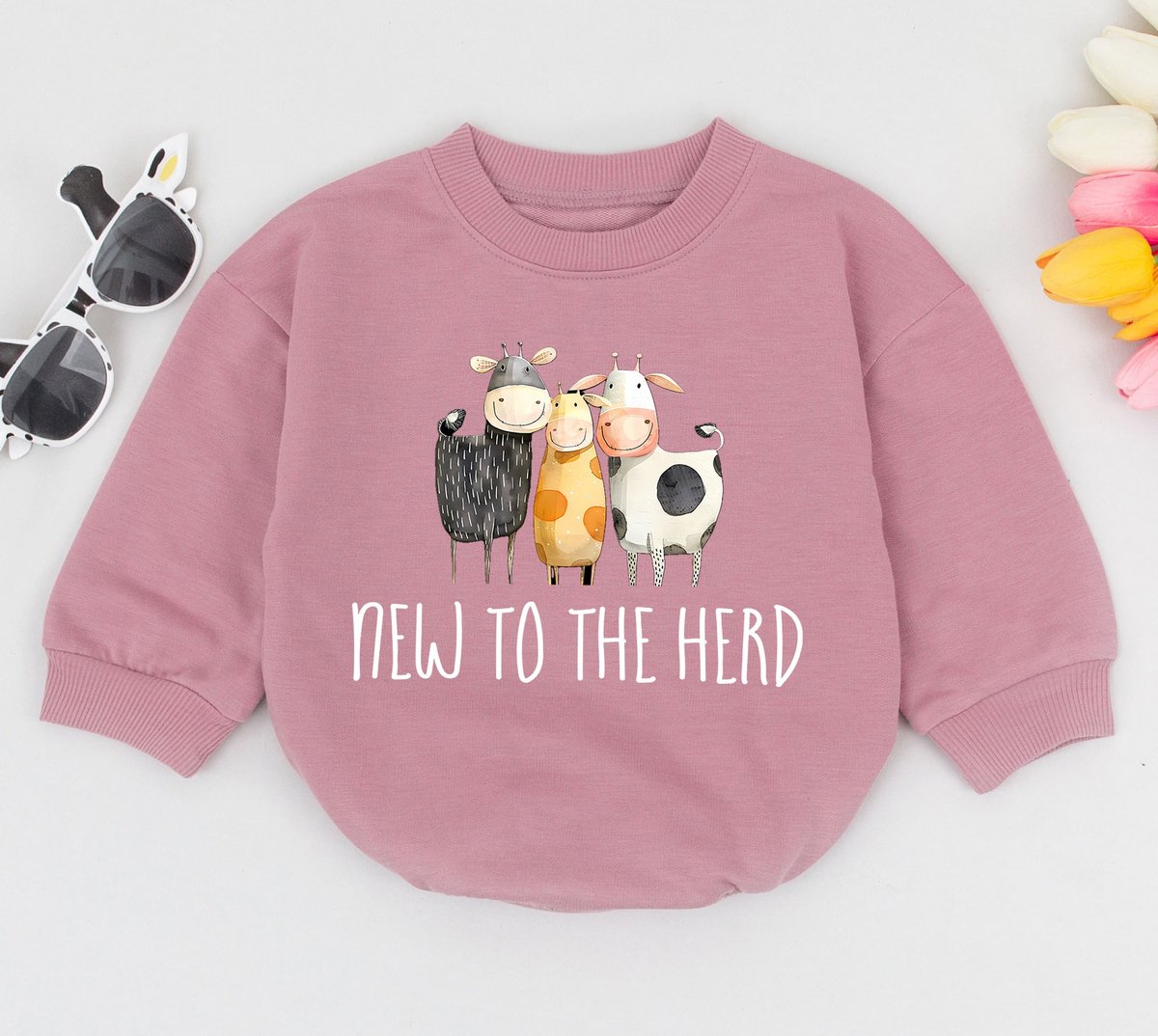 New To The Herd Baby Romper Cow Announcement Gift Cow Baby Clothes Farm Baby Outfit Funny Farm Baby 168