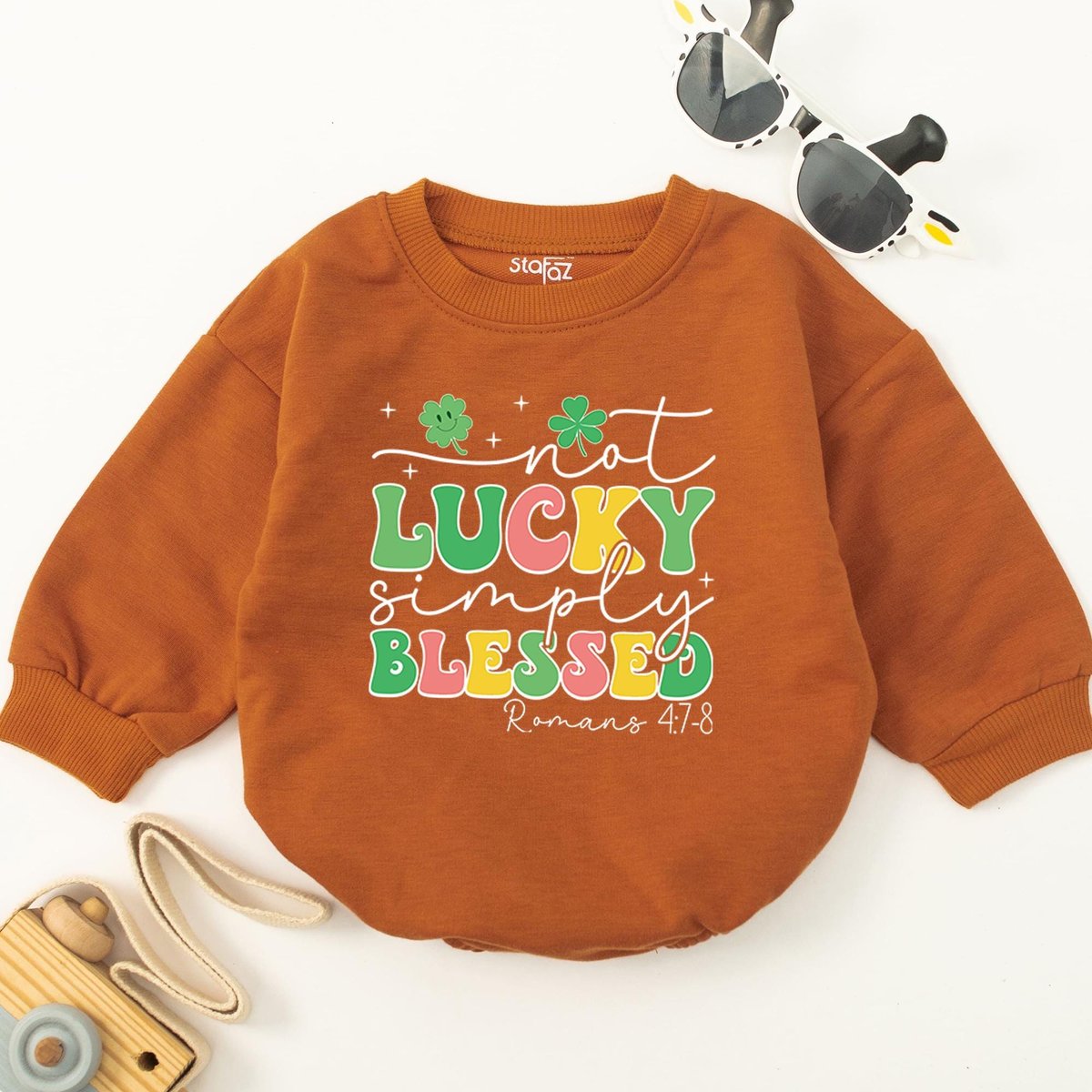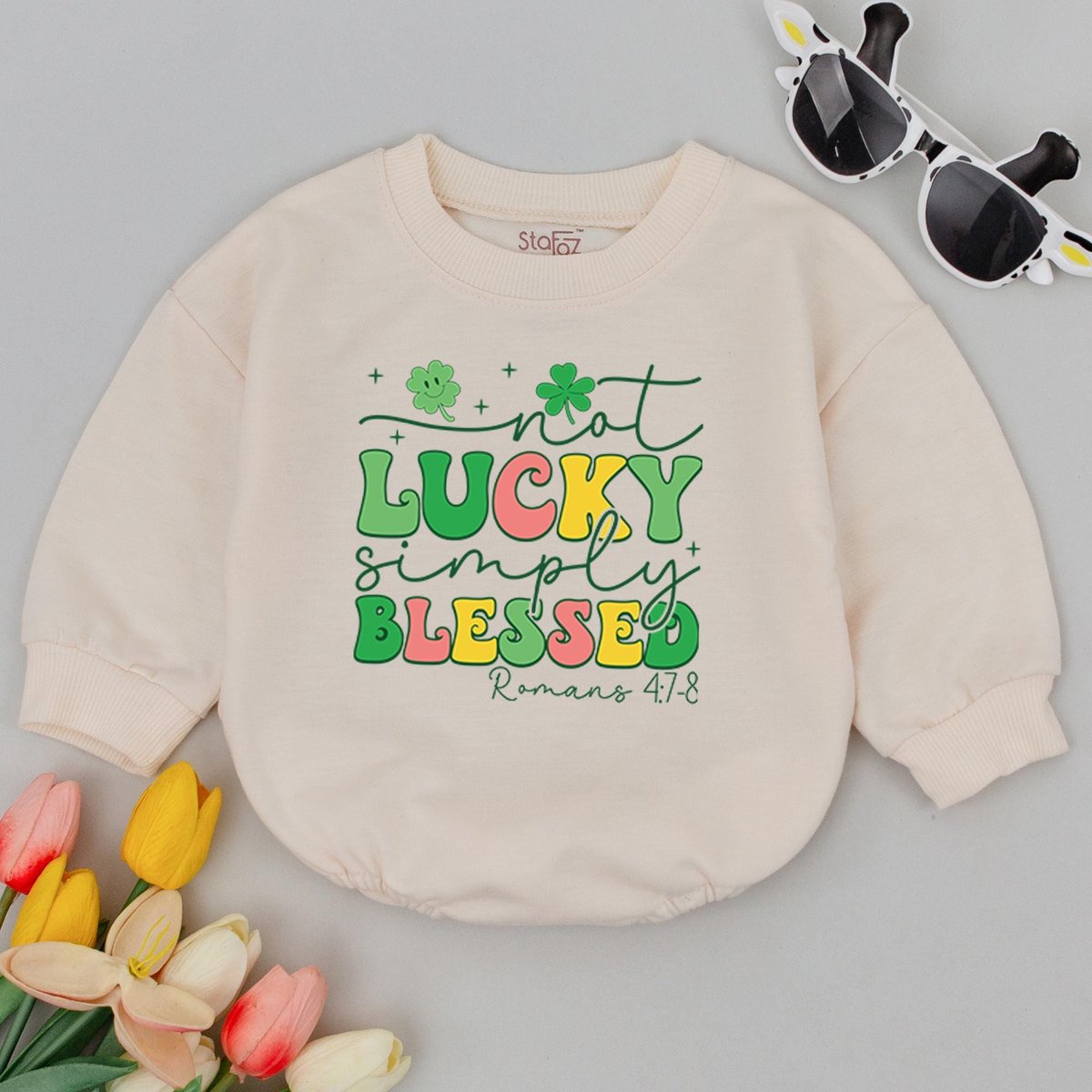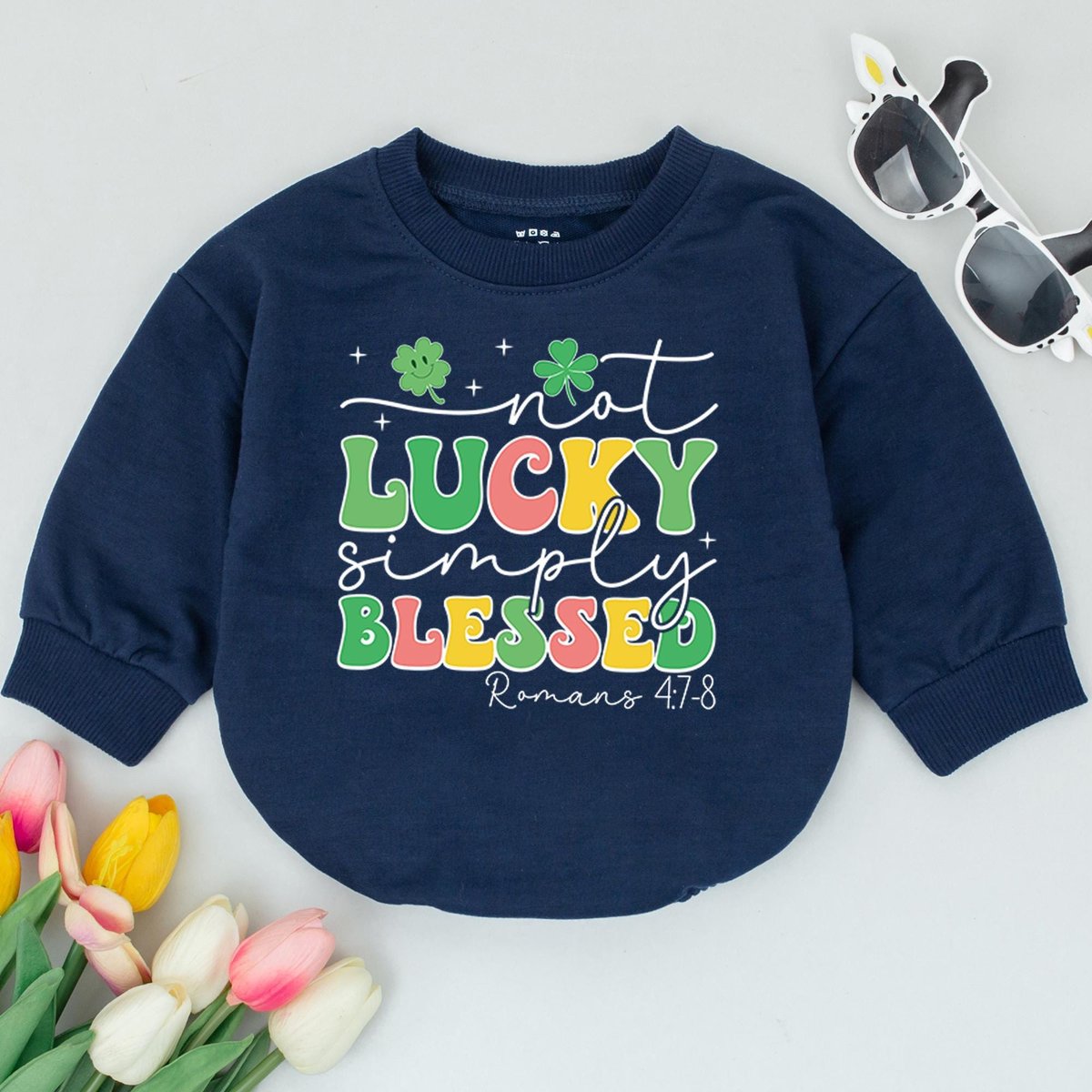 Not Lucky Simply Blessed Baby Romper Clover Patrick Baby Bodysuit Newborn Saint Patrick’s Day Clove 185