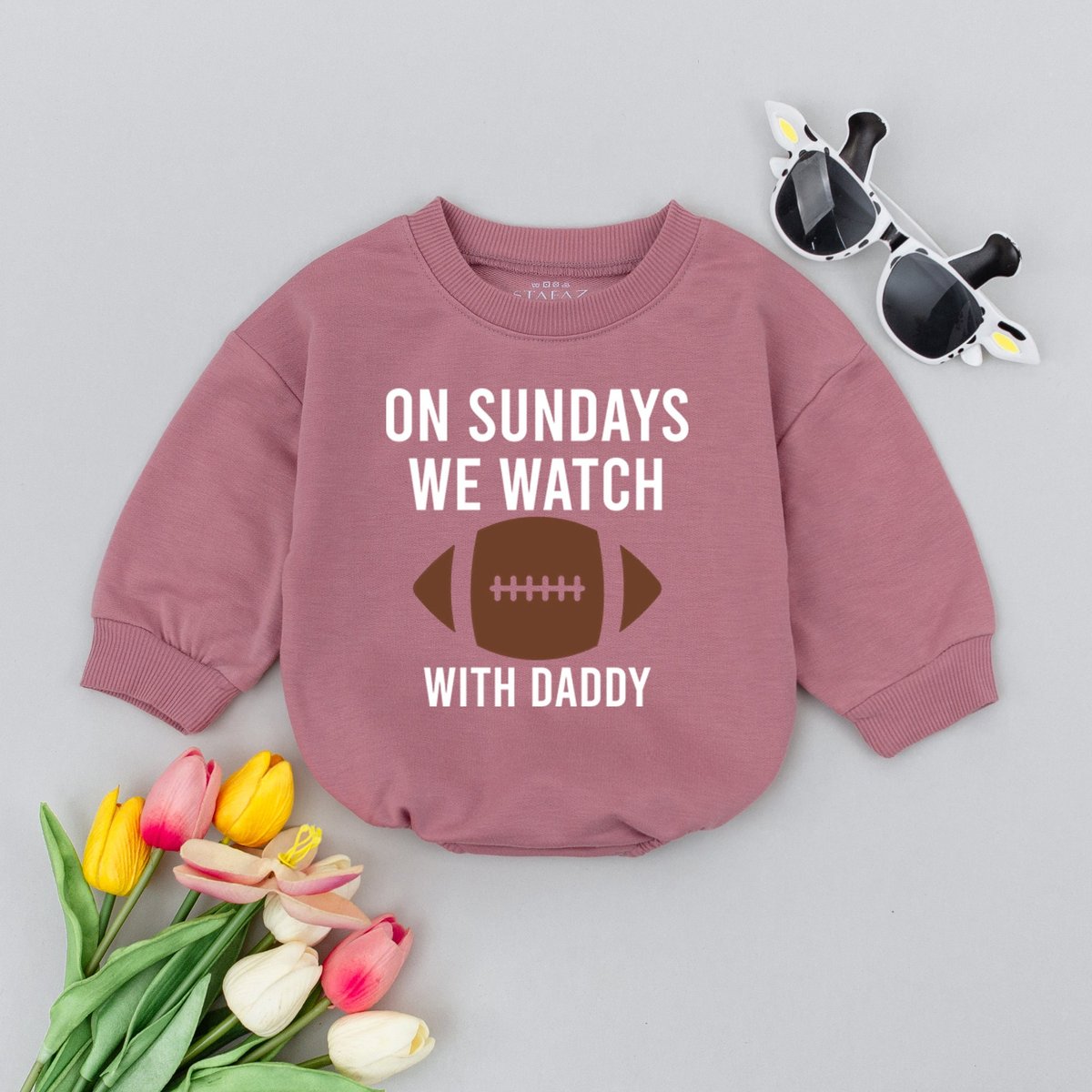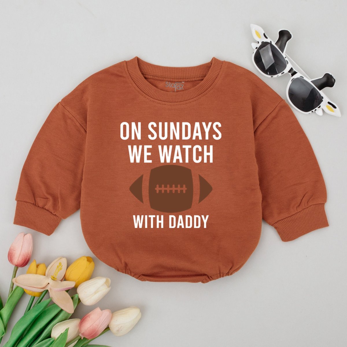 On Sundays We Watch football with Daddy Fall Baby Clothes Daddy’s Girl Football Season Oversized Ba 147