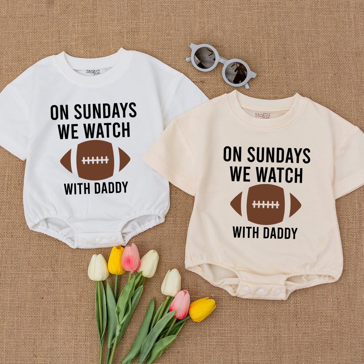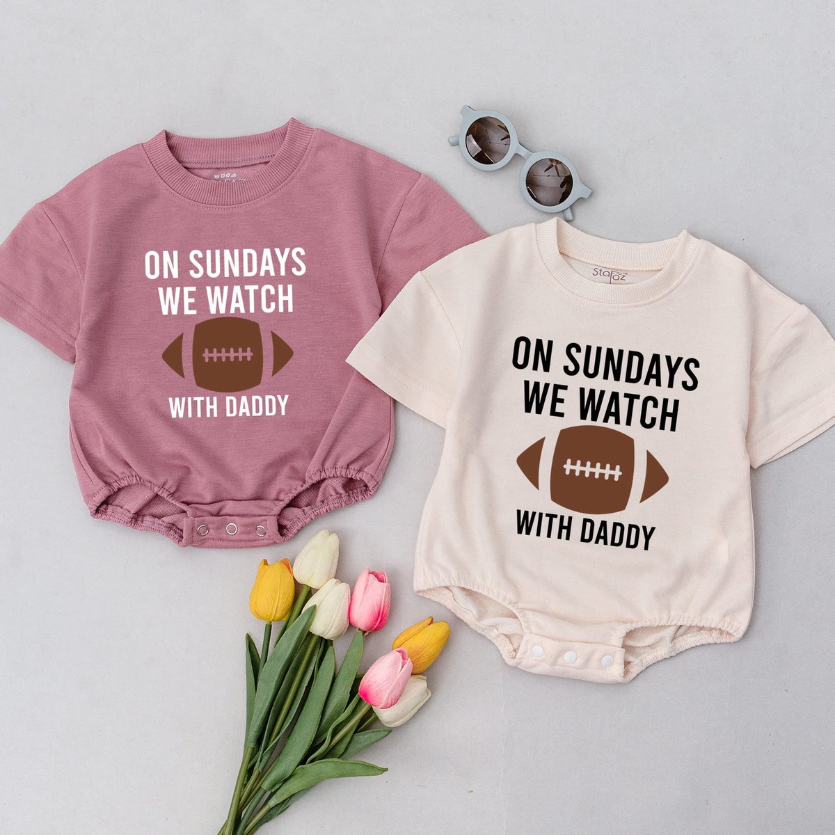 On Sundays We Watch football with Daddy Fall Baby Clothes Daddy’s Girl Football Season Oversized Ba 169