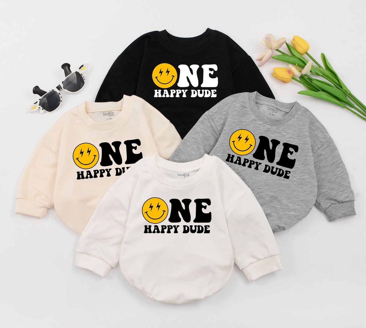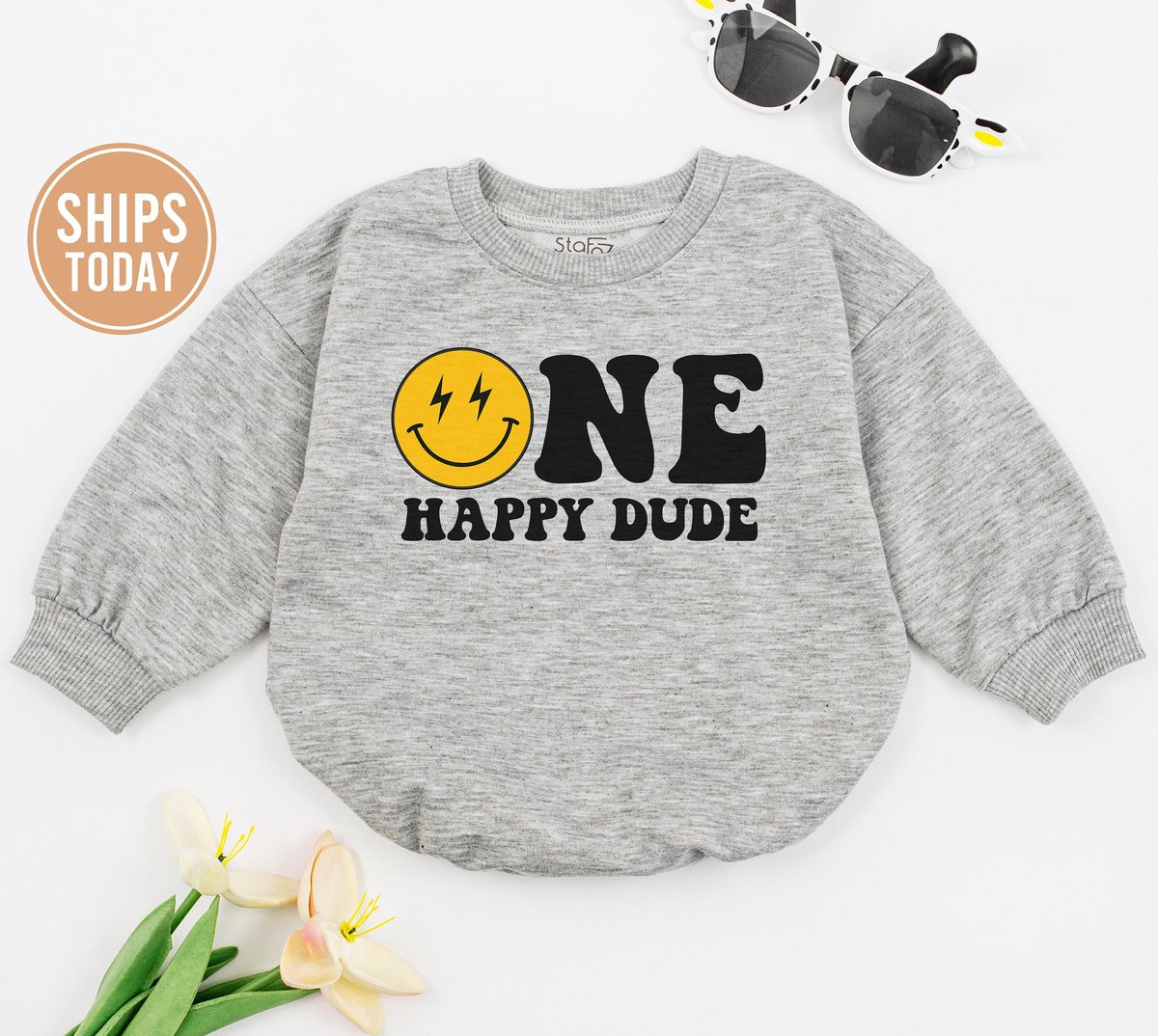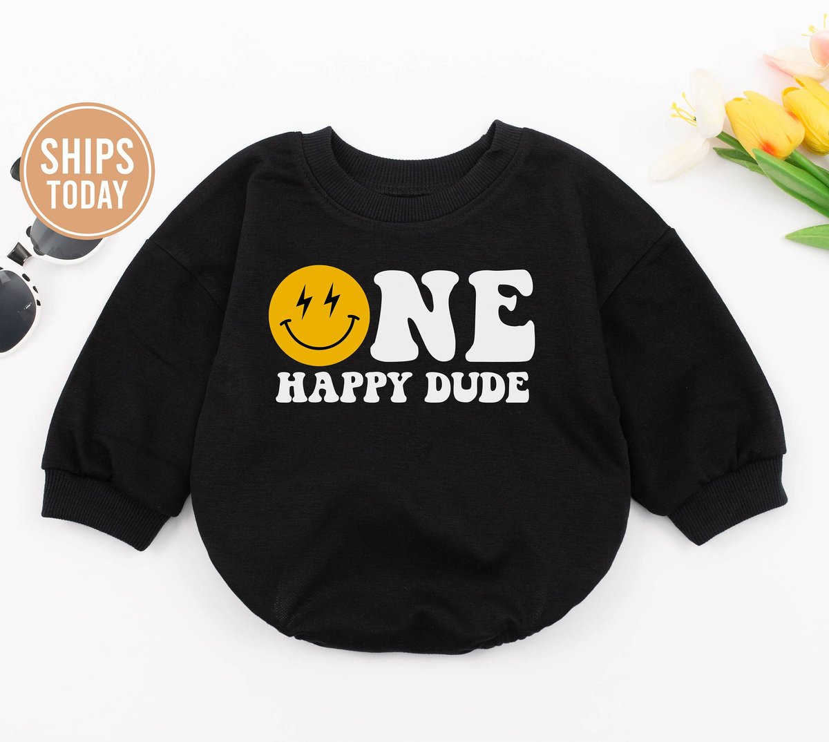 One Happy Dude Baby Romper First Birthday Gift 1st Birthday One Cool Dude Smiley Face Birthday Outfi 149