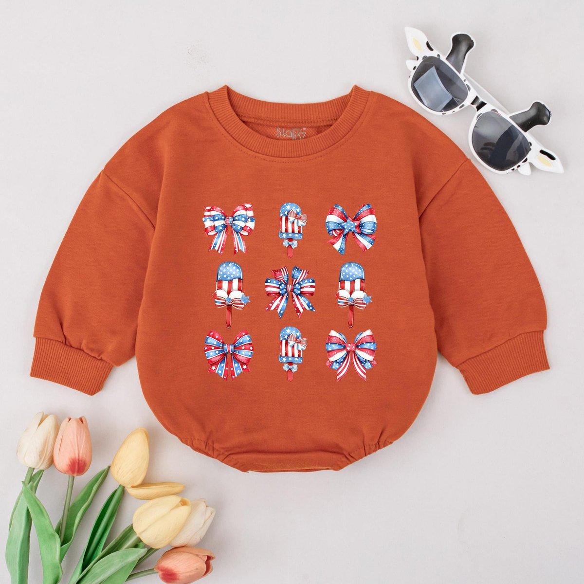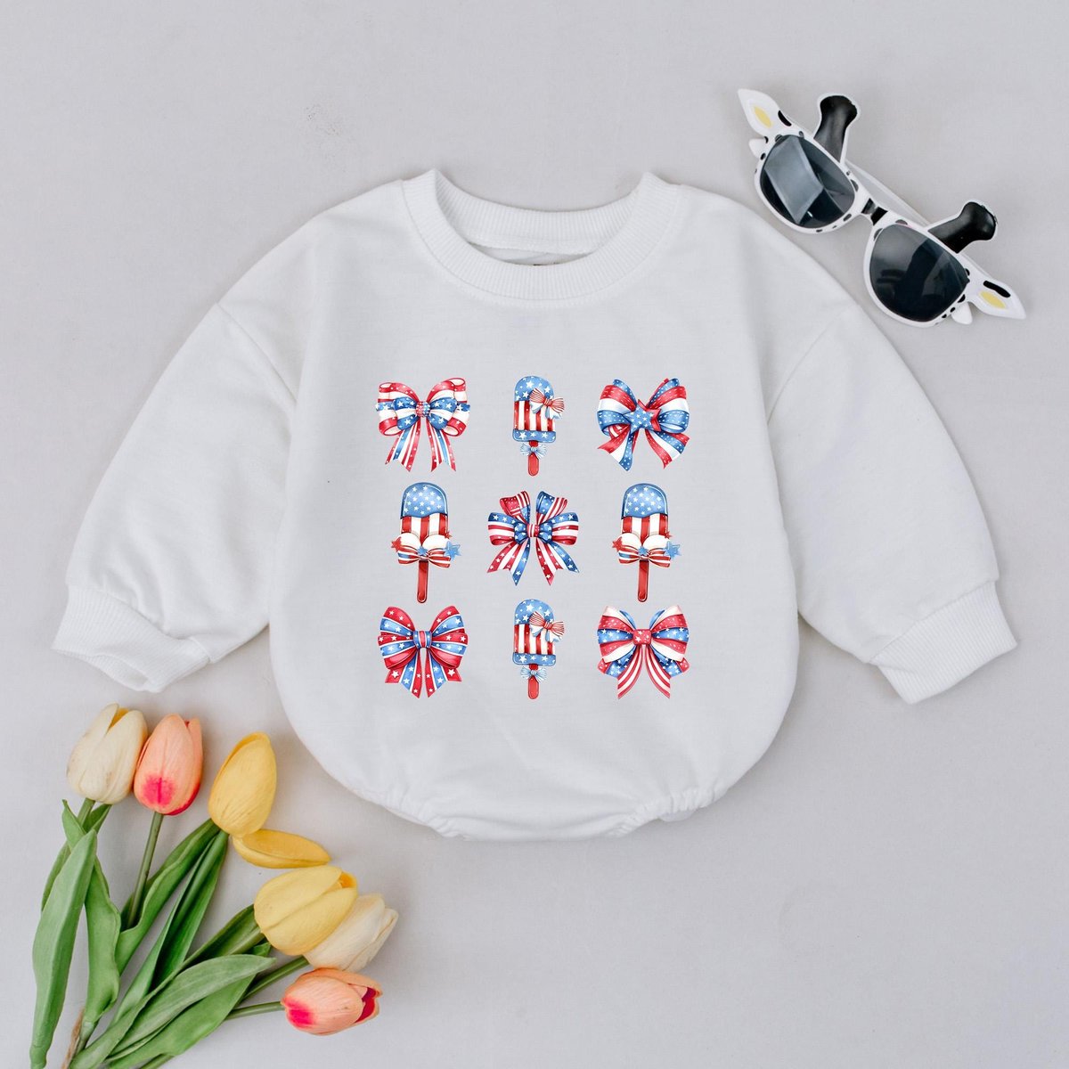 Patriotic Bow Baby Romper 4th of July Bubble Outfit USA Flag Ice Cream Baby Clothes Cute Independenc 430