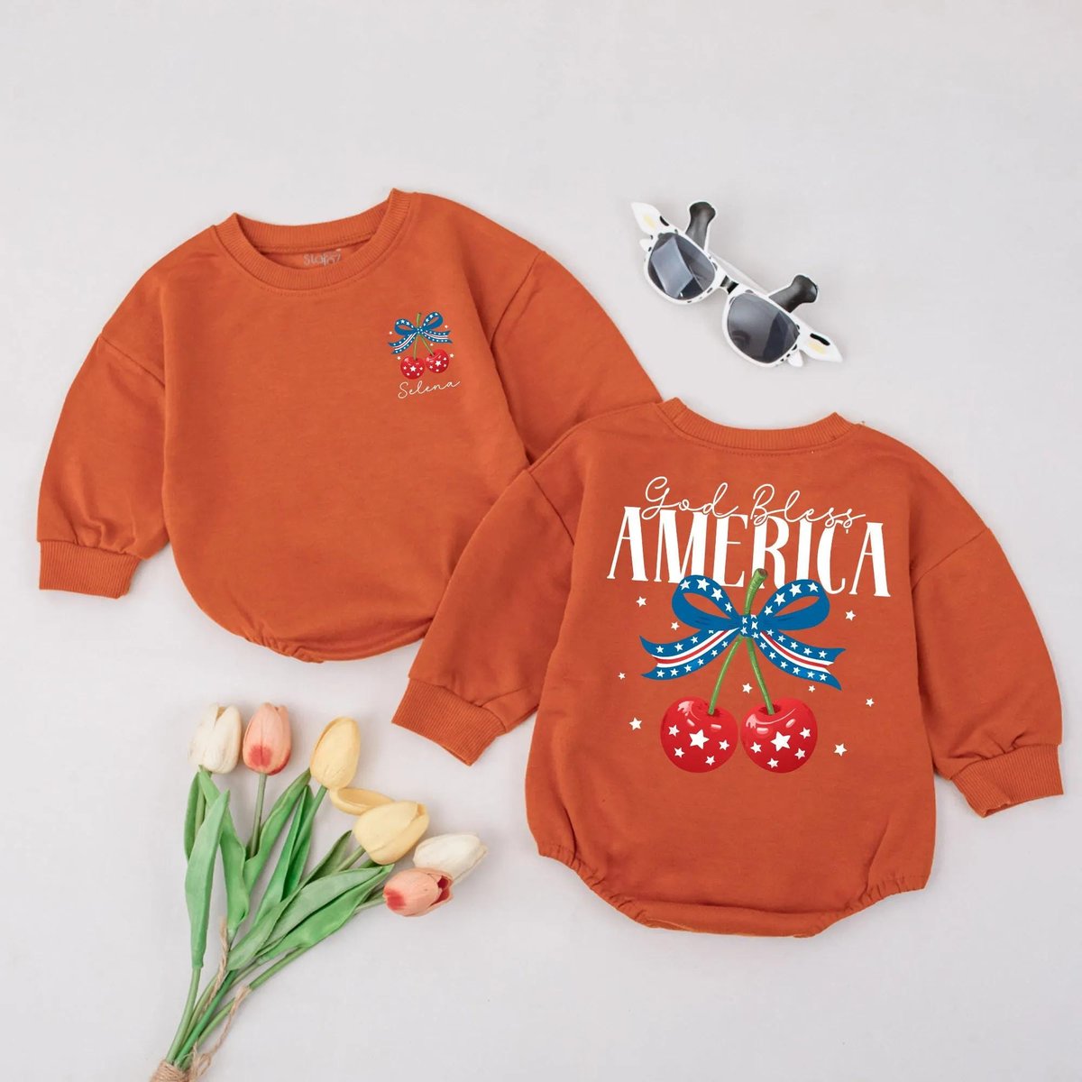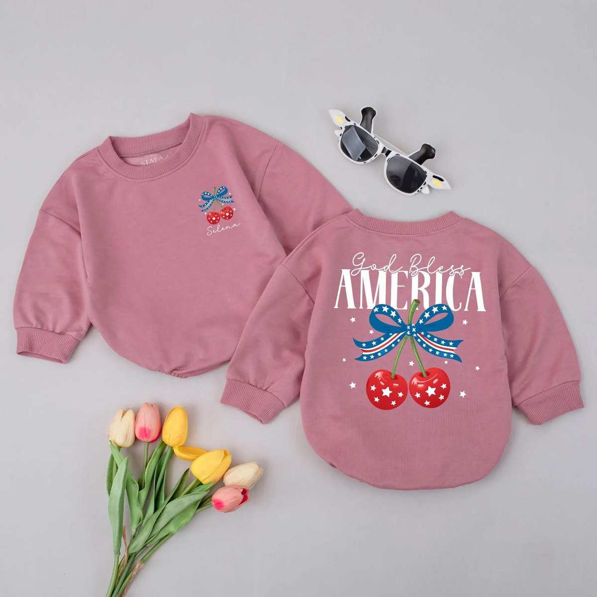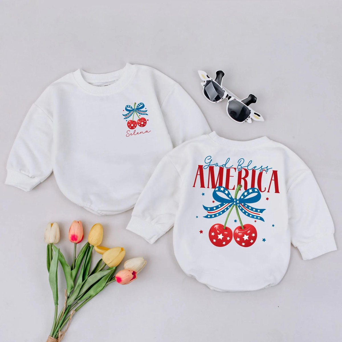 Patriotic Cherry Baby Bubble Romper Red White Blue Baby Outfit Summer USA Baby Romper Toddler 4th of 431
