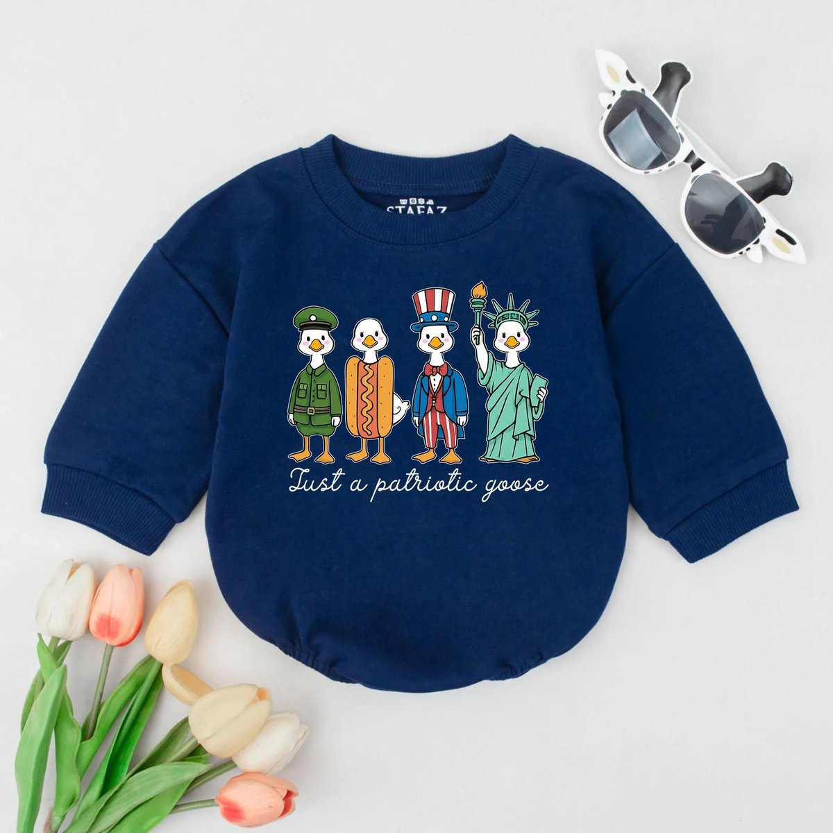 Patriotic Goose Buble Romper Long Sleeve Baby Clothes 4th of July Baby Outfit Cute Baby Romper Indep 431