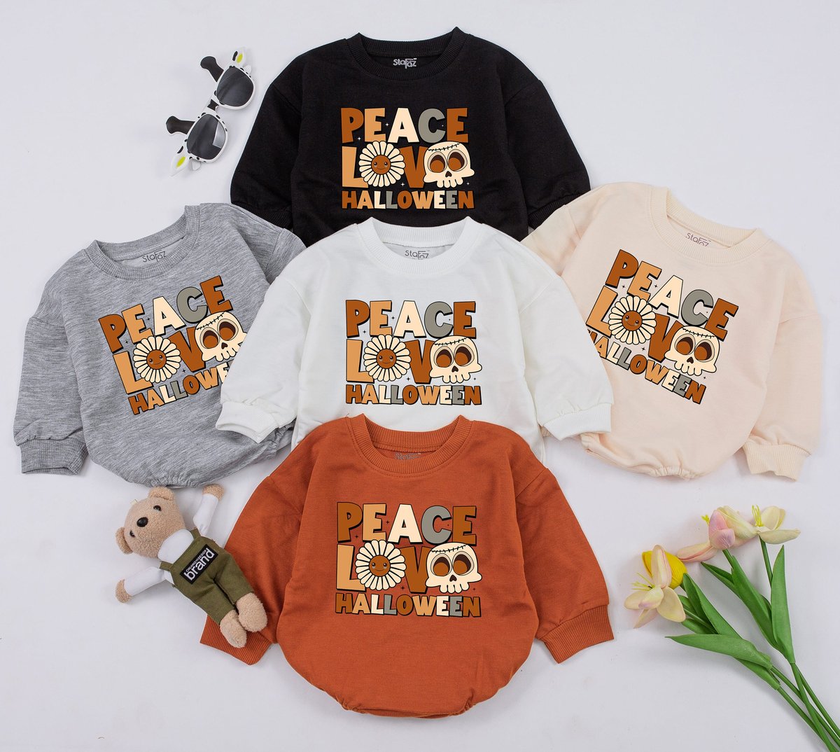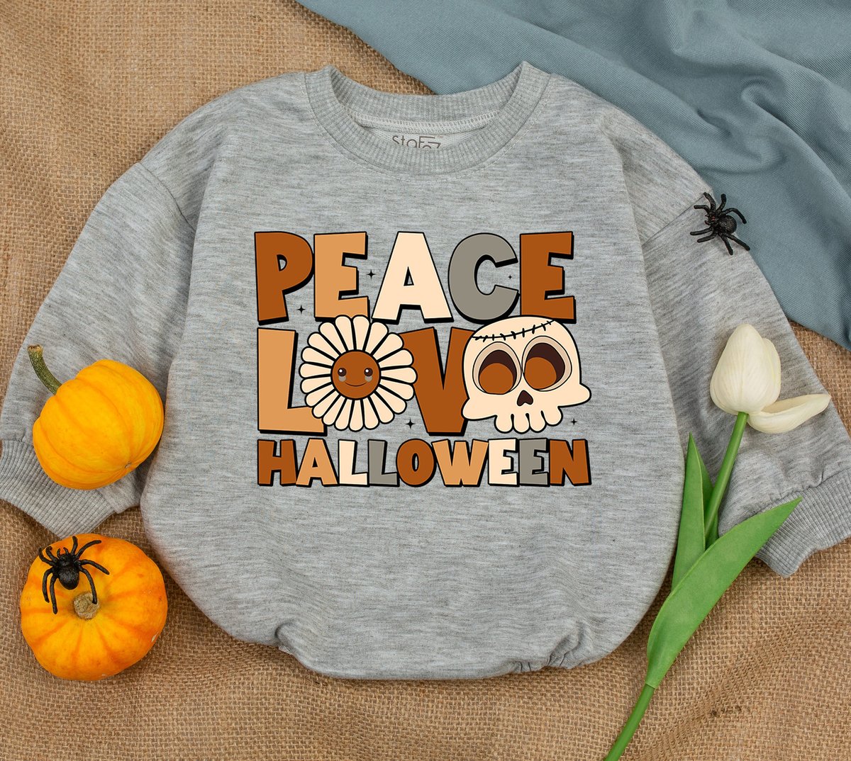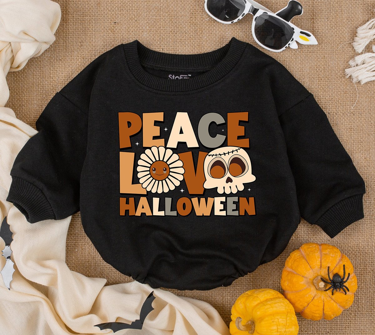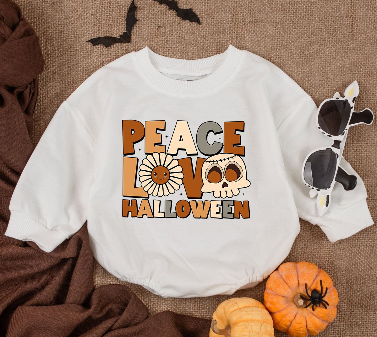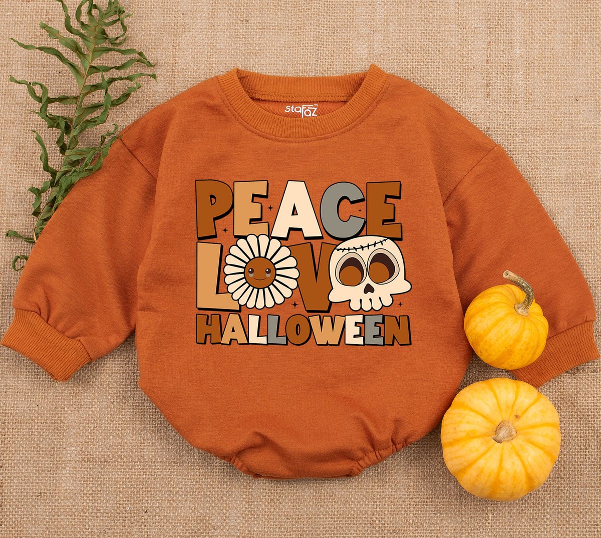 Peace Love Halloween Baby Romper Toddler Sweatshirt Baby Halloween Bubble Romper Halloween Baby Outf 155