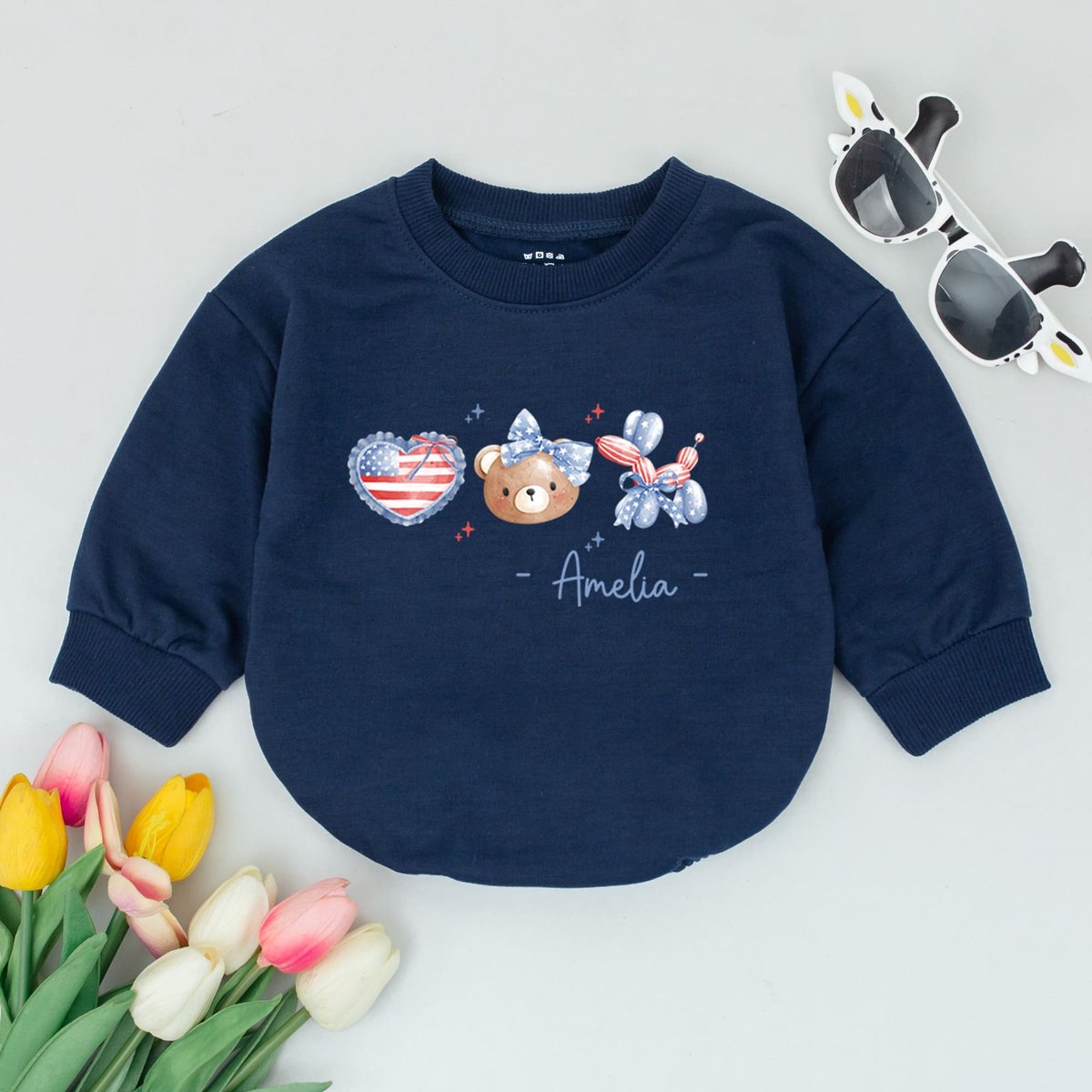 Personalization 4th Of July Baby Romper 1st Fourth of July Baby Clothes Patriotic New Baby Gift USA 170