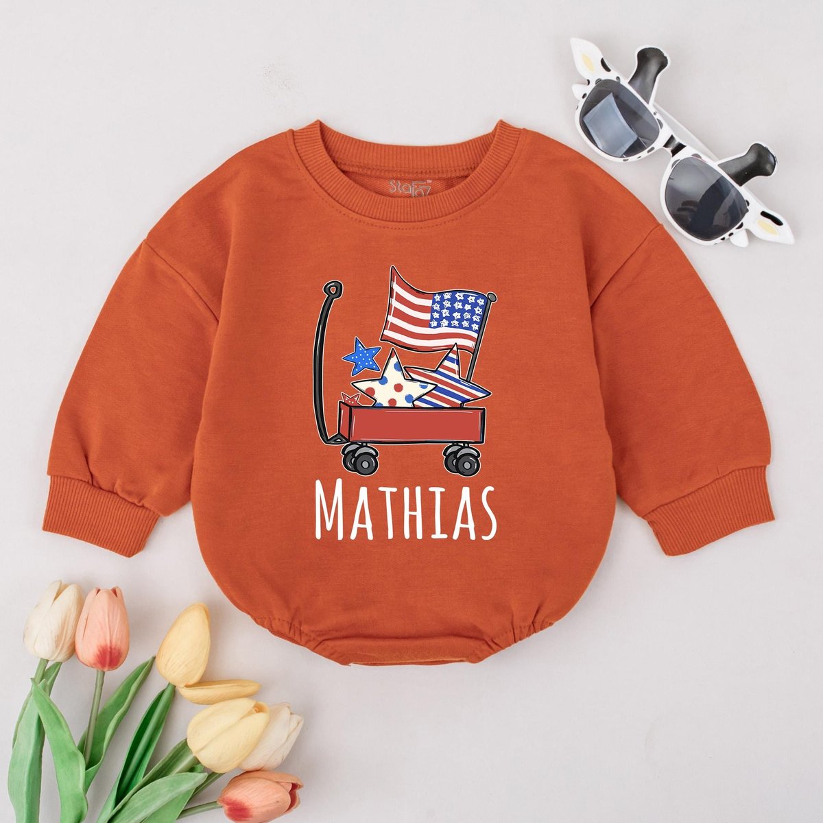 Personalized 4th of July Baby Romper Custom Name Wagon Outfit Patriotic USA Baby Clothes Independe 430