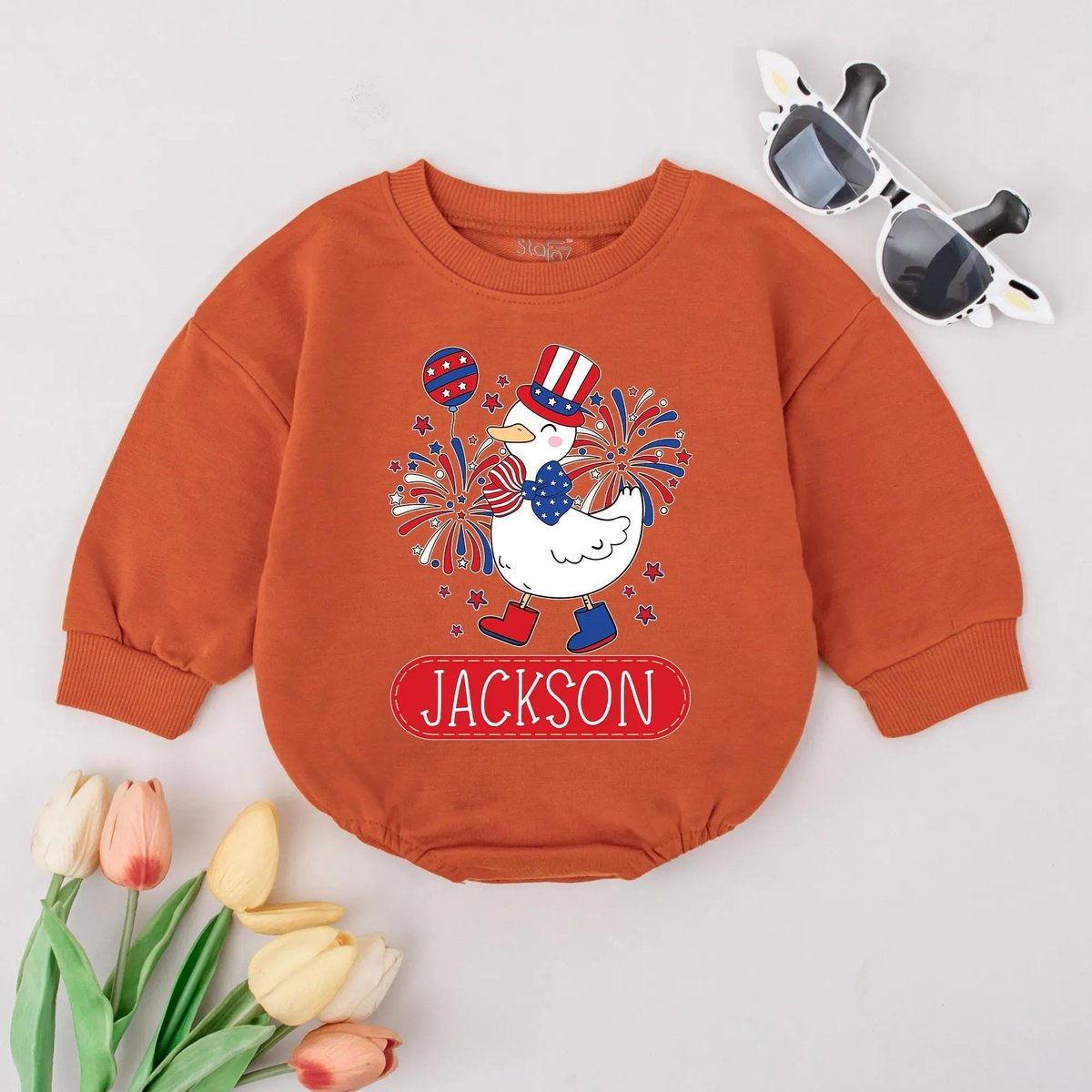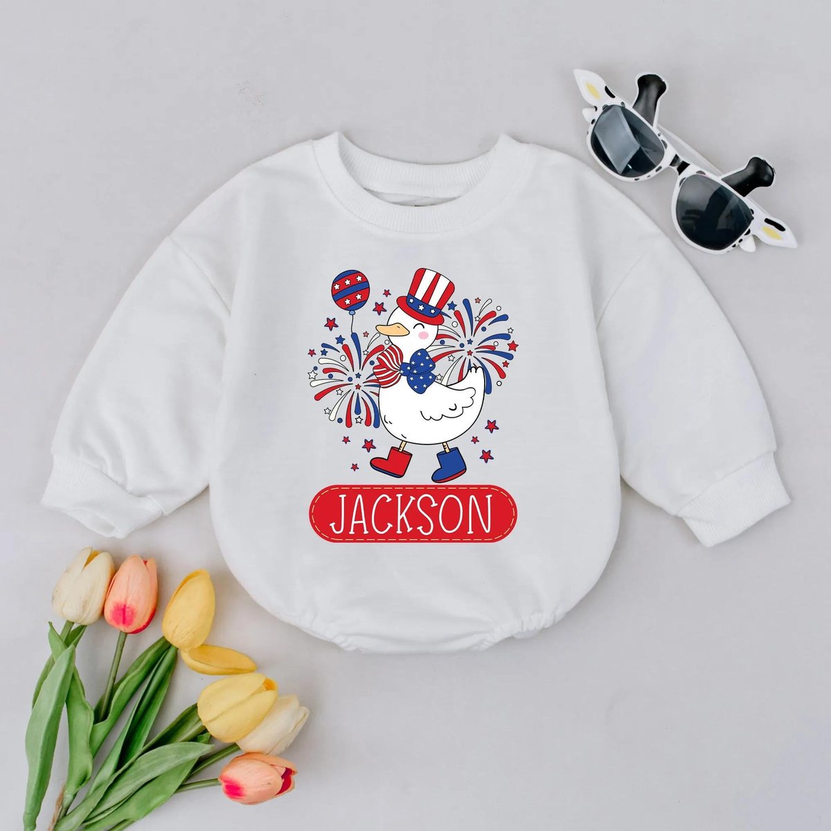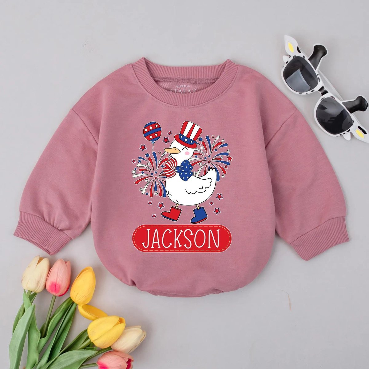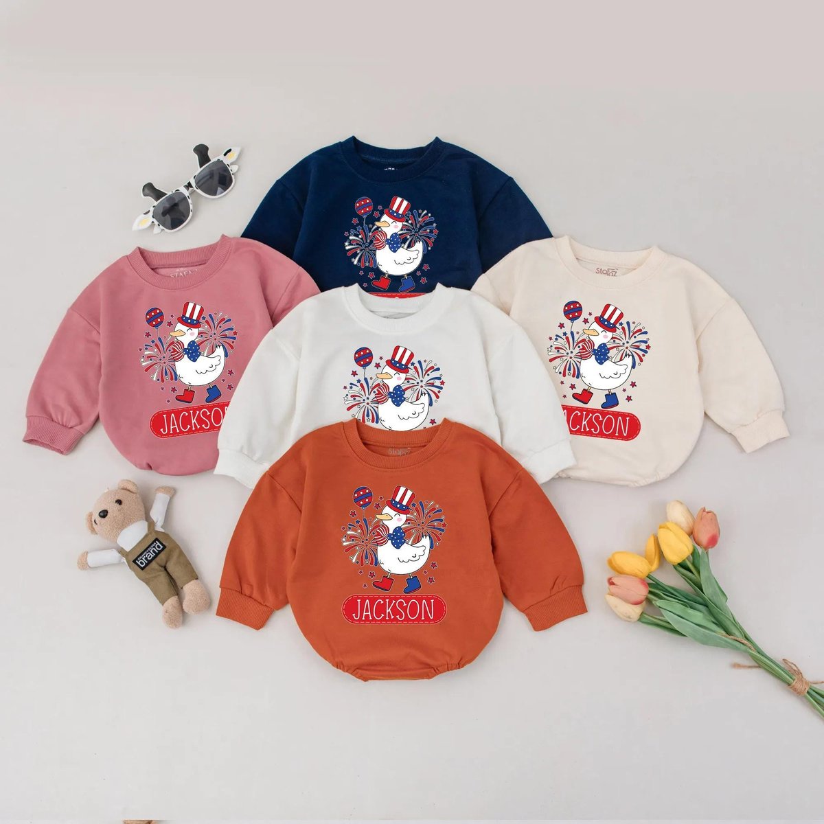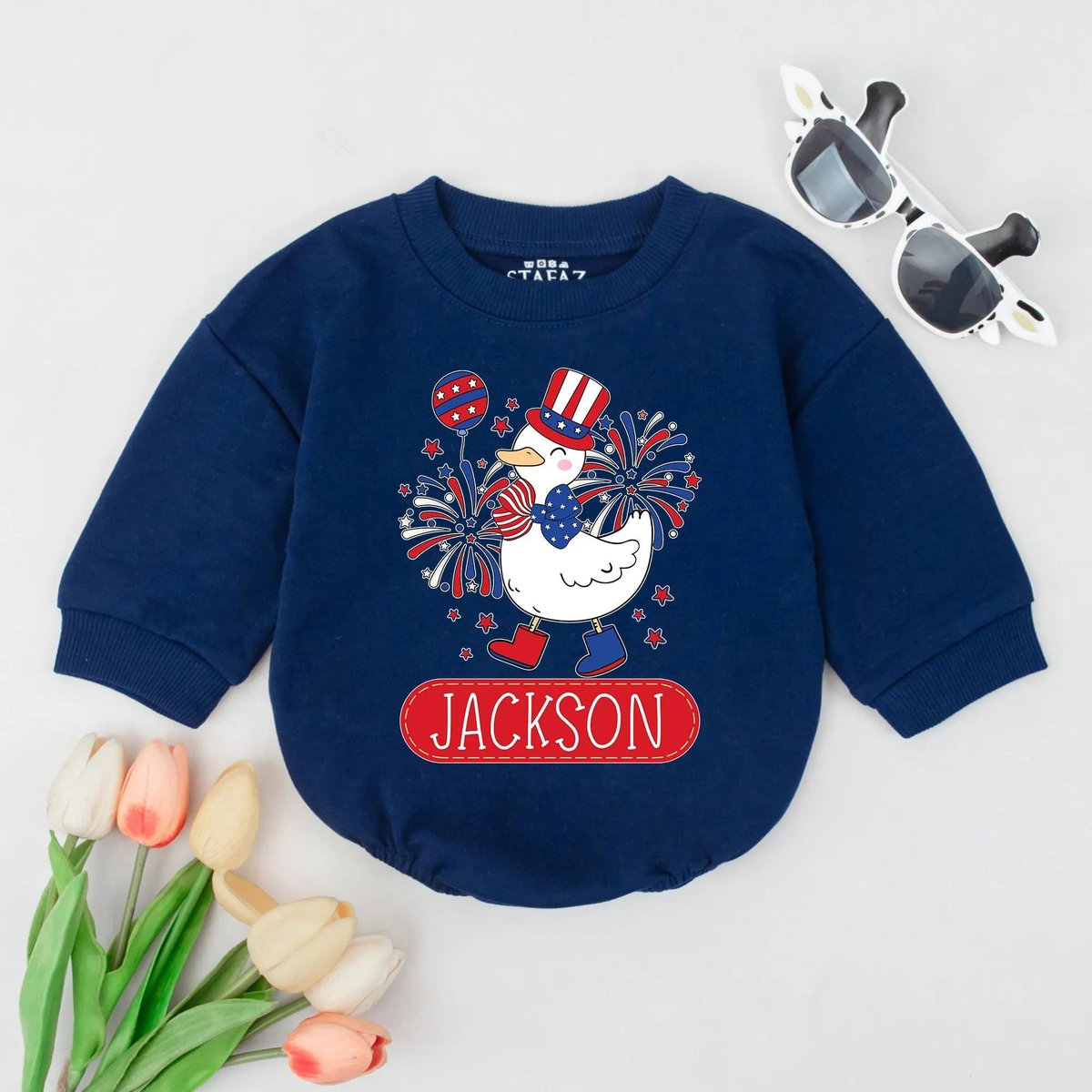 Personalized 4th Of July Baby Romper Cute Duck Fireworks Outfit Independence Day Clothes for Kids Cu 431