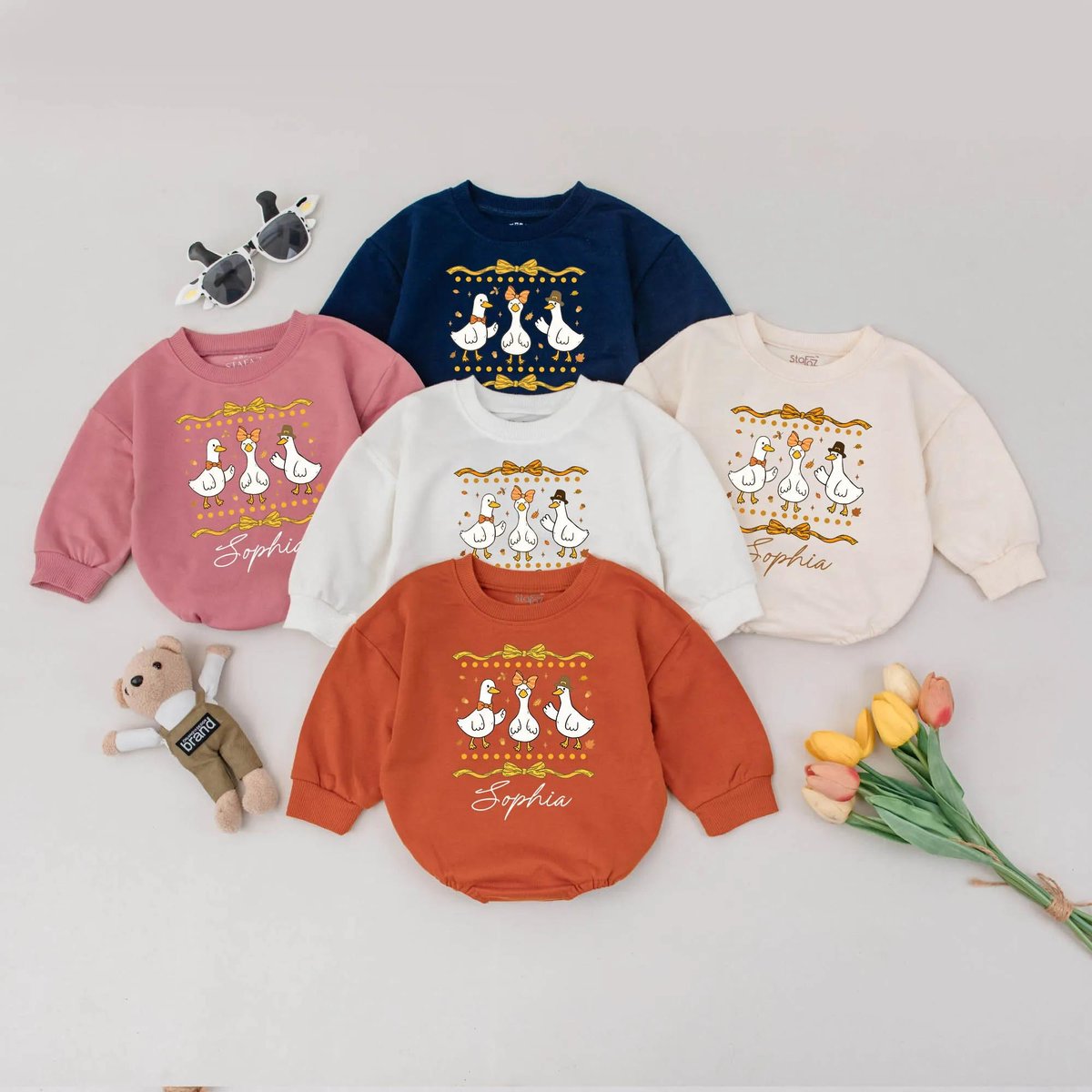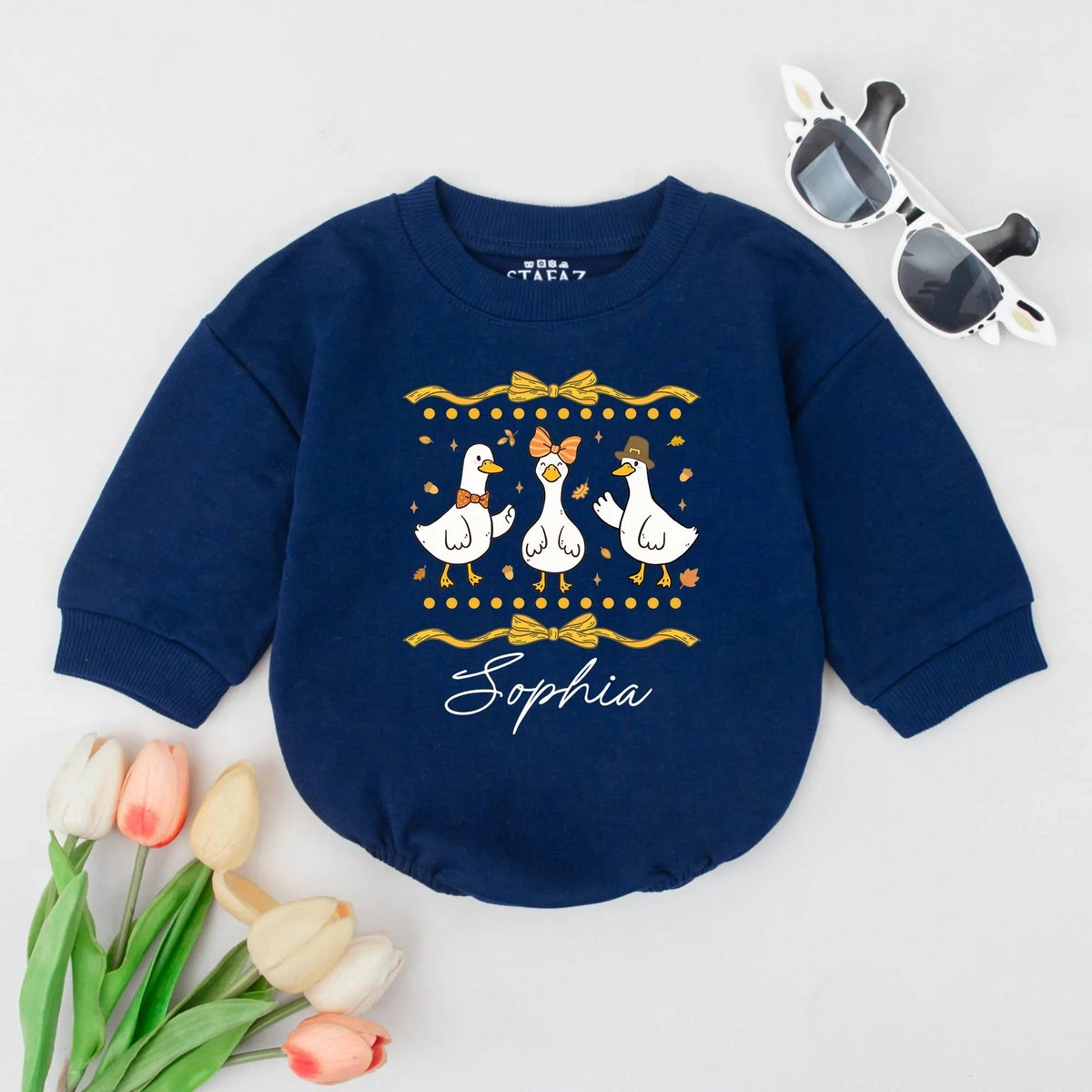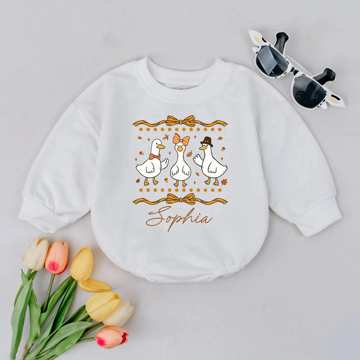 Personalized Autumn Goose Bubble Romper First Thanksgiving Baby Outfit Cute Goose Baby Bodysuit Fall 435