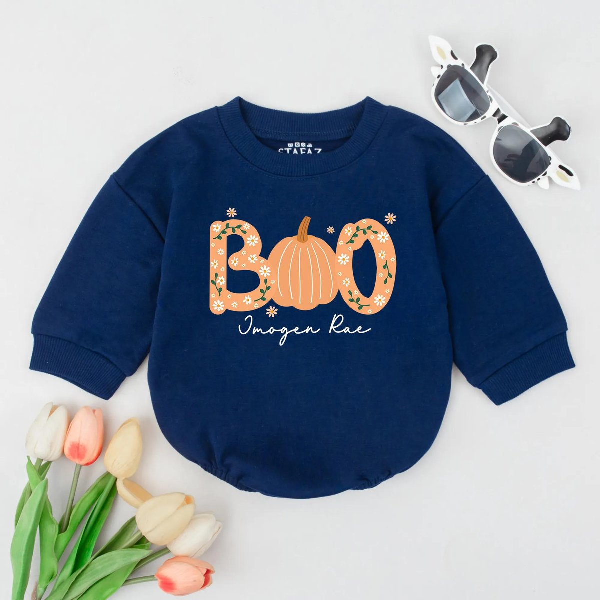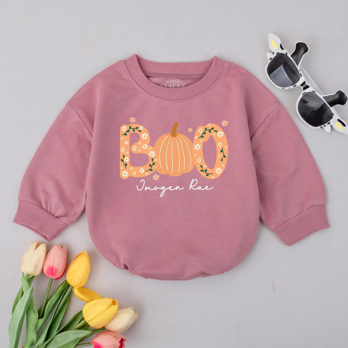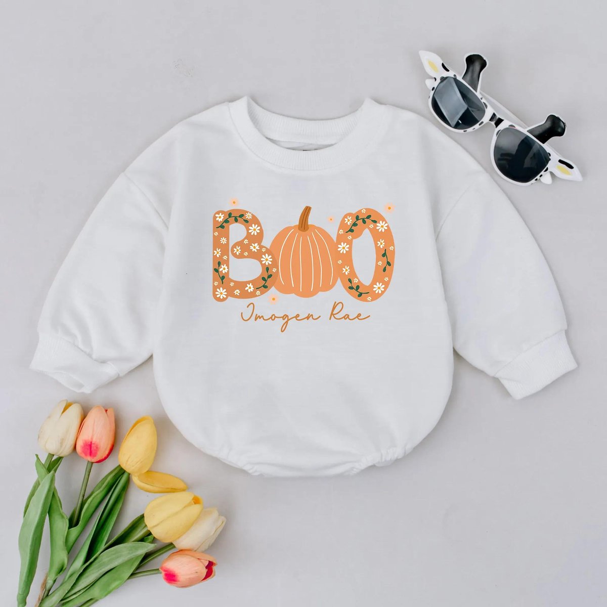 Personalized Boo Pumpkin Bubble Romper Floral Pumpkin Baby Clothes Custom Baby Name Outfit Fall Baby 436