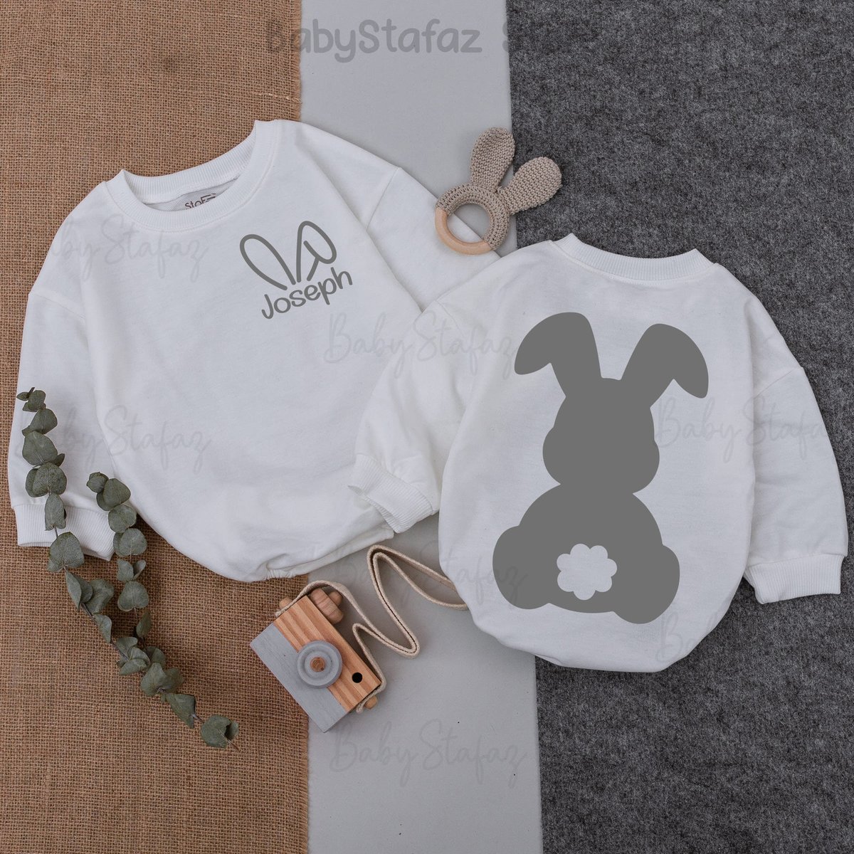 Personalized Bunny Baby Romper Easter Baby Outfit Newborn Bodysuit Baby Shower Gift Custom Baby Sl 166