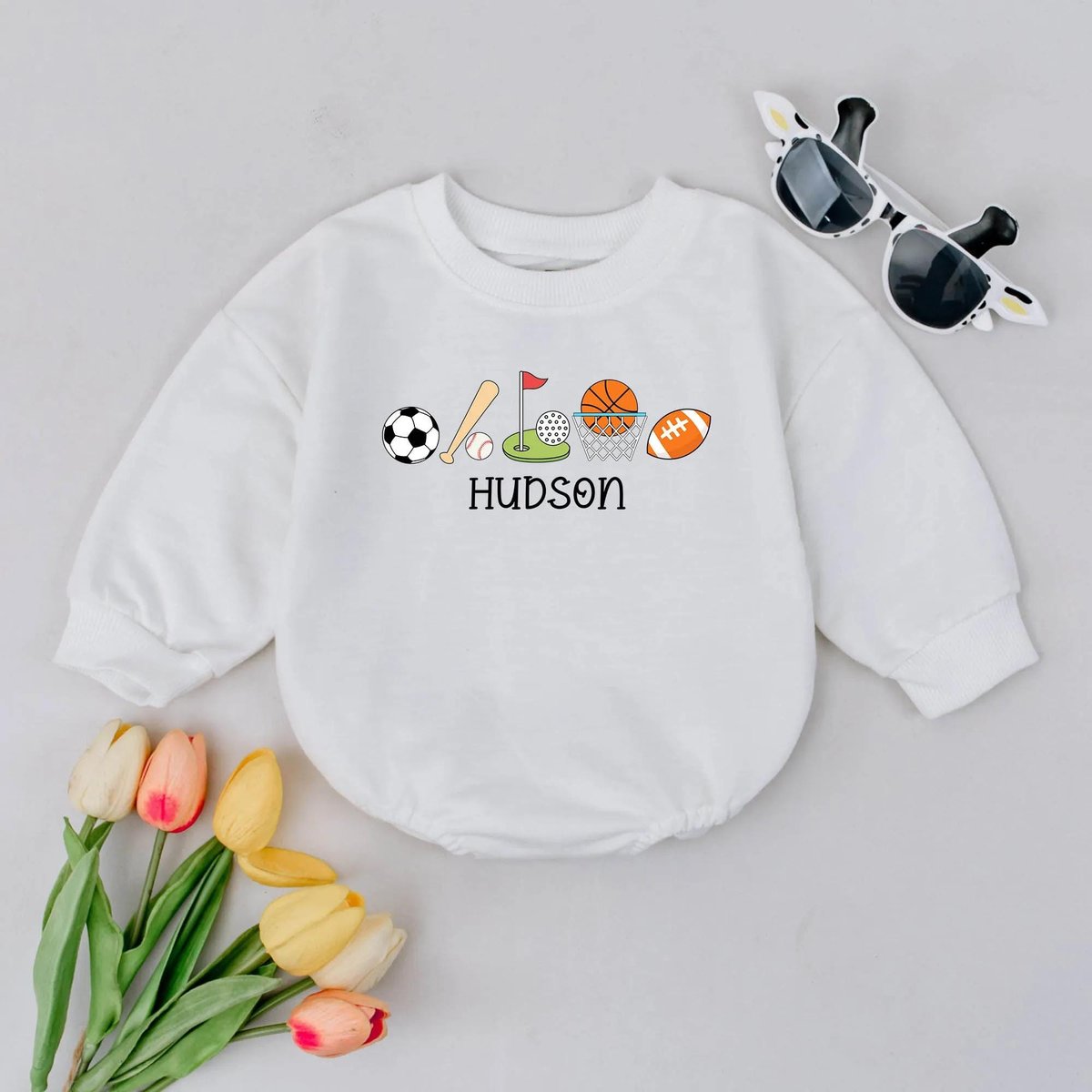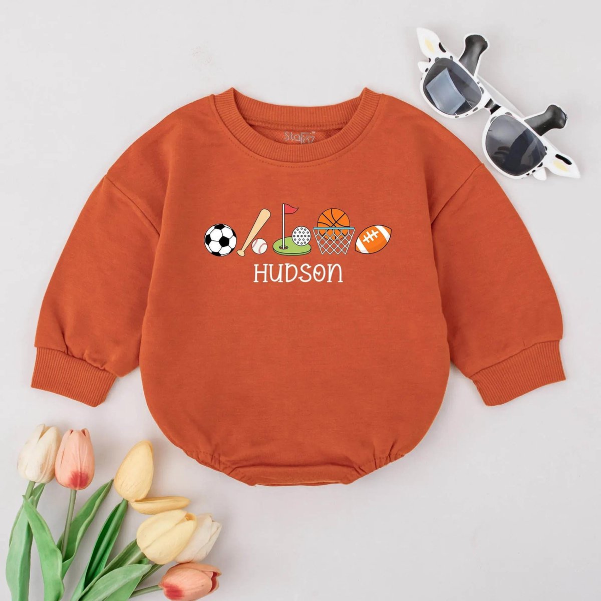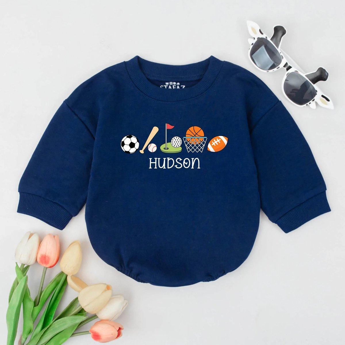 Personalized Boy Sports Bubble Romper Game Day Bodysuit Sports Themed Baby Shower Gift Baby Boy Clot 435