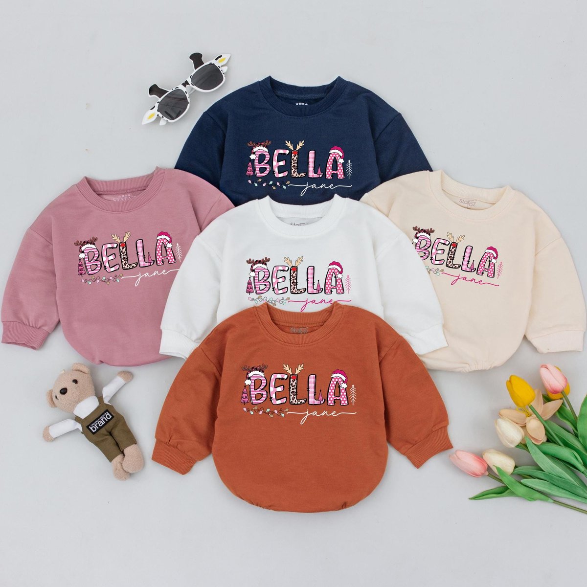 Personalized Christmas Name Bubble Romper 1st Christmas Baby Holiday Outfit Baby Shower Funny Christ 178
