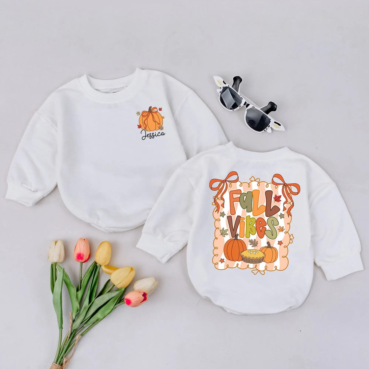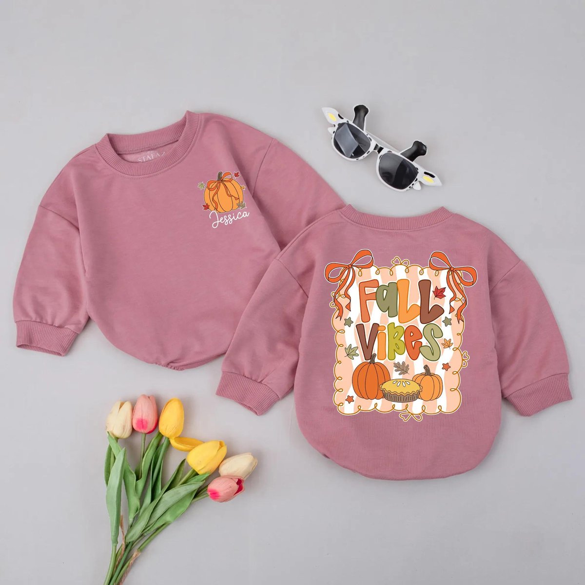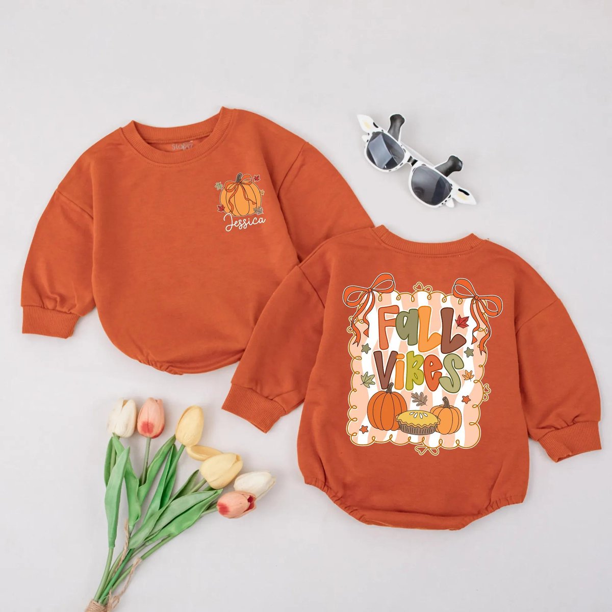 Personalized Cozy Fall Vibes Romper Fall Baby Girl Outfit Customized Thanksgiving Bodysuit Pumpkin B 435
