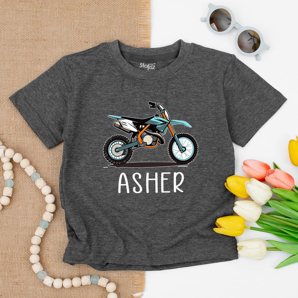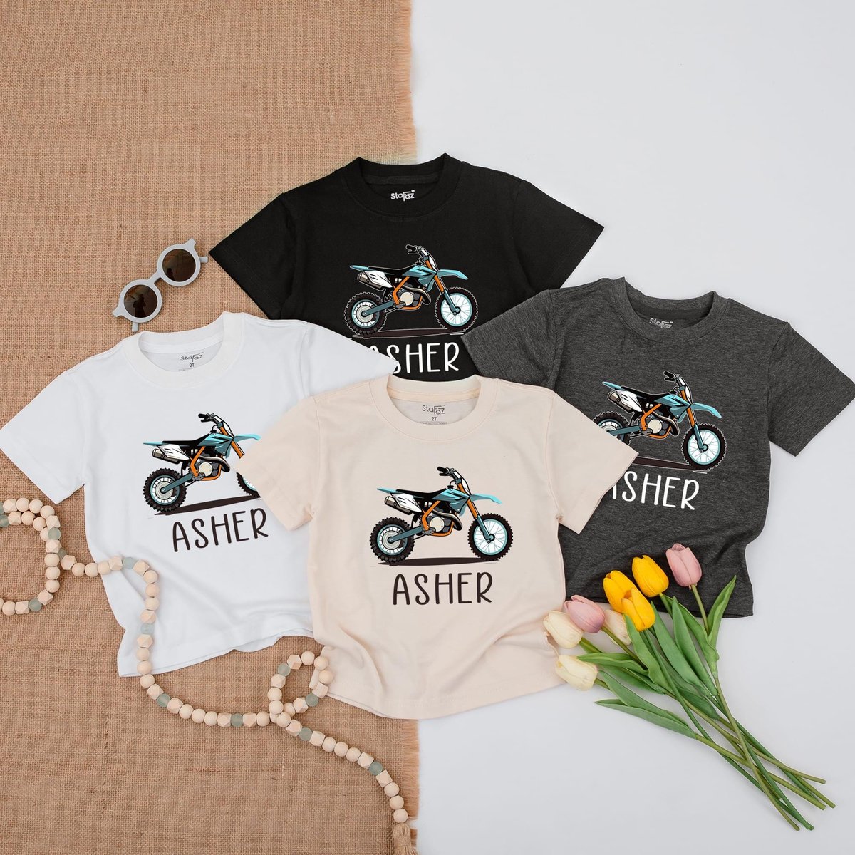 Personalized Dirt Bike Toddler T shirt Custom Motorcycle Wheelie Kids Name Tee Racing Shirt Off Road 181