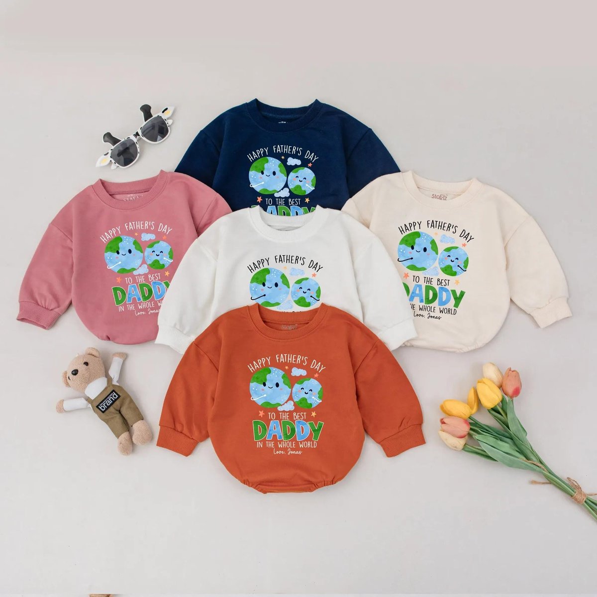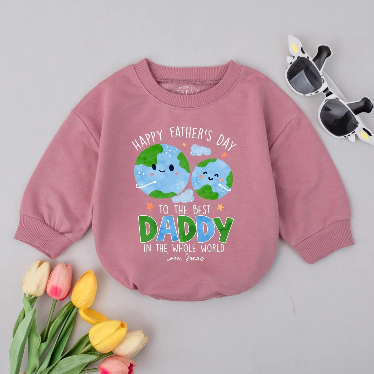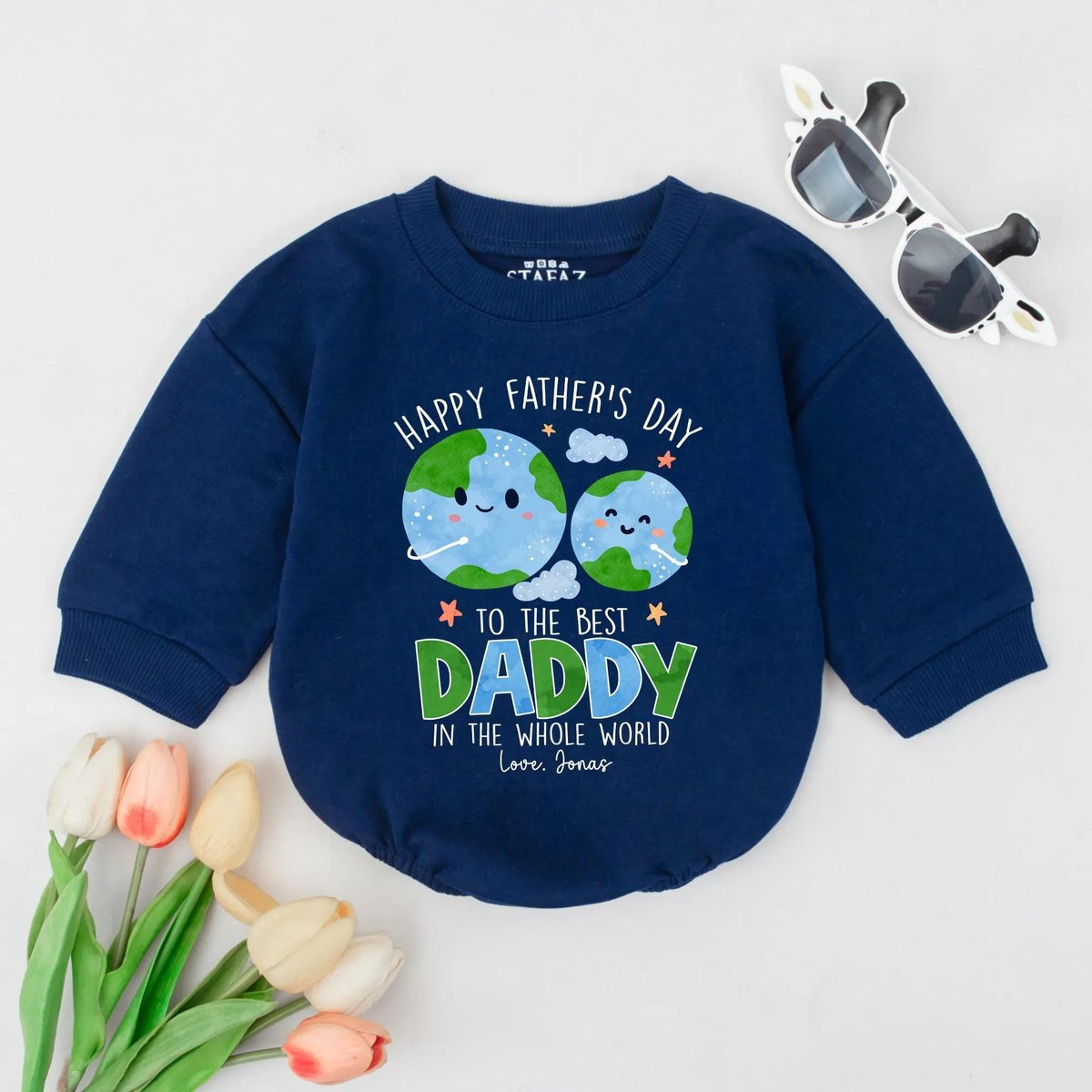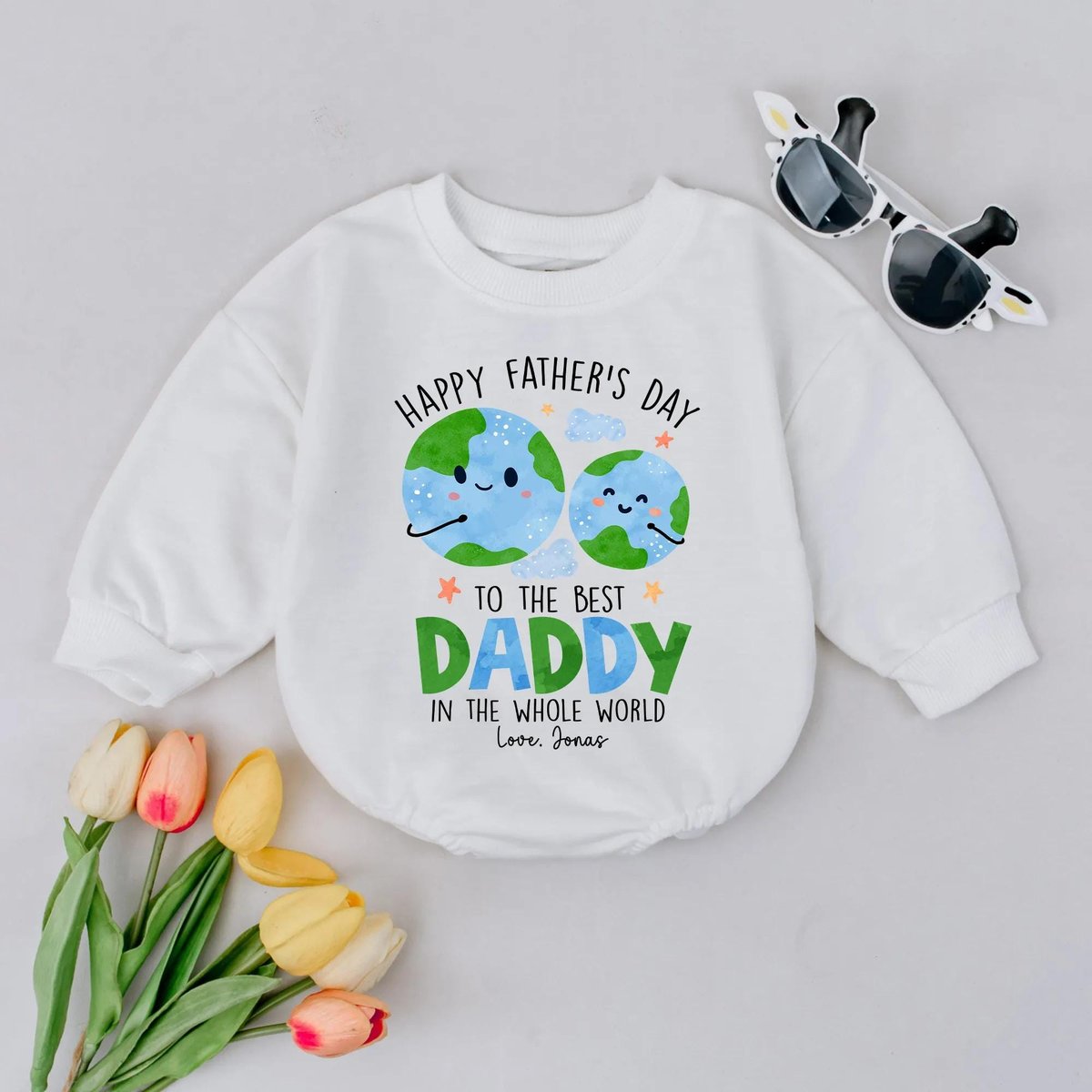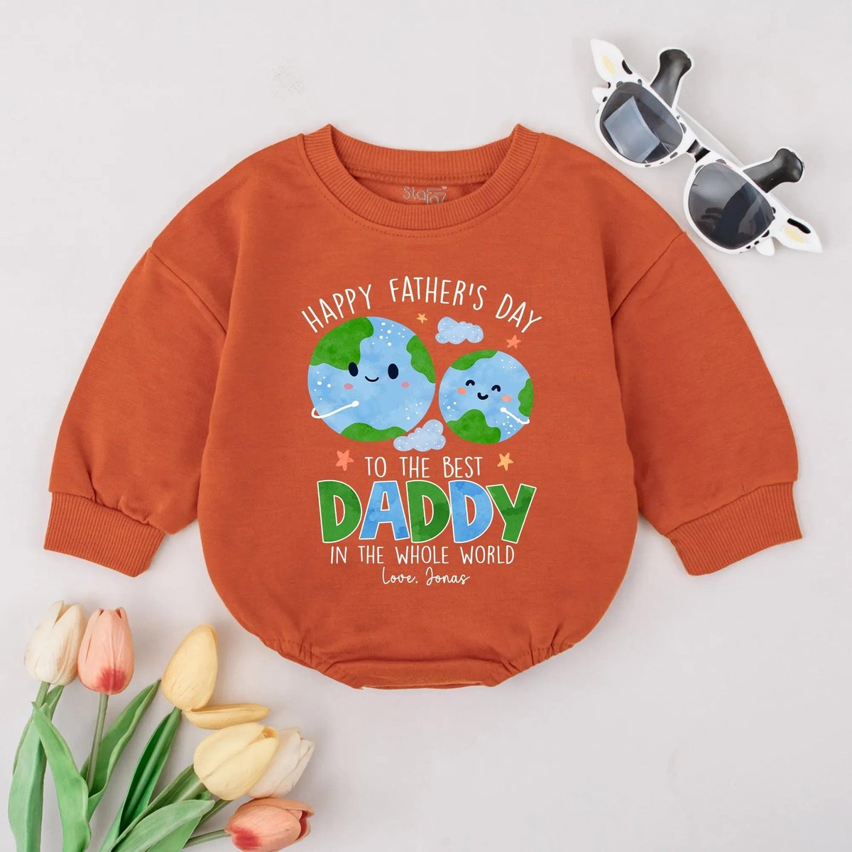 Personalized Fathers Day Bubble Romper Best Daddy in the World Bodysuit Cute Fathers Day Outfit Cust 431