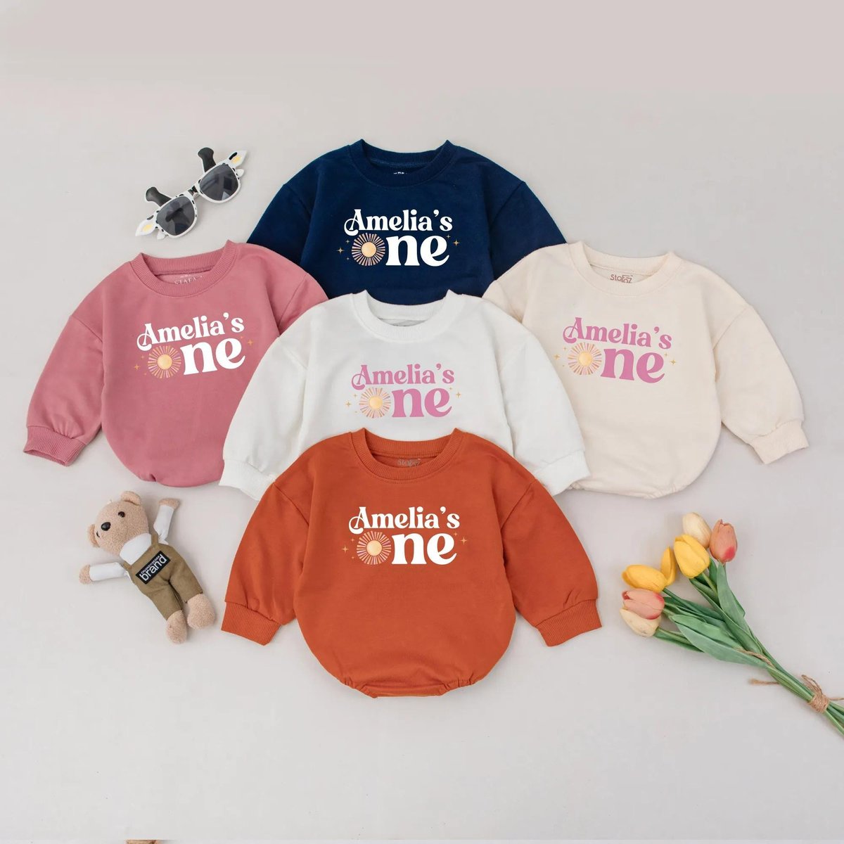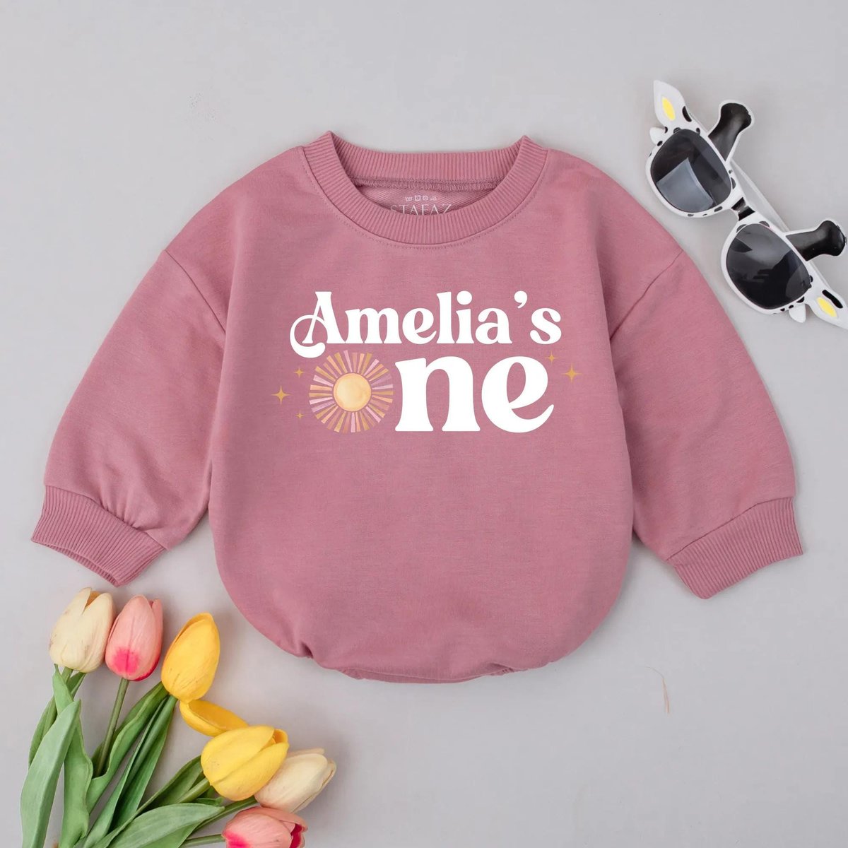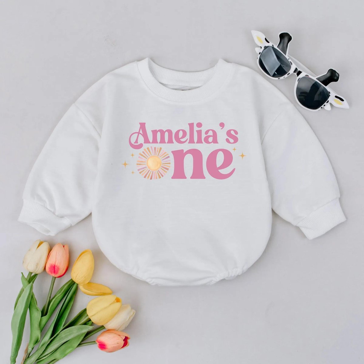 Personalized First Birthday Romper Custom Name Baby Girl 1st Birthday Outfit Pink Sun Baby Clothes 1 431