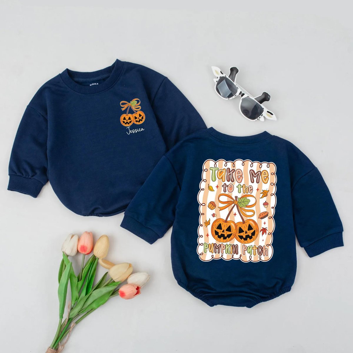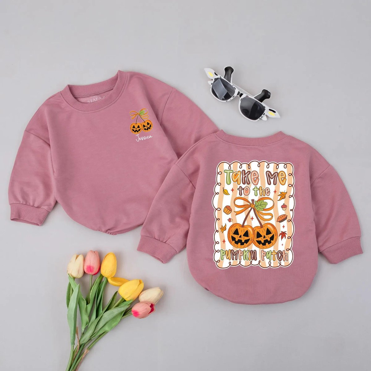 Personalized Halloween Pumpkin Bubble Romper Take Me to The Pumpkin Patch Outfit Fall Baby Gift Pump 435