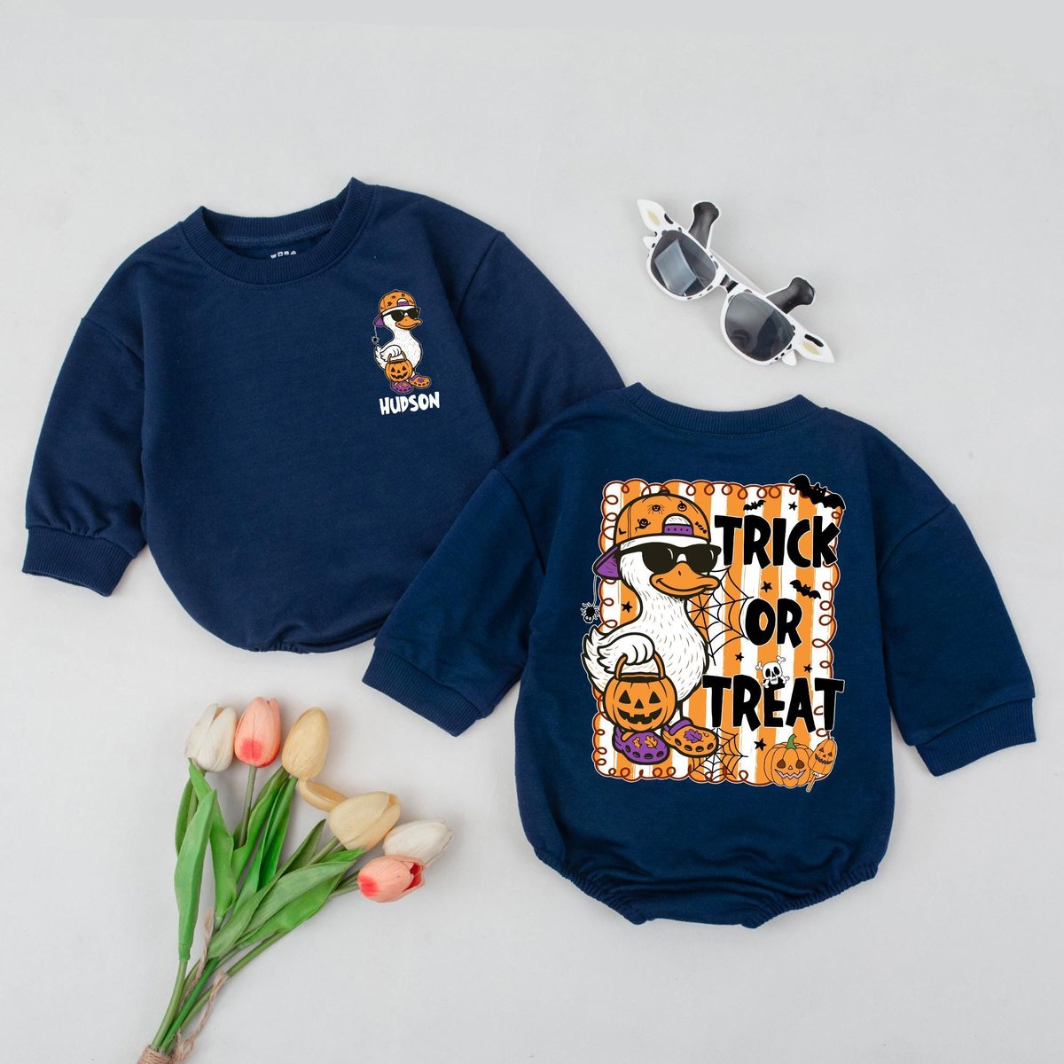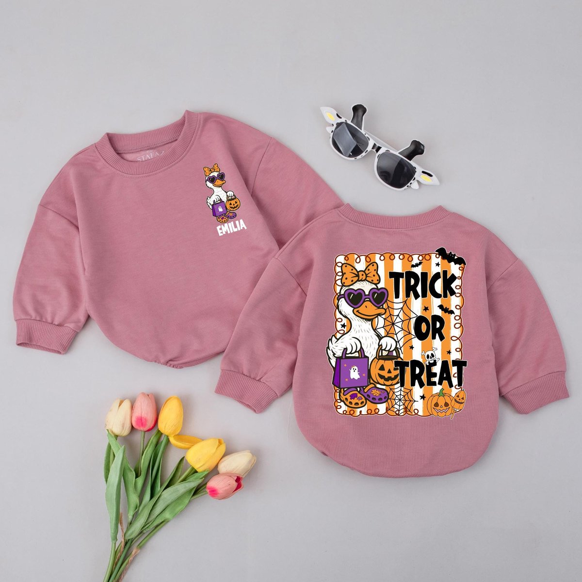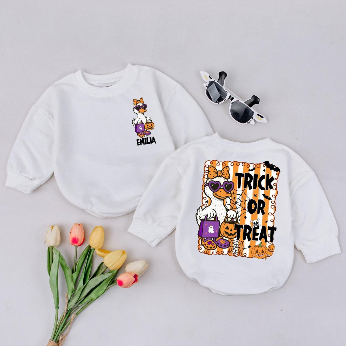 Personalized Halloween Trick or Treat Bubble Romper Silly Goose Halloween Bodysuit Pumpkin Ghost Bab 435