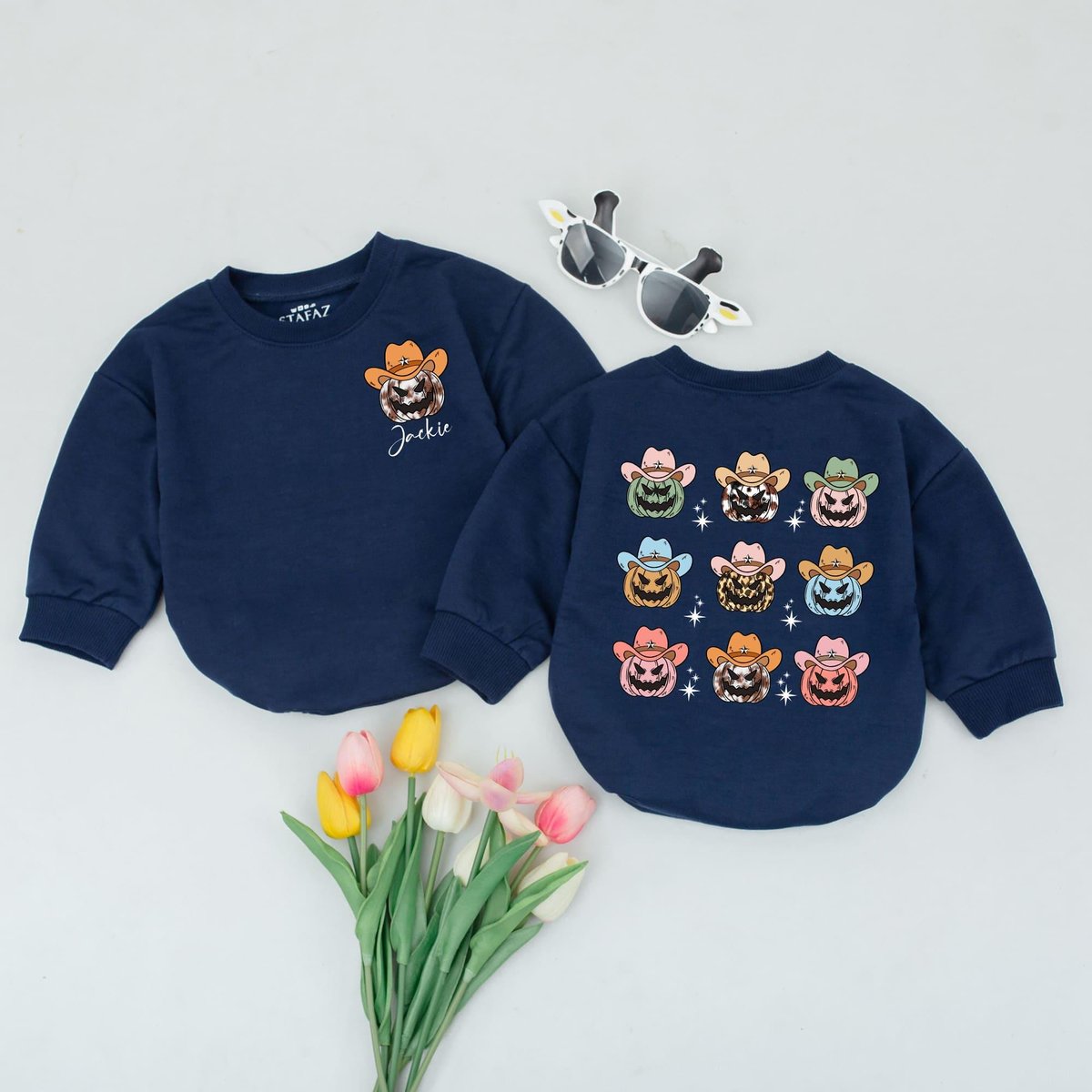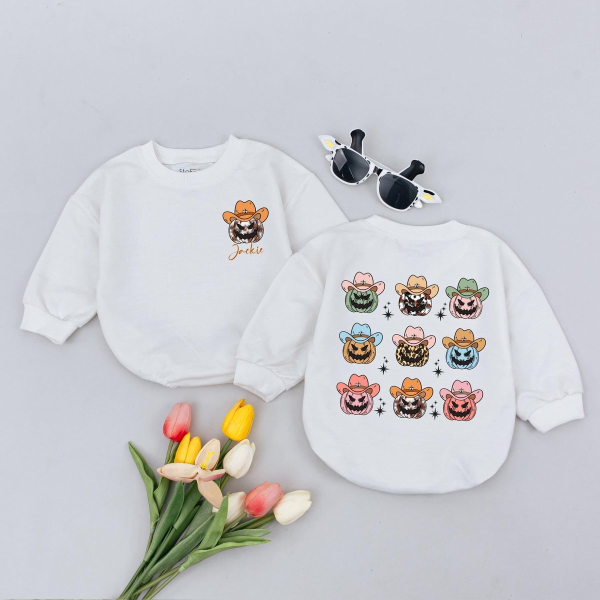 Personalized Howdy Pumpkin Baby Romper Newborn Bubble Romper Baby Halloween Bodysuit First Halloween 175