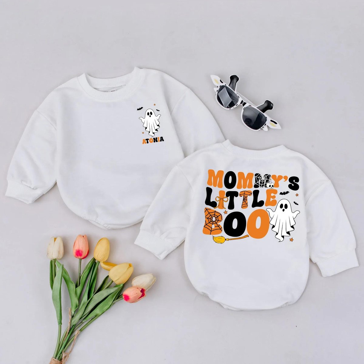 Personalized Mommy’s Little Boo Romper First Halloween Bodysuit Custom Name Ghost Baby Clothes Fall 436