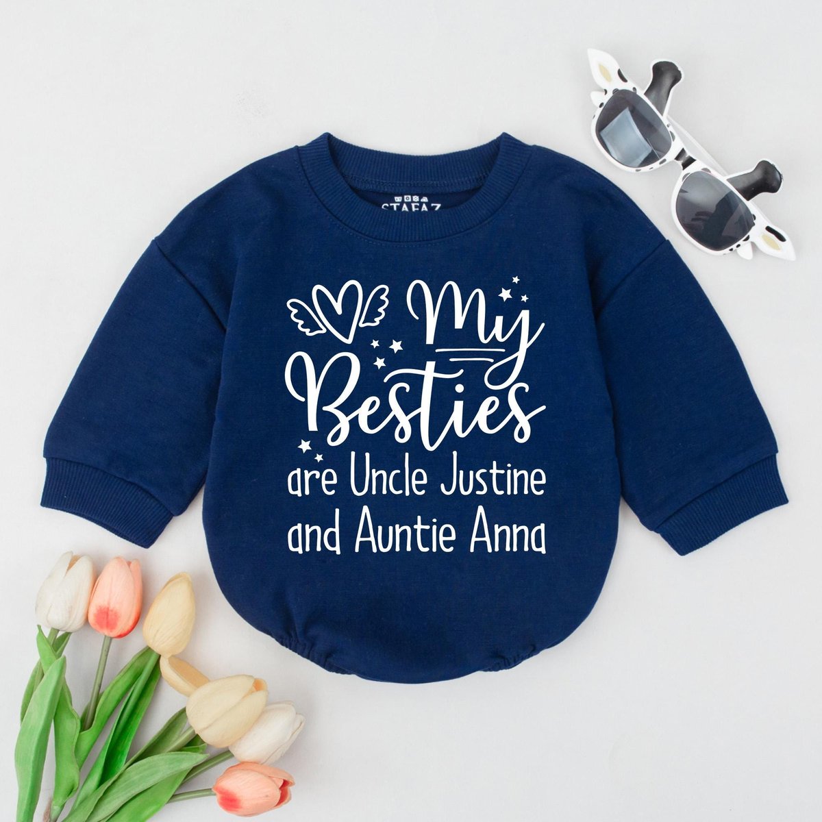 Personalized My Besties Are Auntie And Uncle Name Baby Romper Custom Uncle And Aunt Toddler Outfit G 189