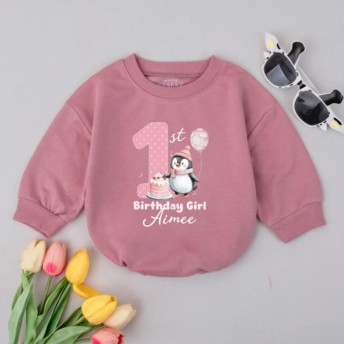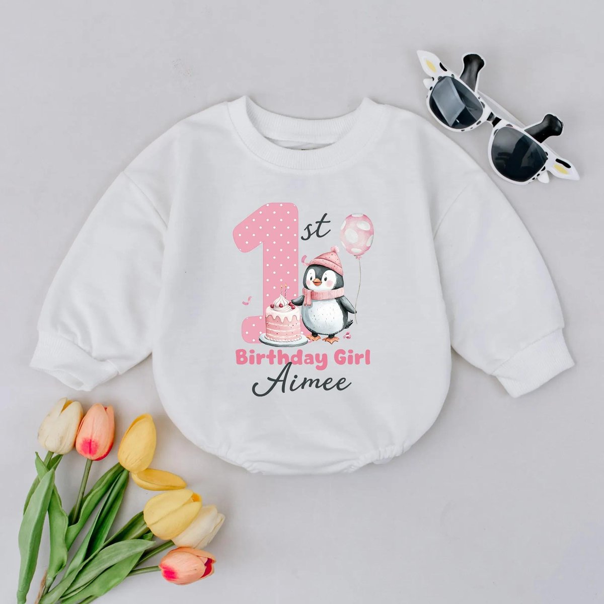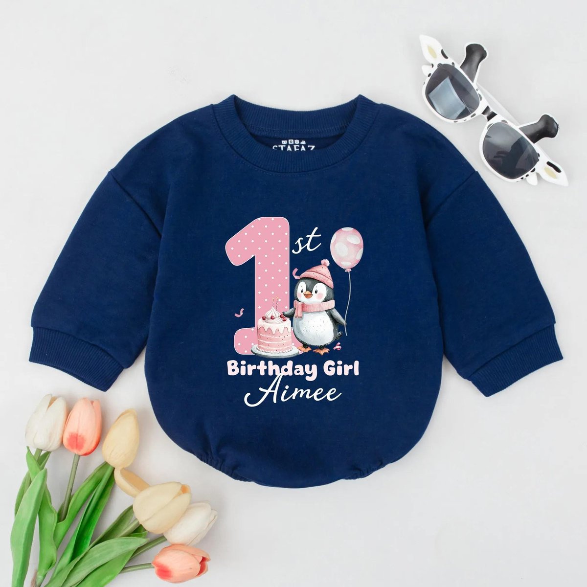 Personalized Name 1st Birthday Girl Baby Romper Penguin Baby Girl Outfit Soft Cotton Baby Apparel Pe 430
