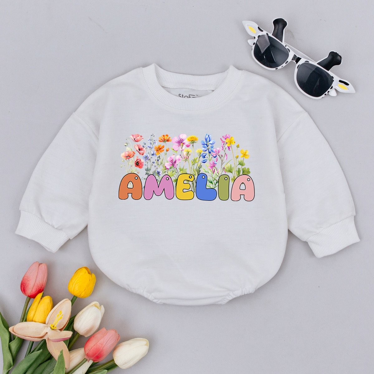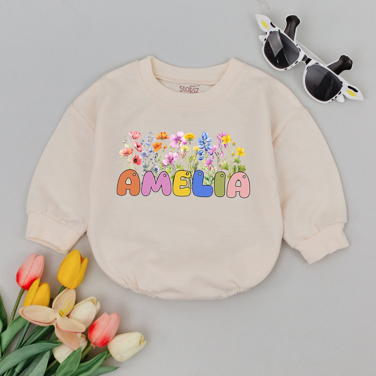 Personalized Name Bubble Baby Romper vintage floral infant coming home outfit baby shower gift Littl 172