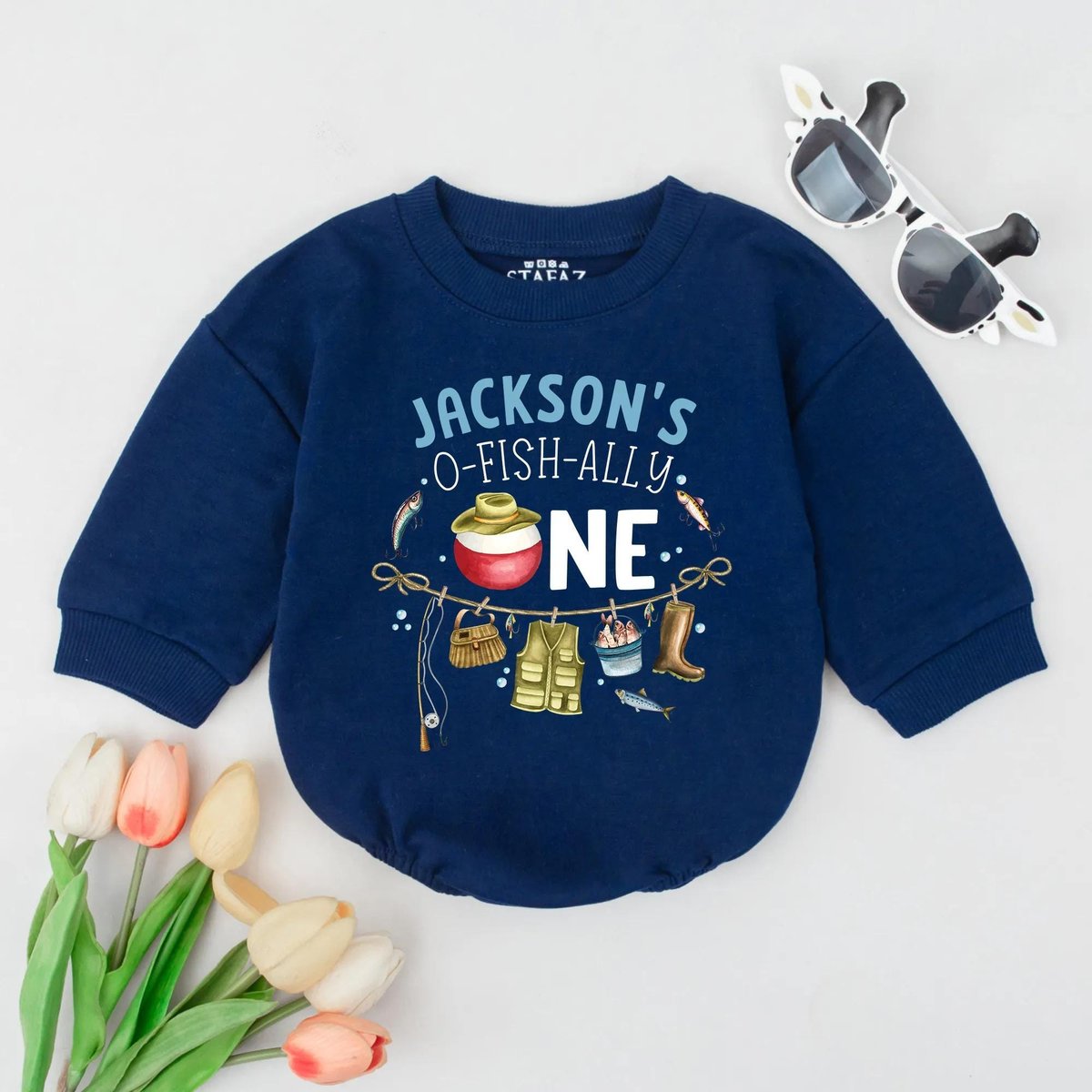 Personalized O Fish Ally One Romper Baby Boy Fishing Birthday Outfit Custom Name 1st Birthday Clothe 436