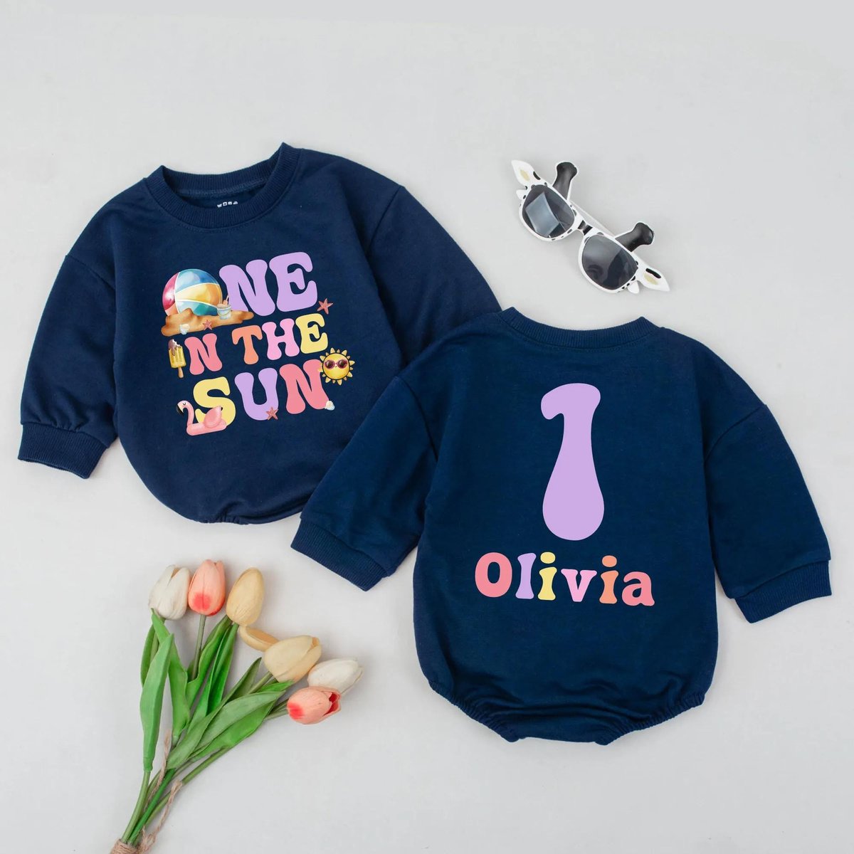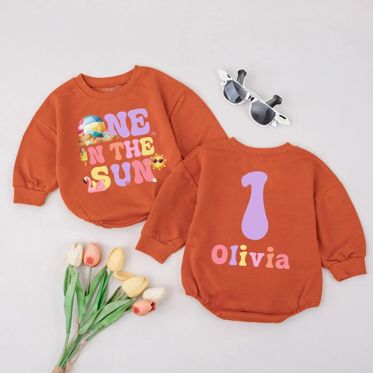 Personalized One in the Sun Bubble Romper First Birthday Outfit Summer First Trip Baby Clothes Gende 431