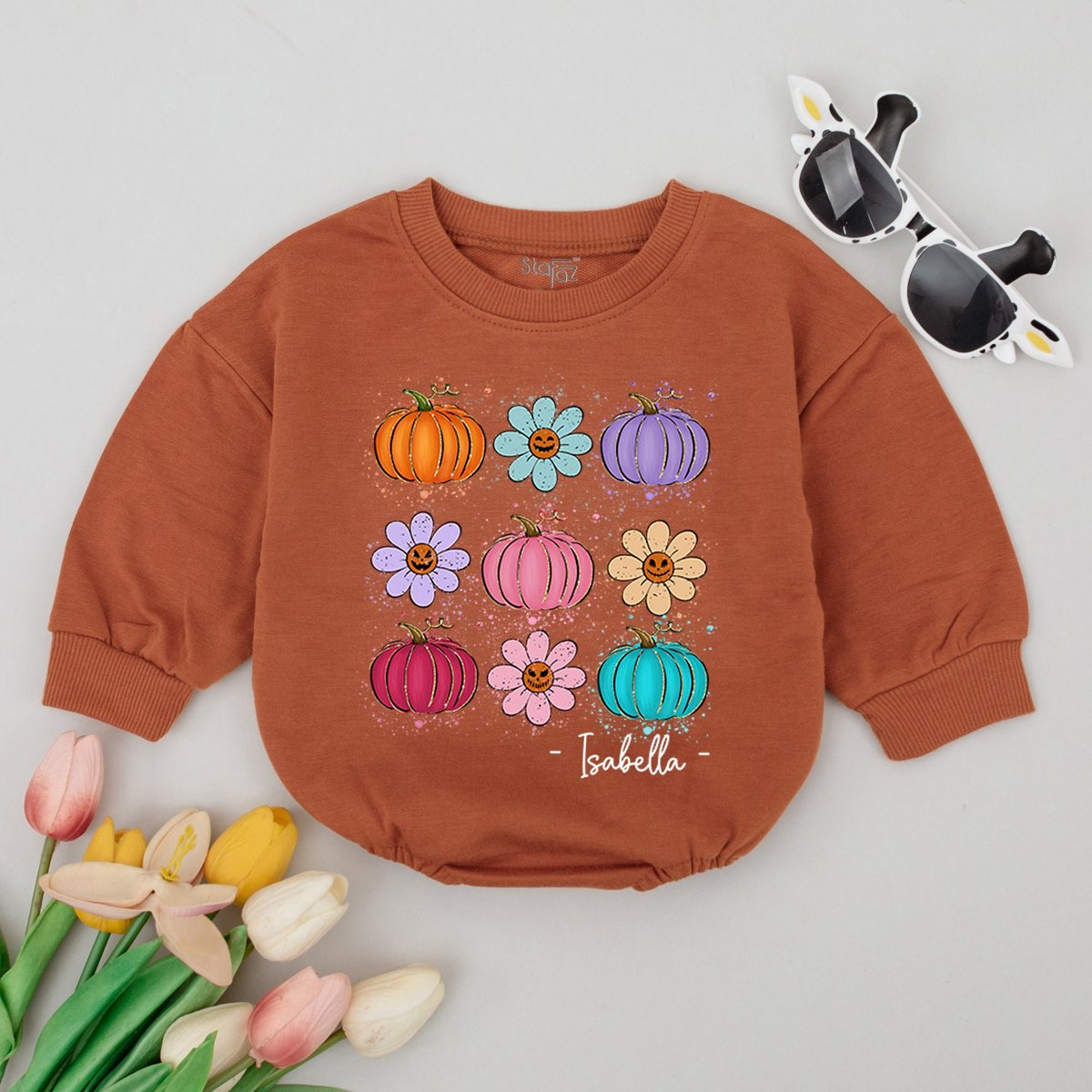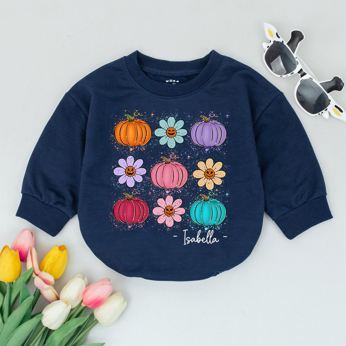 Personalized Pumpkin Season Baby Romper Retro Cute Vintage infant coming home outfit baby shower gif 172