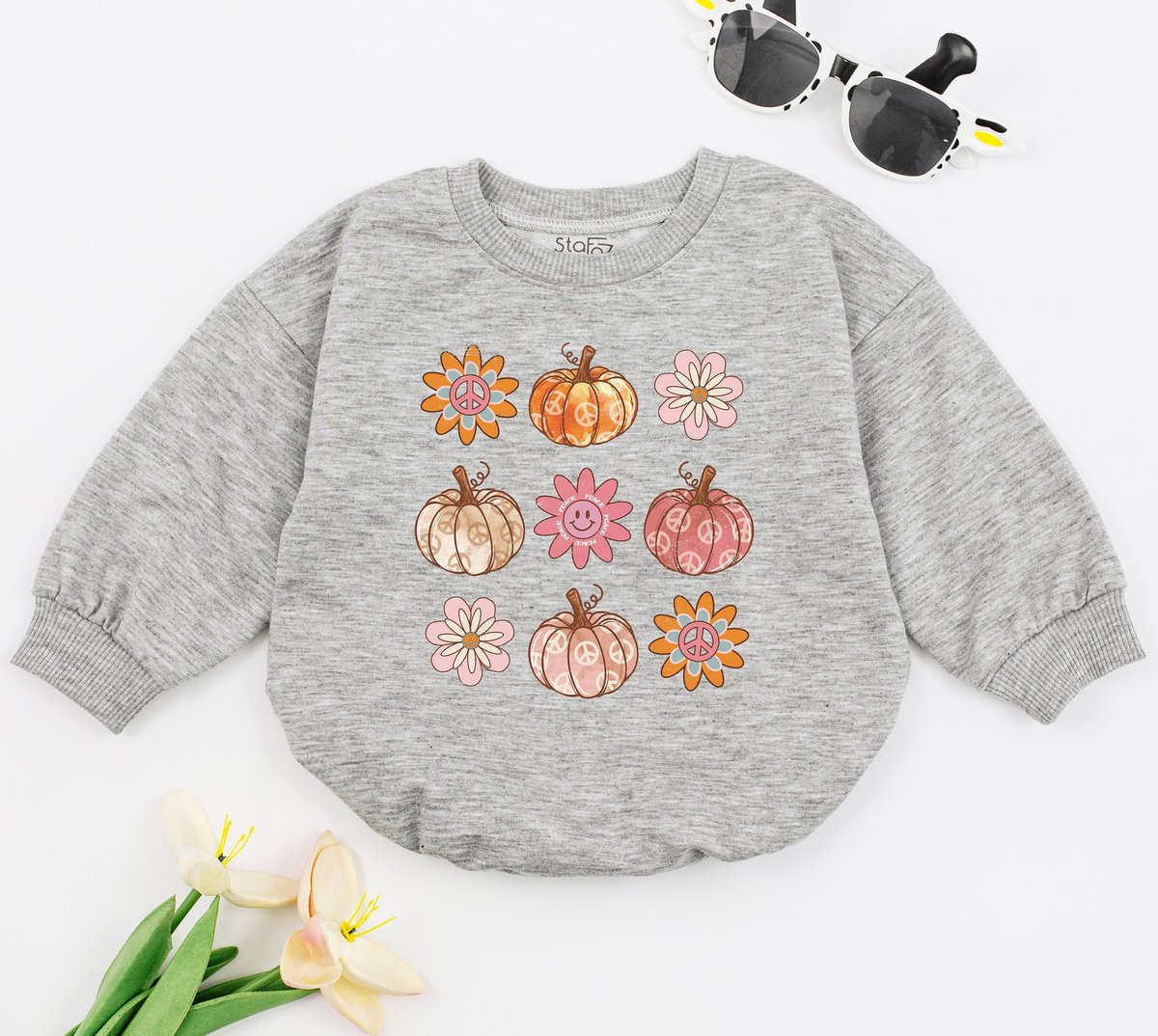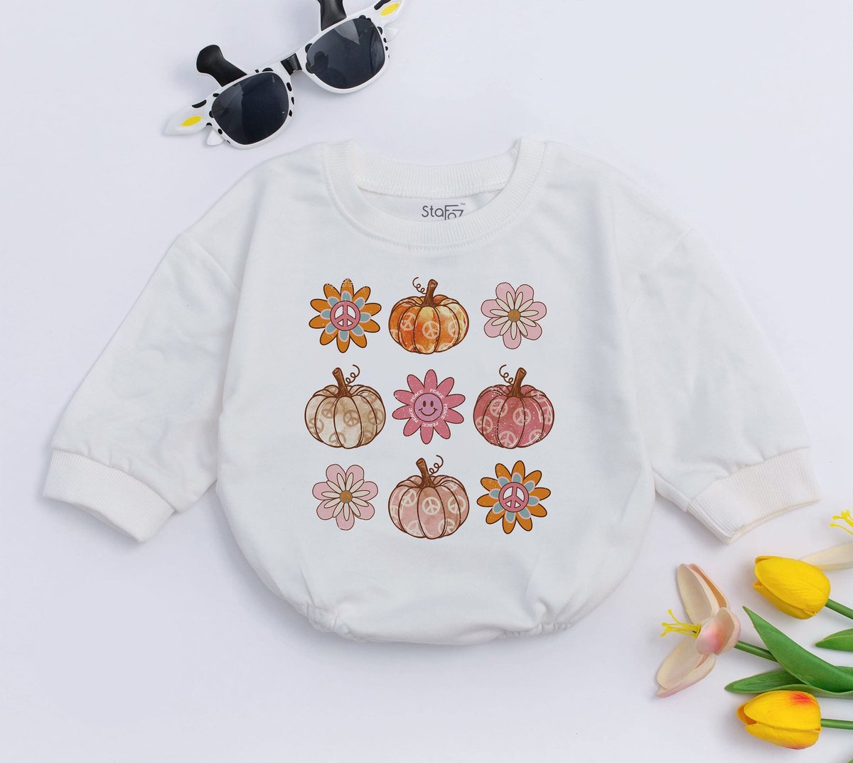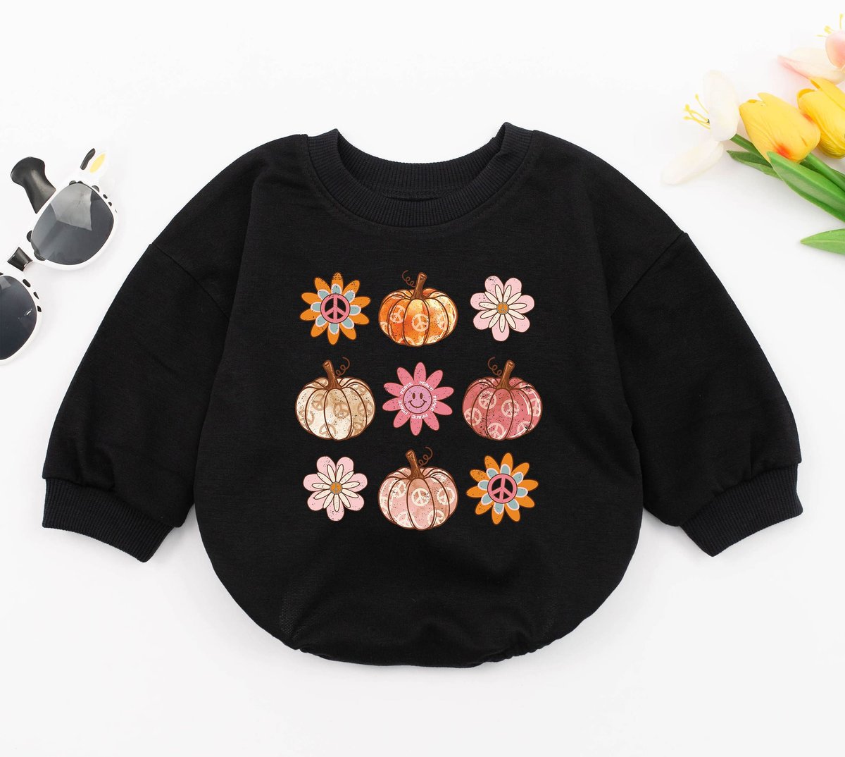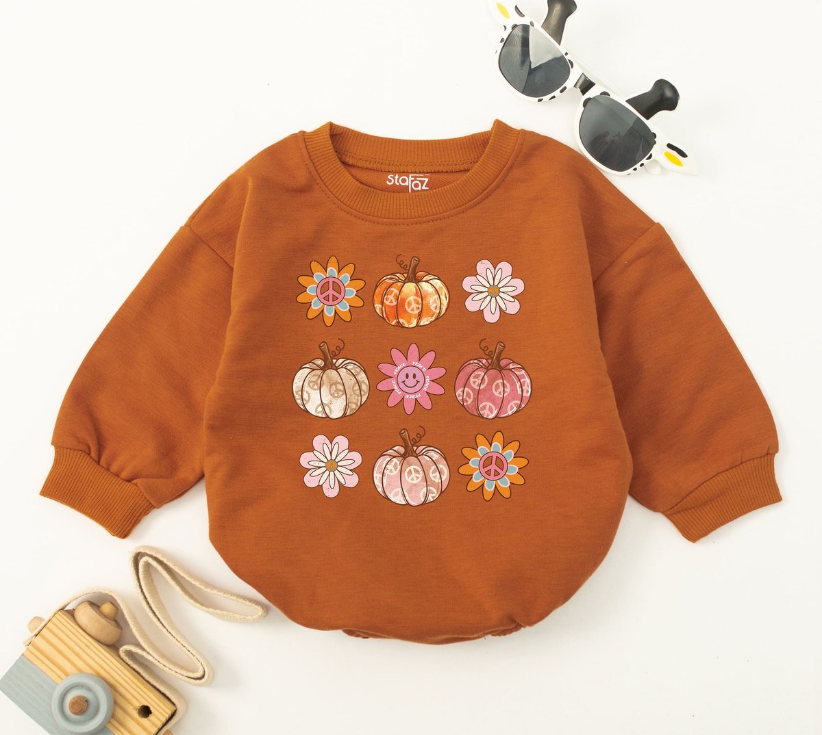 Pumpkin Season Baby Romper Youth Fall Tee Retro Boho Cute Vintage Bodysuit Smile Faces Pumpkin Hippi 150