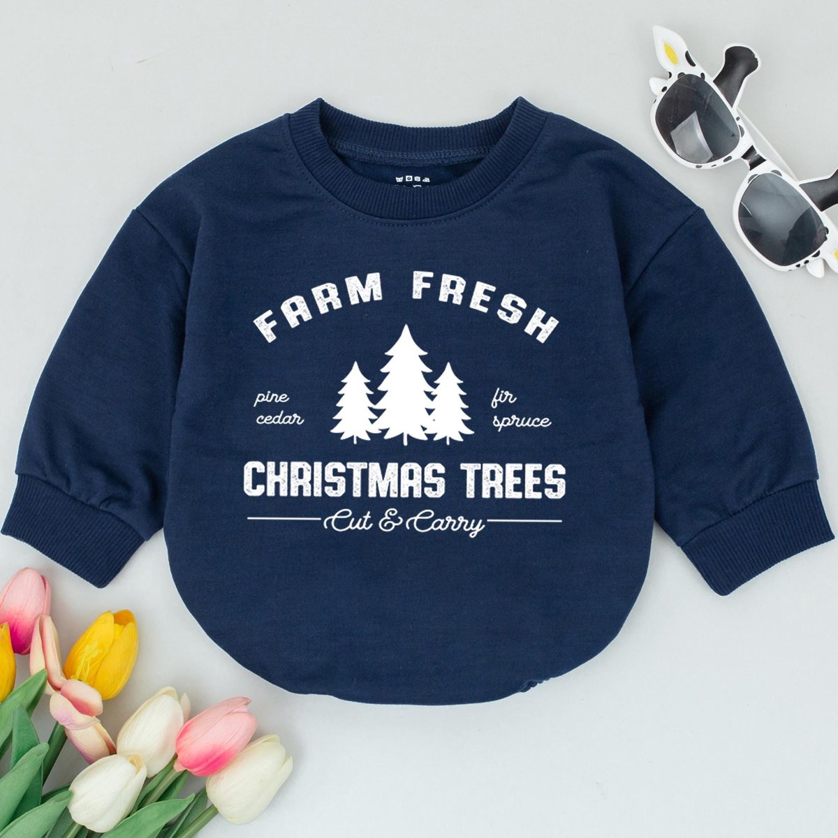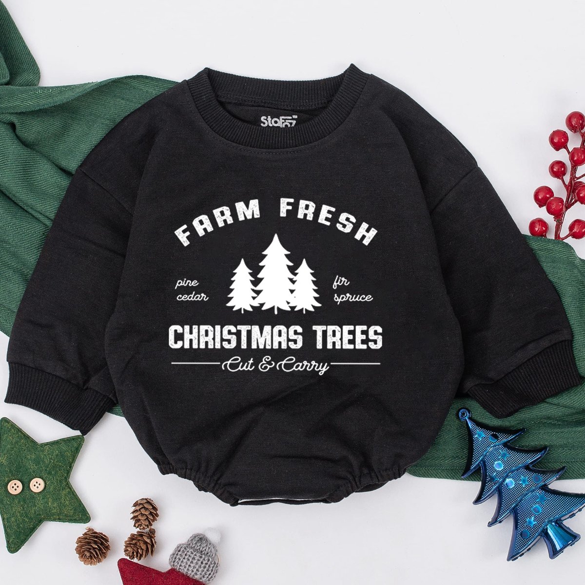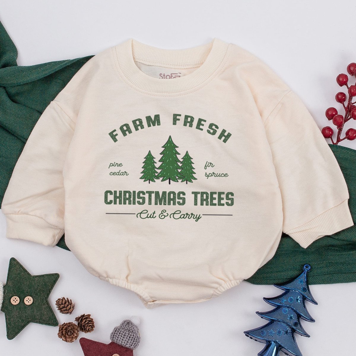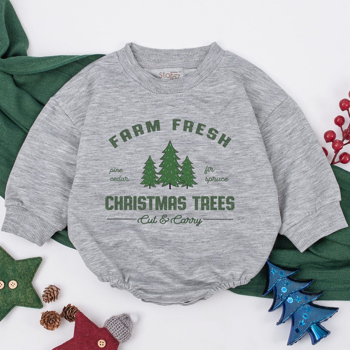 Tree Farm Christmas baby Outfit Farm Fresh Christmas Trees Baby Romper Holiday Outfit Infant Clothes 160