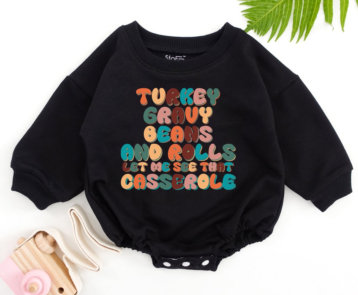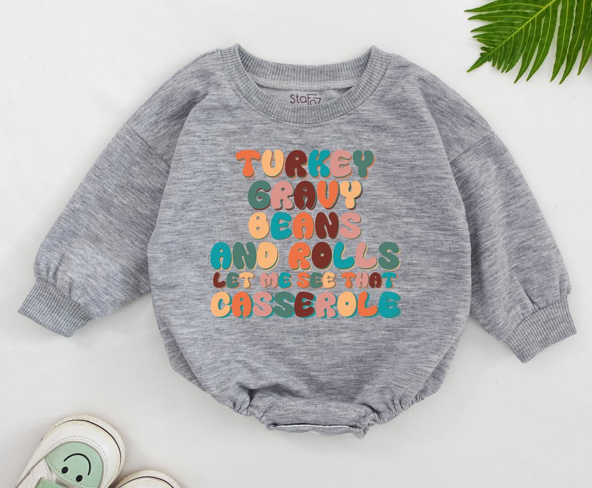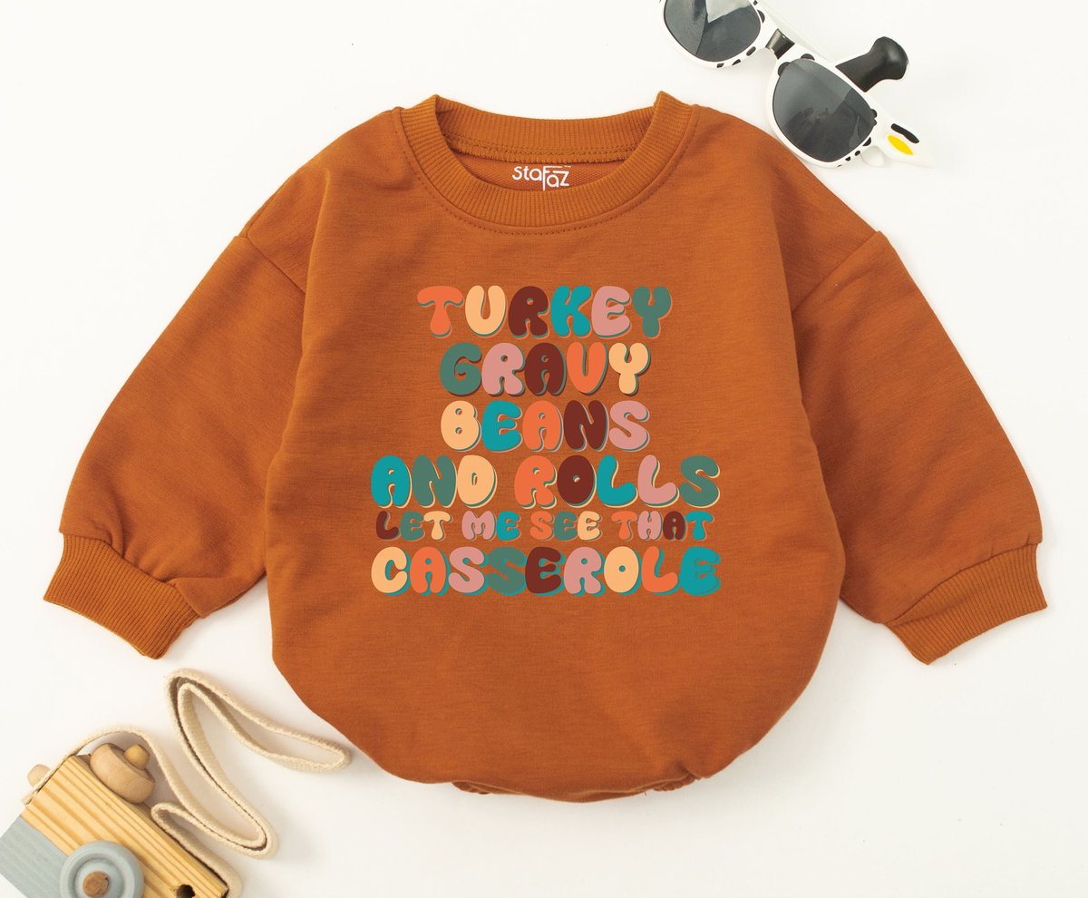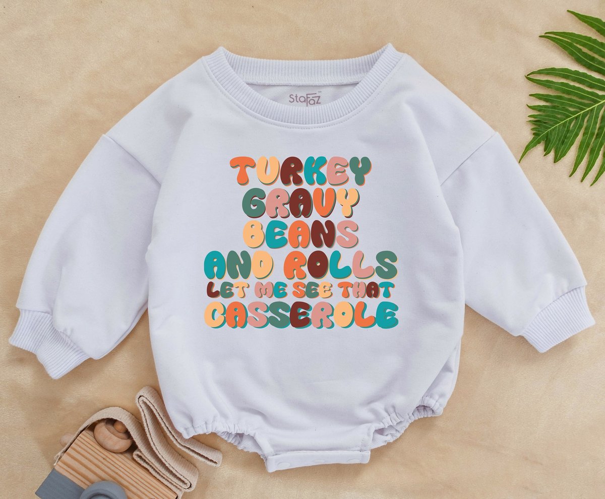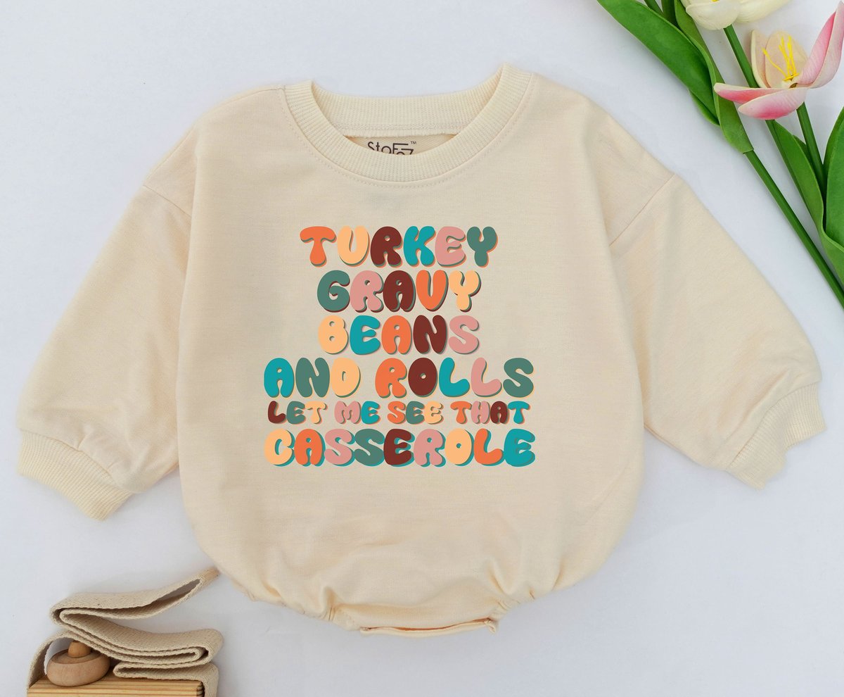 Turkey Gravy Beans and Rolls Let Me See That Casserole Baby Romper Funny Song Retro Thanksgiving Bab 154
