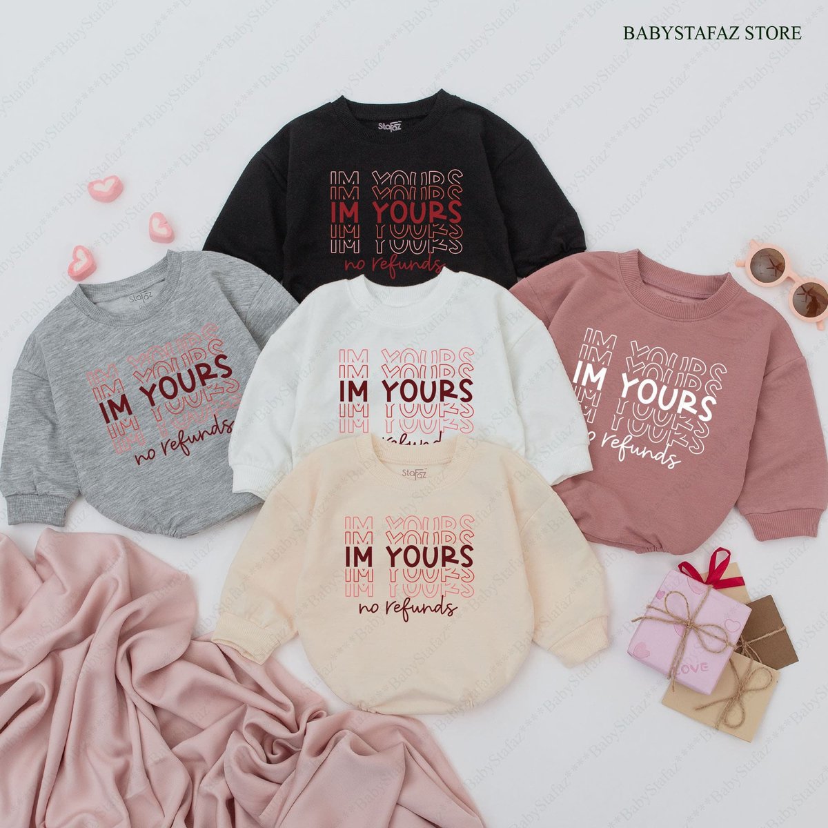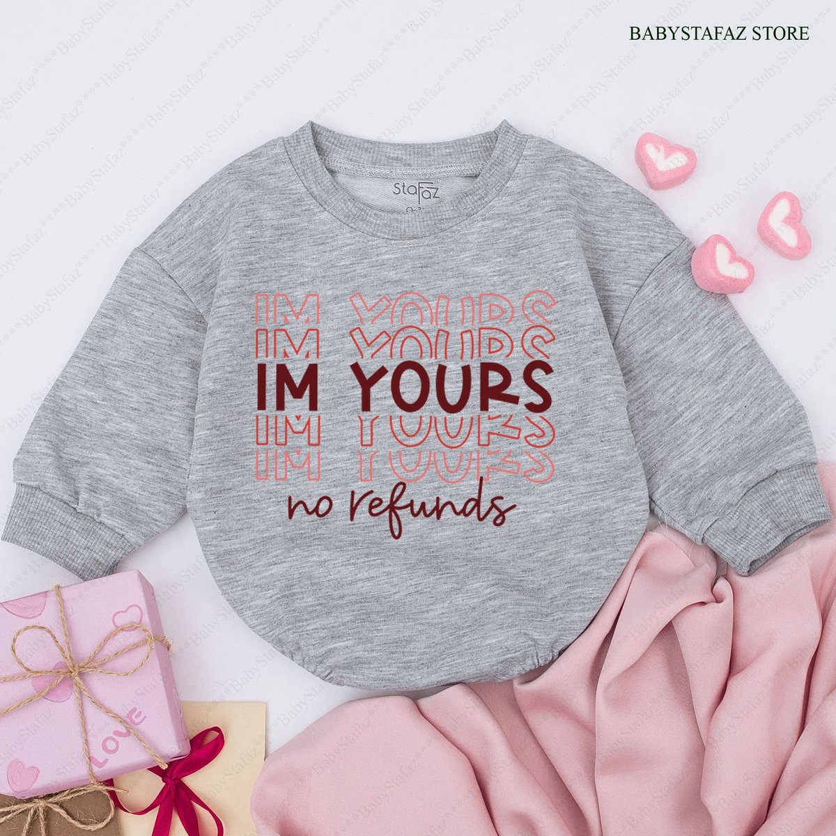 Valentines day baby Outfit I’m Yours No Refunds Baby Romper Funny Valentines day baby girl outfit V 165