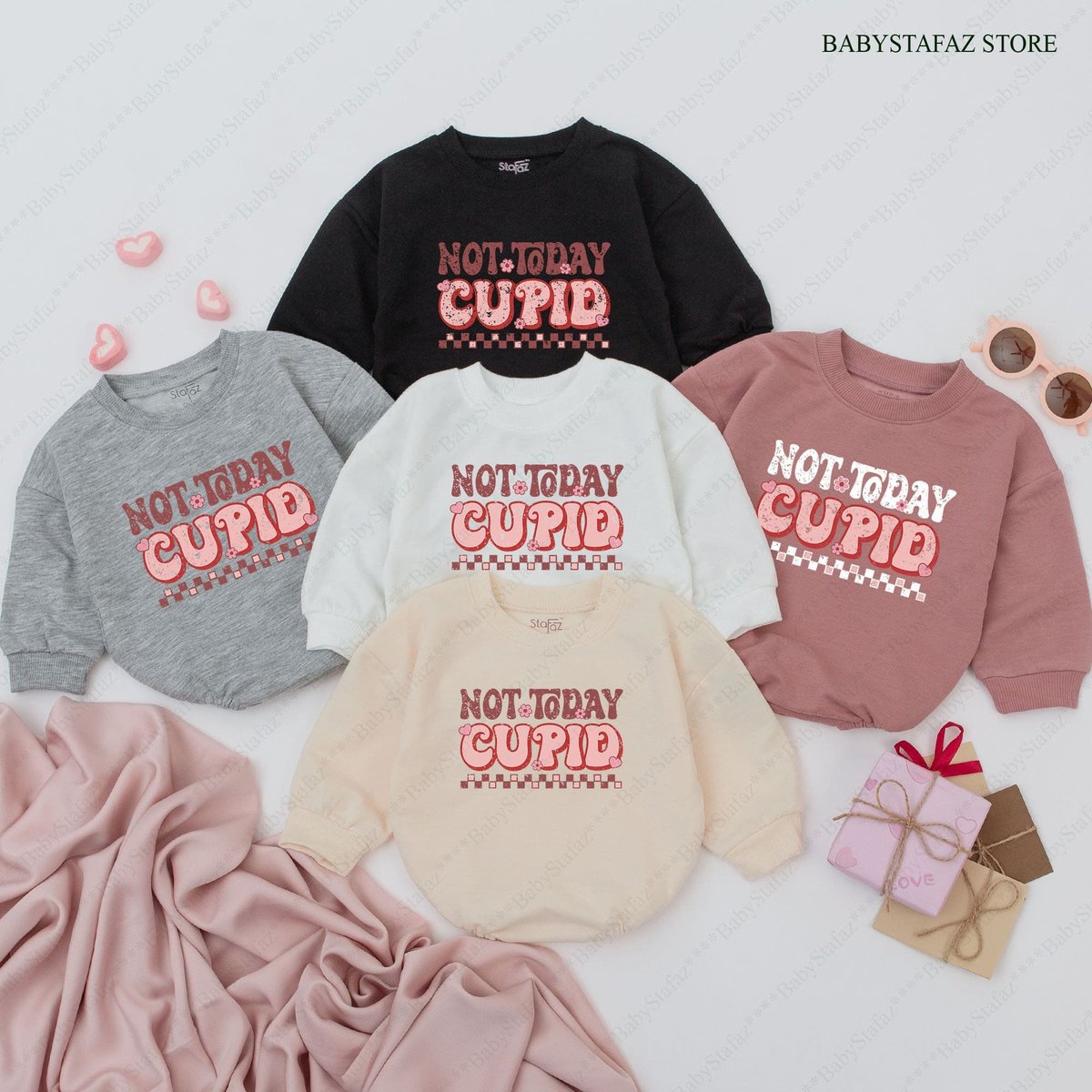 Valentines day baby Outfit Not Today Cupid Baby Romper Funny Valentines day baby girl outfit Valenti 163