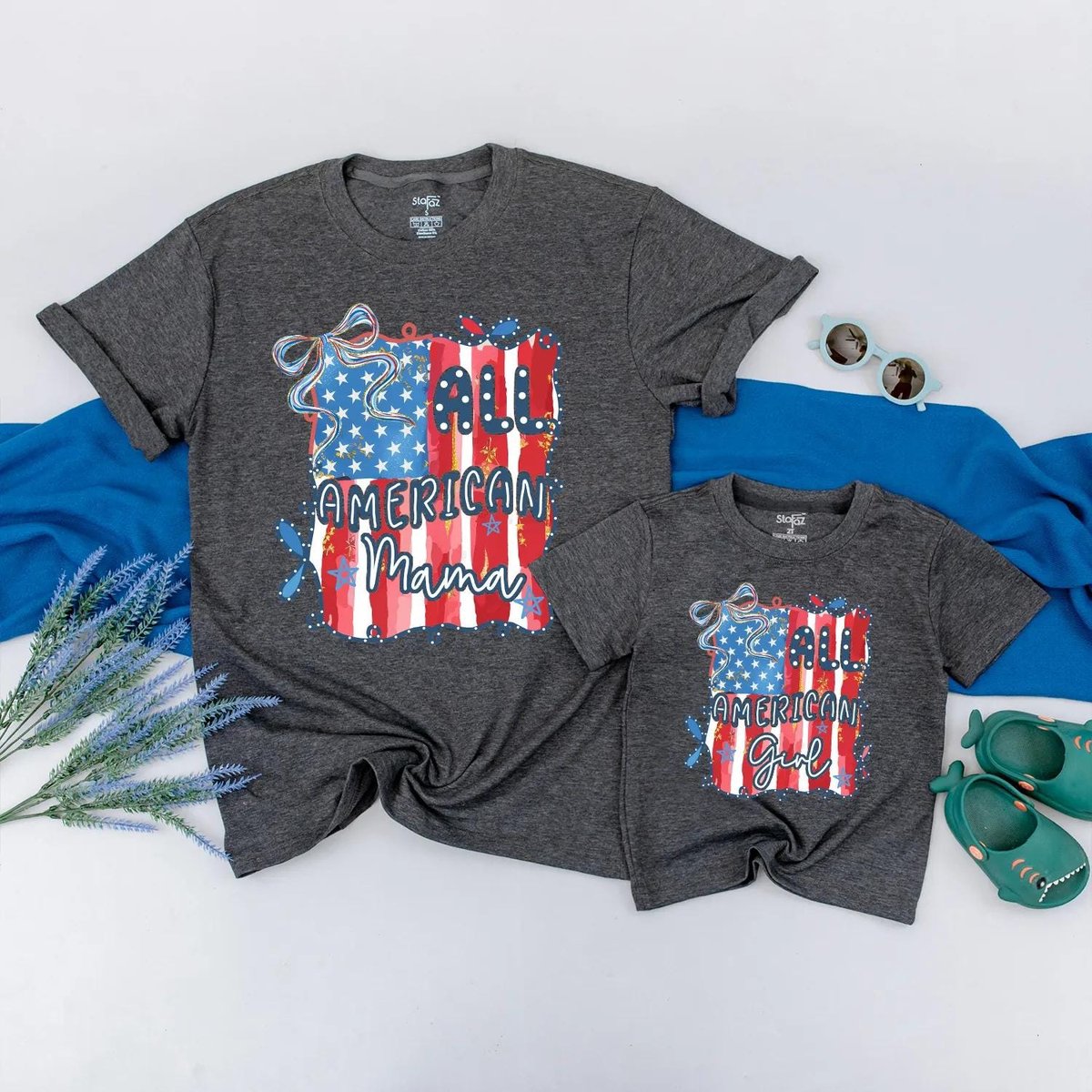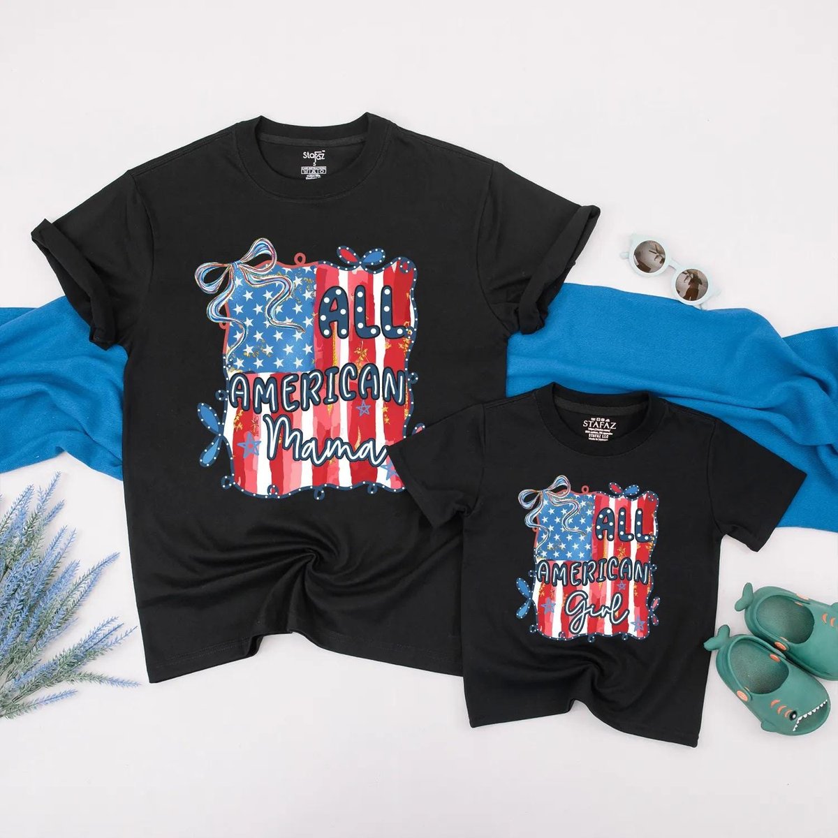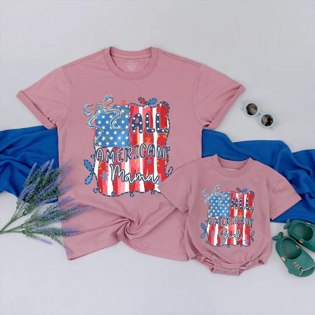 All American Mama and Girl Matching Shirt Custom Bow 4th of July Baby Romper Personalized Independen 431