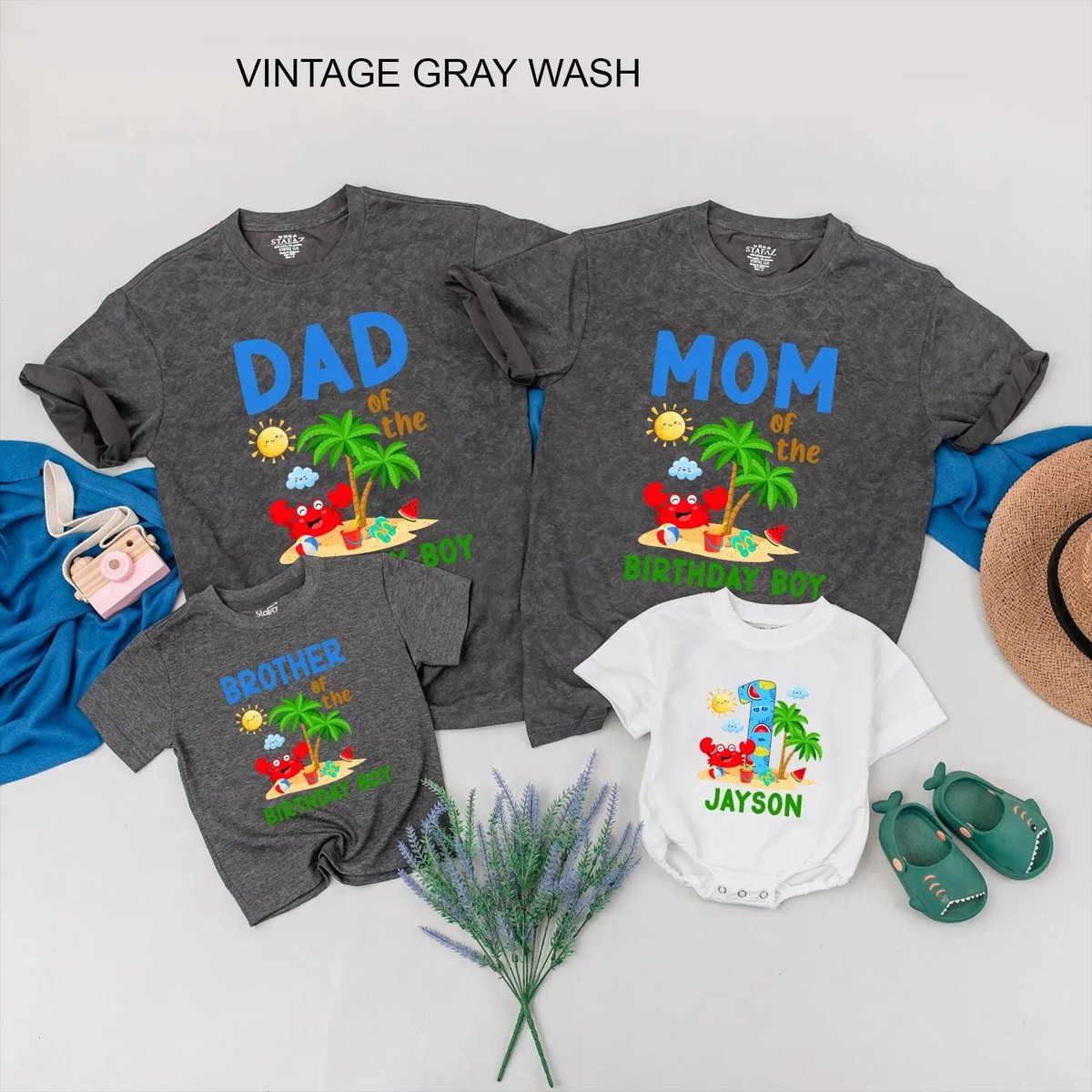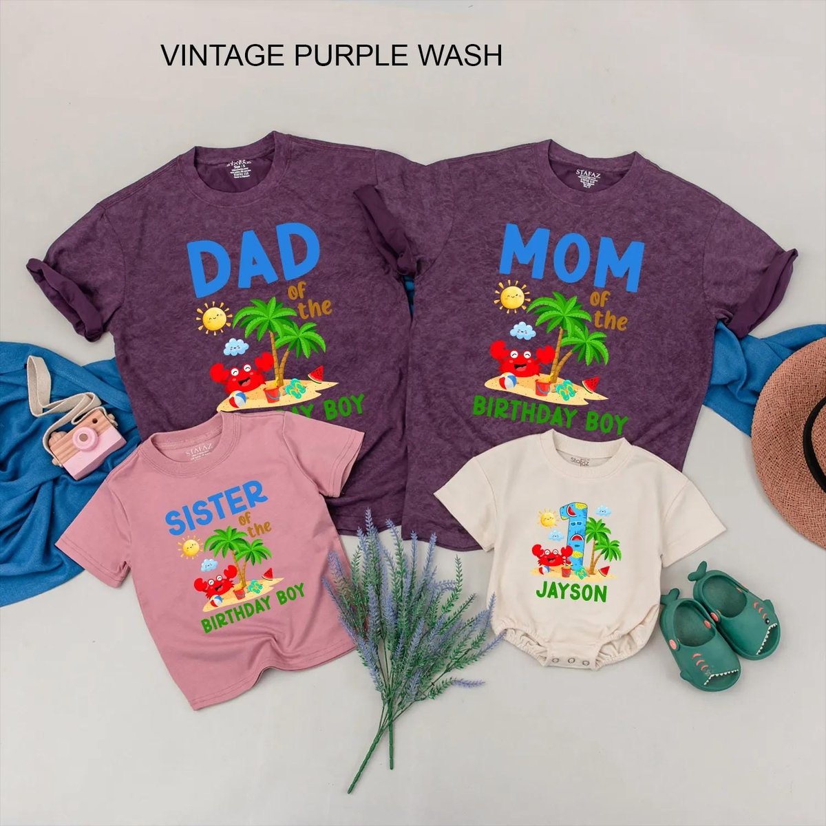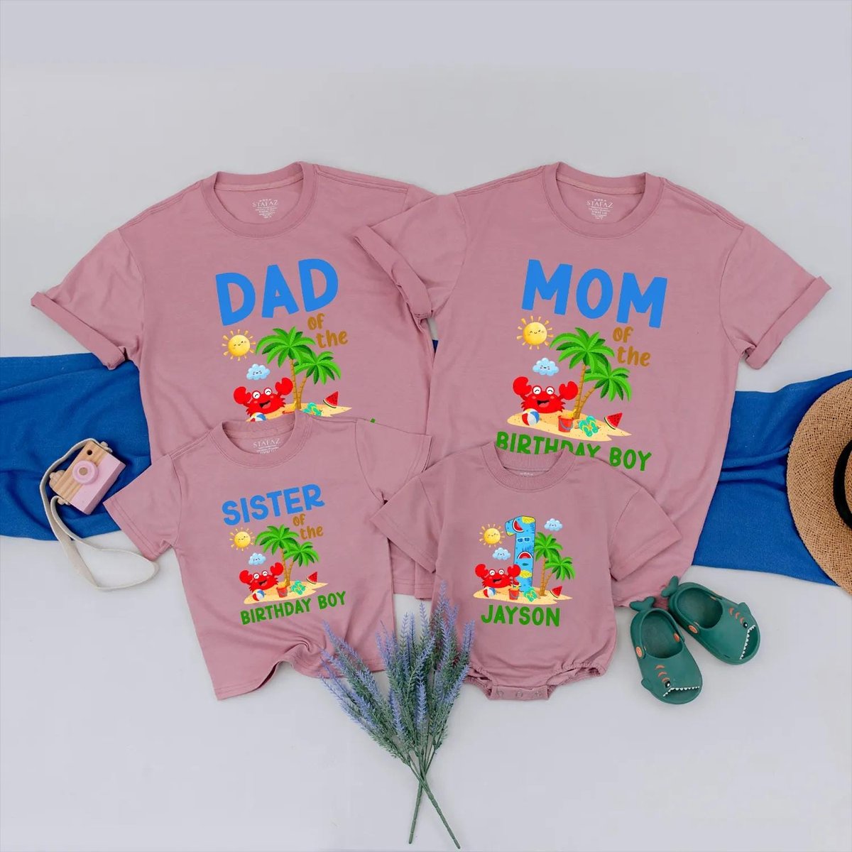 Beach Birthday Matching Family Shirts Crab and Beach Ball Clothes Summer Beach Party Outfit Personal 431