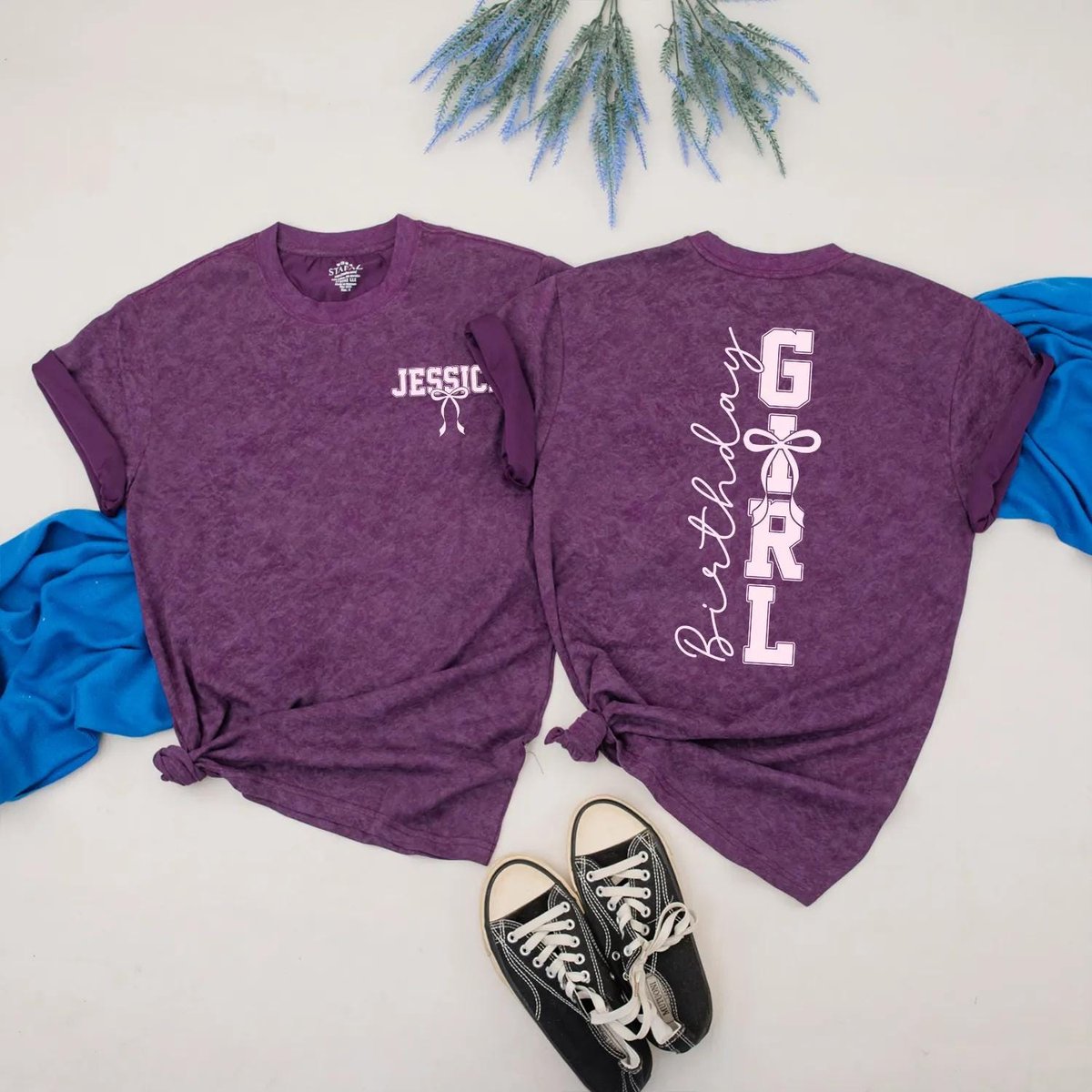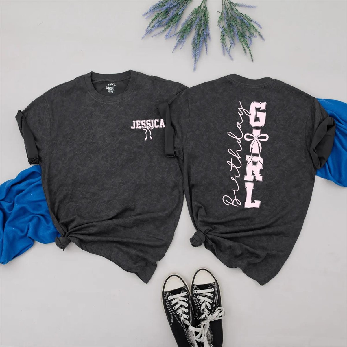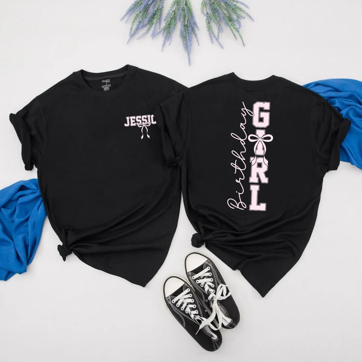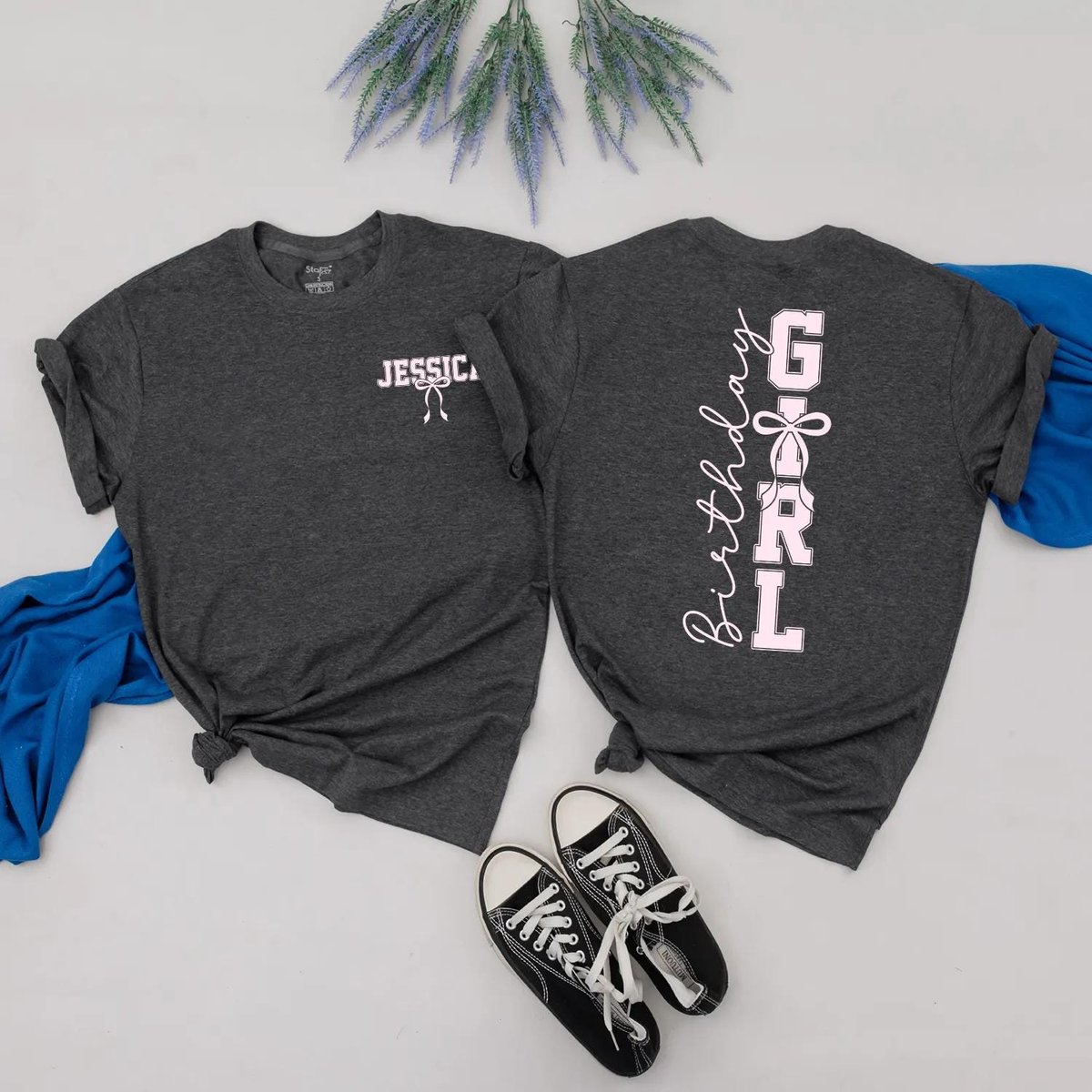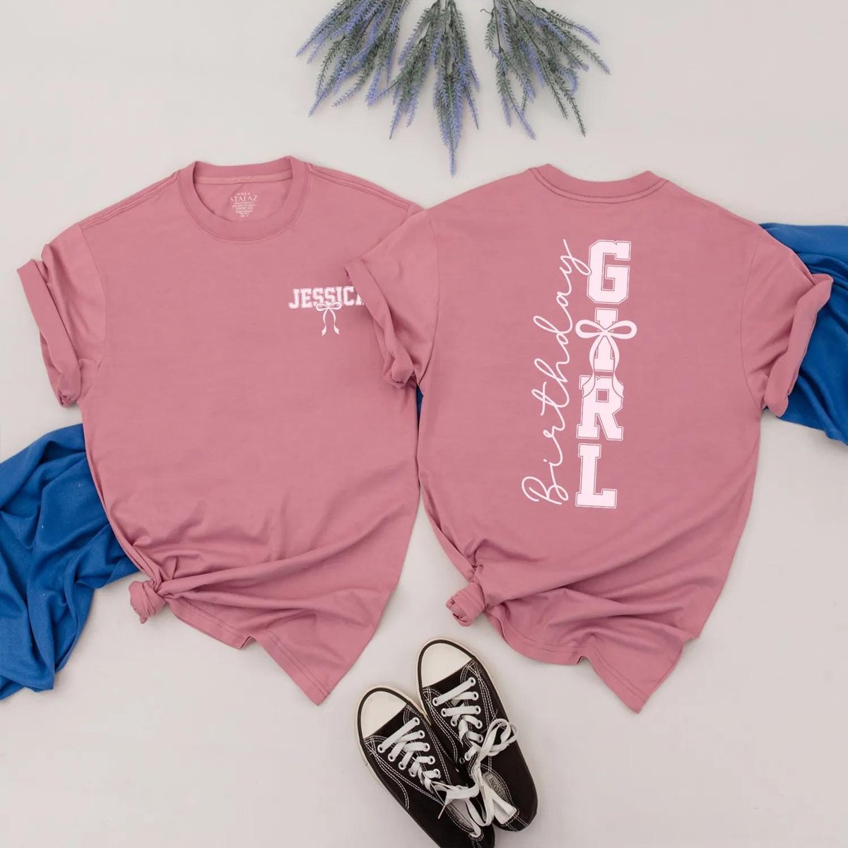 Birthday Girl Shirt Pink Bow Tee Custom Name T Shirt Personalized Cute Birthday Outfit Pink Clothes 433